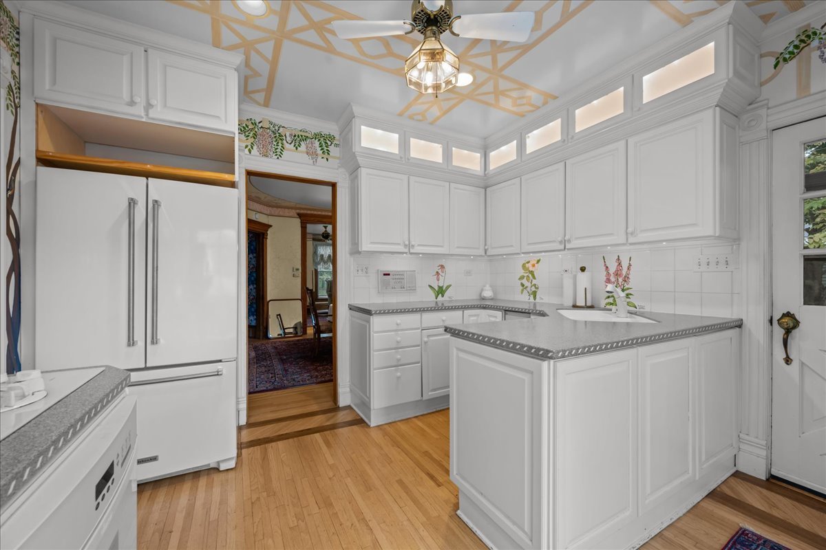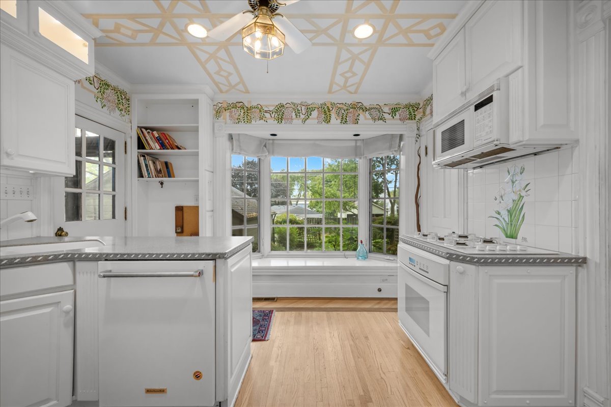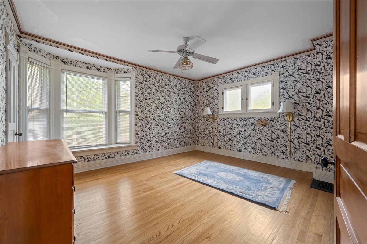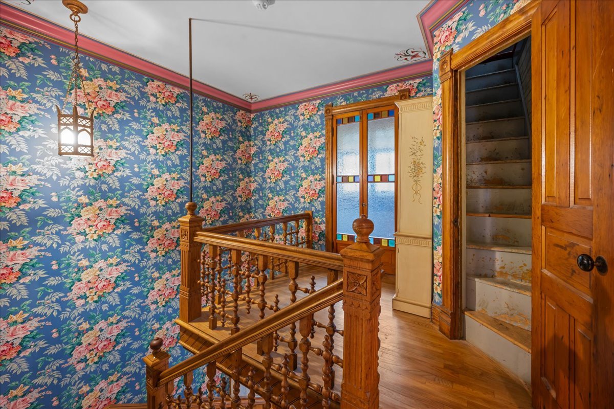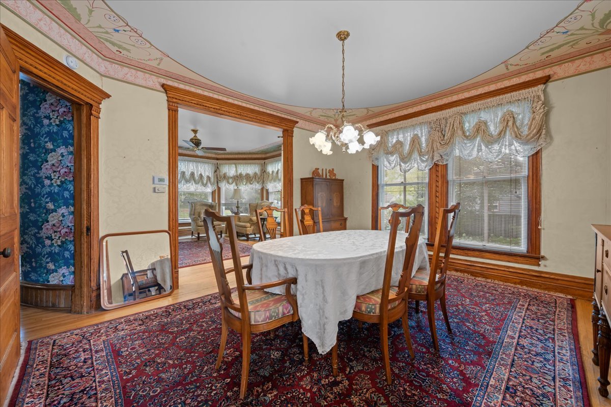 One of West Chicago’s most graceful and historic Queen Anne homes set on a DOUBLE LOT, welcome to 348 Arbor Avenue! The plaque near the front door notes this as “The Henry Bradley House” and a designated local landmark. Enter from the covered front porch into a gracefulness that is hard to find. ALL of the main floor woodwork and on the winding staircase has been hand scraped and refinished back to its original glory. Hardwood floors throughout most rooms, 10′ ceilings on the main level, extra-wide base trim, ceiling detail and rich crown moldings grace most rooms. The living room offers a fireplace, bay window and generous seating areas. The dining room has plenty of room to spread out. The versatile 1st floor den/library (or 4th BR) has a walk-in closet and built-in bookcases. The kitchen was updated not too many years ago and features white cabinetry, beautiful bay window with window seat, Corian counters, special lighting, Dacor and Kitchen Aid Appliances. There is access to the back porch, and out to the yard and the 2-car garage. There is also access in the kitchen to a back staircase and a staircase leading down to the basement. An updated 1/2 bath completes the main level. The 2nd floor offers 3 spacious bedrooms, a full updated bath, a sleeping porch and a nursery/craft room. There is also a finished walk-up attic with endless possibilities. The basement offers great storage, the laundry area, an outside entry and an UPDATED AMP ELECTRIC SERVICE PANEL, and a NEWER Hi-Efficiency heating/cooling system. The double-wide lot (102′ wide & 132′ deep) has many gardens, plenty of play space and privacy. The 2-car garage is accessible off the alley in the rear. Easy walk to downtown West Chicago and even to the commuter train station. Plenty of shopping nearby as well and close to the schools. This home has been lovingly cared for AND it shows. Originally built by the West Chicago Door and Sash Company, it has been owned (and improved-note NEW ROOF on home & garage in ’24) by this family for over 64 years! This is your chance to own a piece of history!