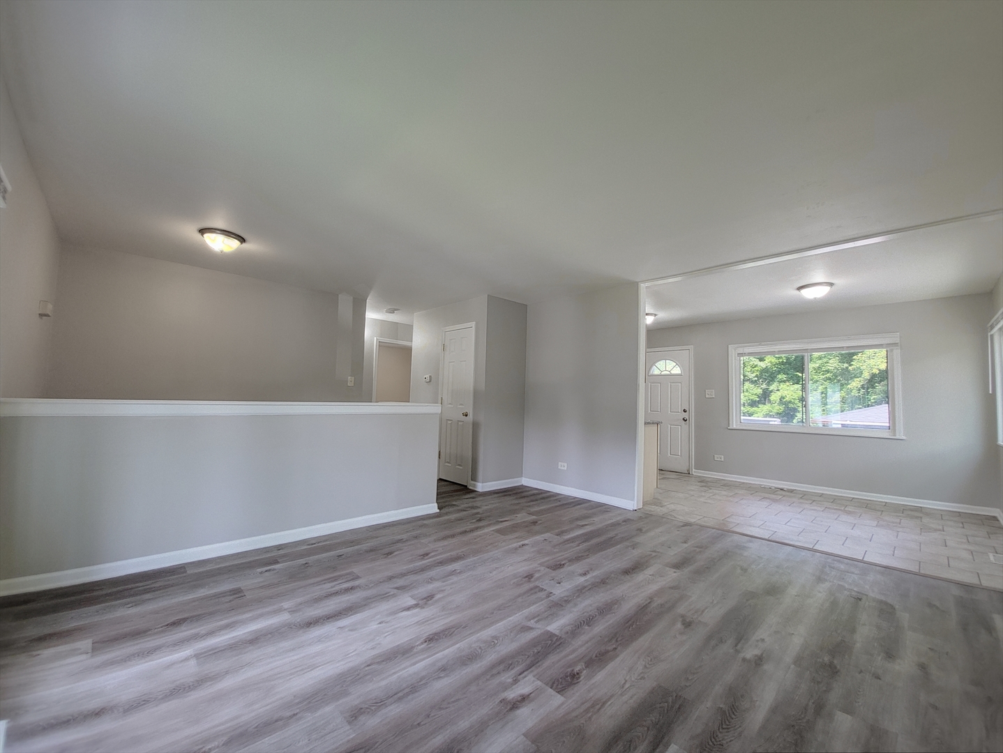 Tucked against the wooded edge of a forest preserve, this raised ranch delivers a peaceful setting with space to spread out. The home offers four true bedrooms-two up, two down-and two full baths, with central air throughout. Inside, a wide picture window frames treetop views in the main living room, where newer flooring and soft, neutral paint create a clean, versatile backdrop. The eat-in kitchen overlooks the backyard and opens to a full-length deck, ideal for relaxing or grilling while surrounded by greenery. Downstairs, two additional bedrooms, a second full bath, and a bonus room offer flexible living options. A deep yard backs directly to the preserve-no rear neighbors-while a side driveway leads to a 2-car garage. A rare chance to live with nature just outside your door, while staying connected to everything nearby.