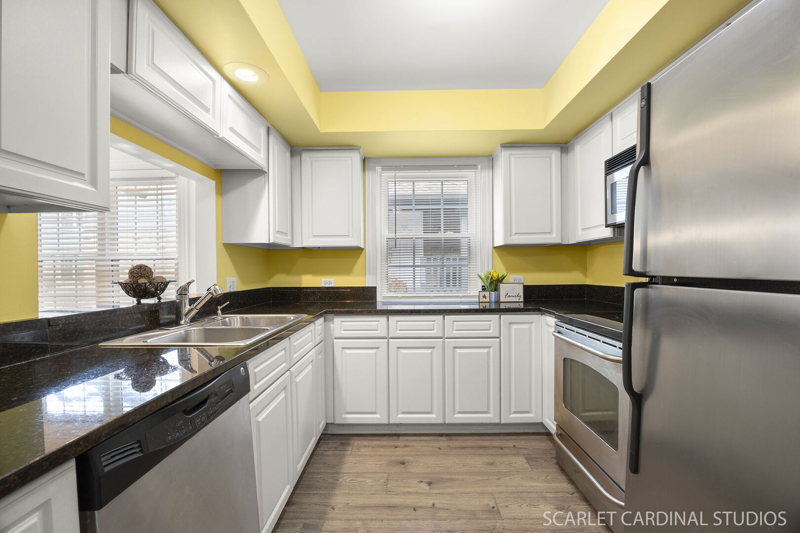 Well-maintained condo in a prime location, offering convenient single-level living or an excellent investment opportunity! Enter through the covered front porch with a small patio into a bright living room featuring high ceilings, Pergo flooring throughout, and a cozy gas fireplace with a modern white mantle. Elegant elliptical transom windows above the front windows fill the space with natural light. The adjacent dining area sits perfectly between the kitchen and living room, creating an ideal layout for everyday living and entertaining. The kitchen includes stainless steel appliances, white cabinetry, granite countertops, a pantry closet, and a pass-through window that opens to the living/dining area. The generously sized bedroom offers a spacious dual closet, while the full bathroom features a fully tiled bathtub/shower combination and convenient in-unit laundry with a stacked washer and dryer. Enjoy a variety of community amenities, including a clubhouse, in-ground pool with sun deck, and a nearby park. The location provides easy access to shopping, dining, Metra, and bus lines for effortless commuting. Attends Maplebrook Elementary, Lincoln Junior High, and Naperville Central High School. Don’t miss the opportunity for low-maintenance living in this charming condo!