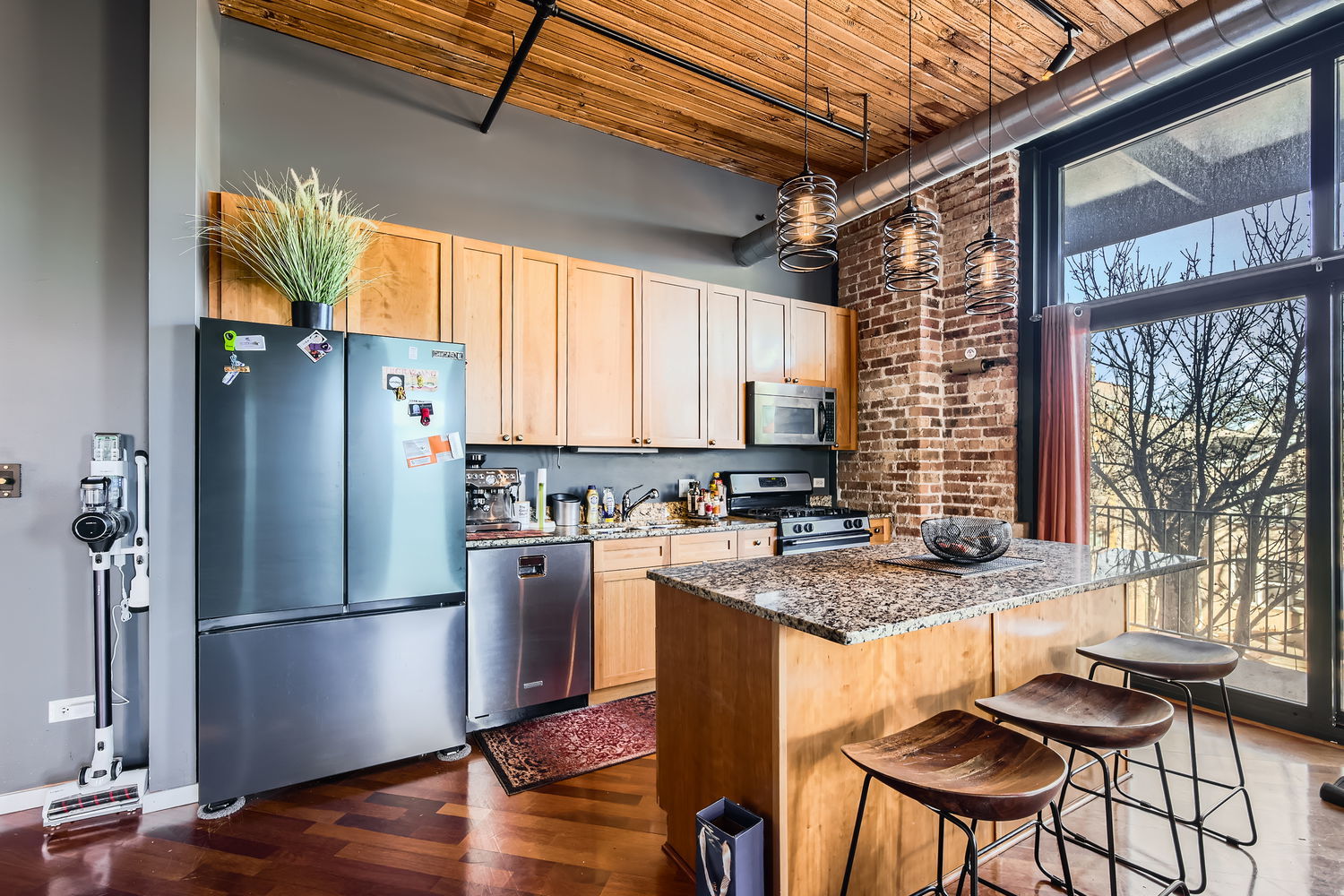 A beautifully designed 2-bedroom, 2-bath condo in the heart of the vibrant Bridgeport neighborhood. This unit boasts an open-concept floor plan with soaring ceilings, exposed brick accents, and large windows that fill the space with natural light. The contemporary kitchen features stainless steel appliances, granite countertops, and a breakfast bar, ideal for cooking and entertaining. Both bedrooms are generously sized, and the primary suite includes a private bath. Additional highlights include in-unit laundry, ample closet space, and a private balcony perfect for outdoor relaxation. Situated in a sought-after building with elevator access and conveniently located near parks, dining, shopping, and public transportation.