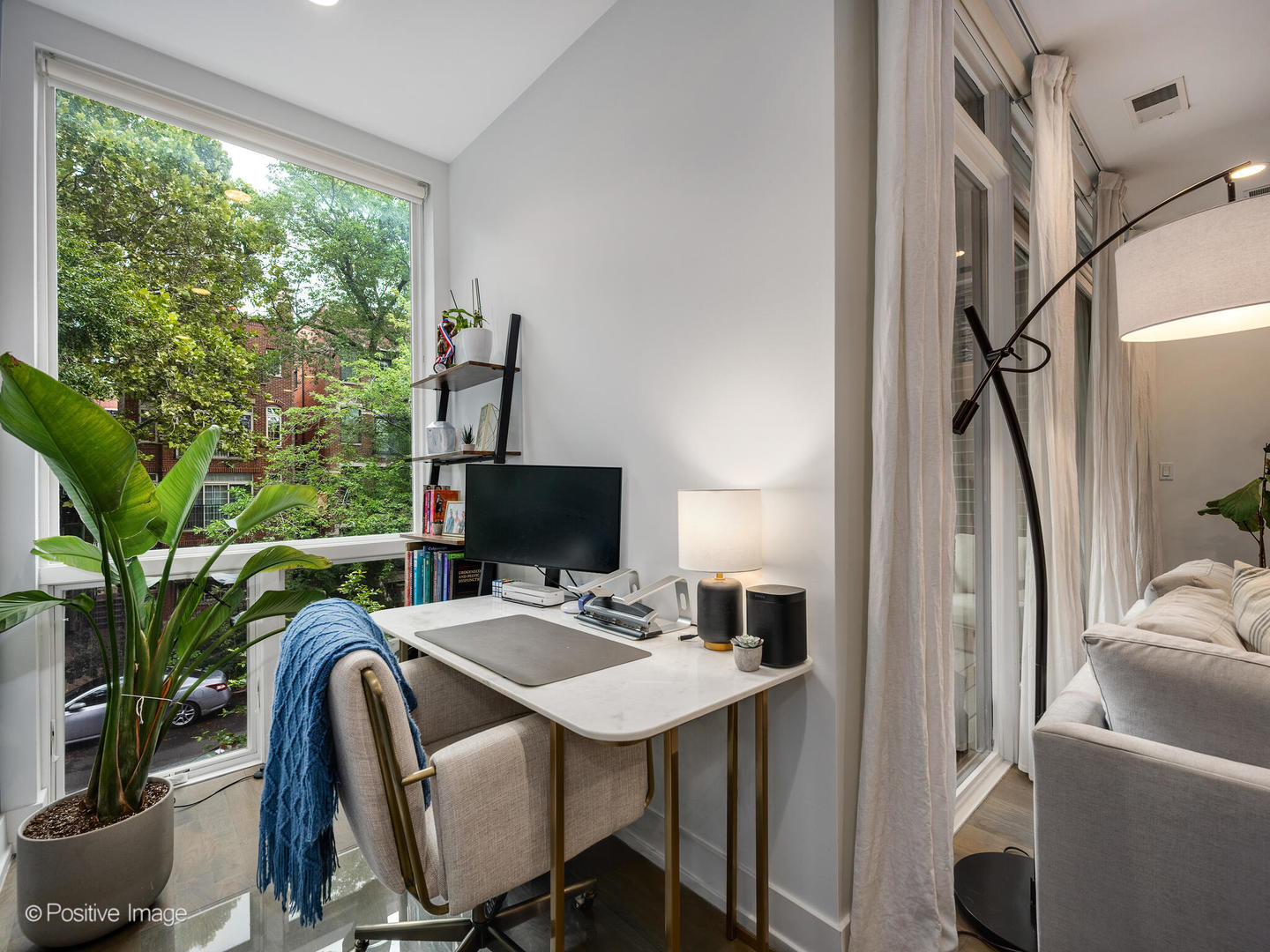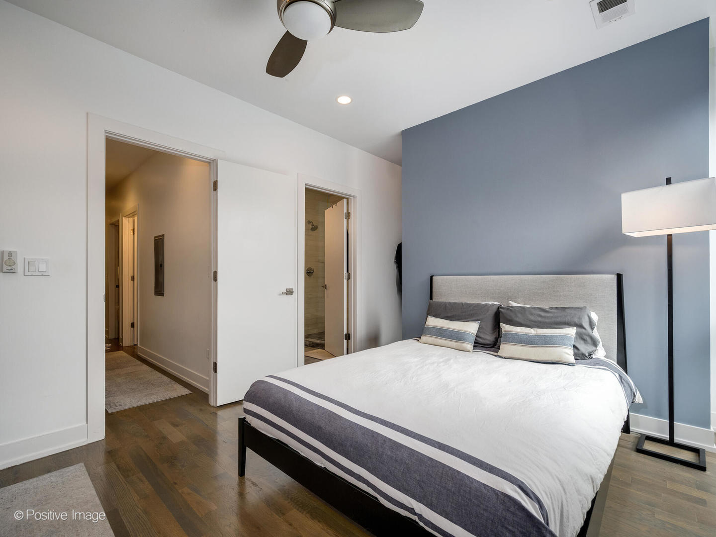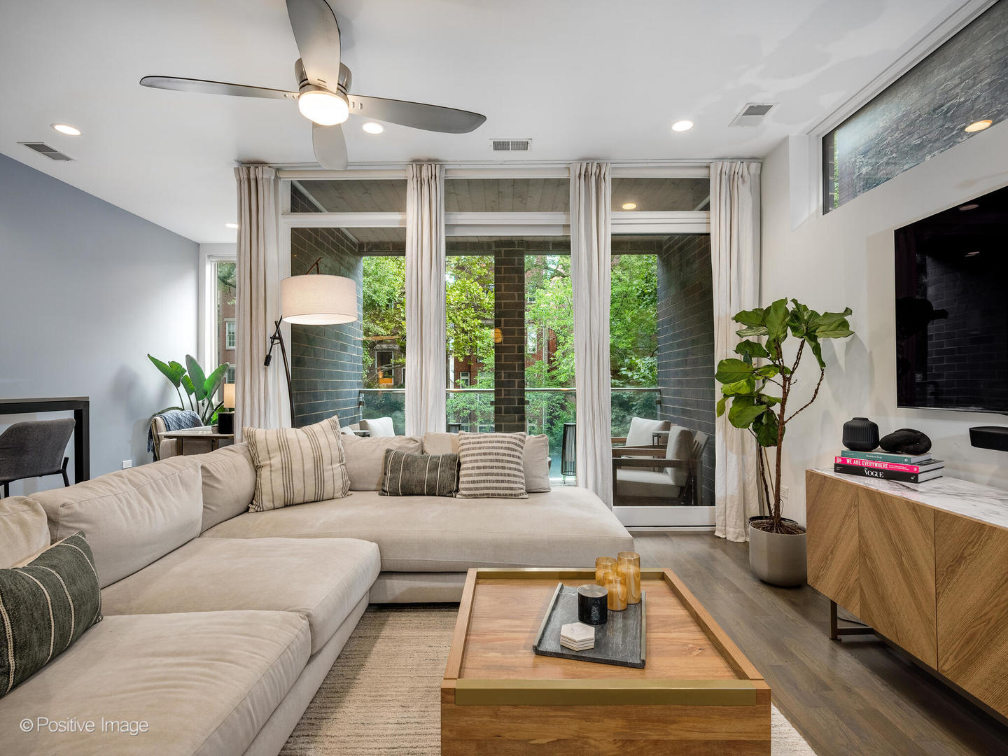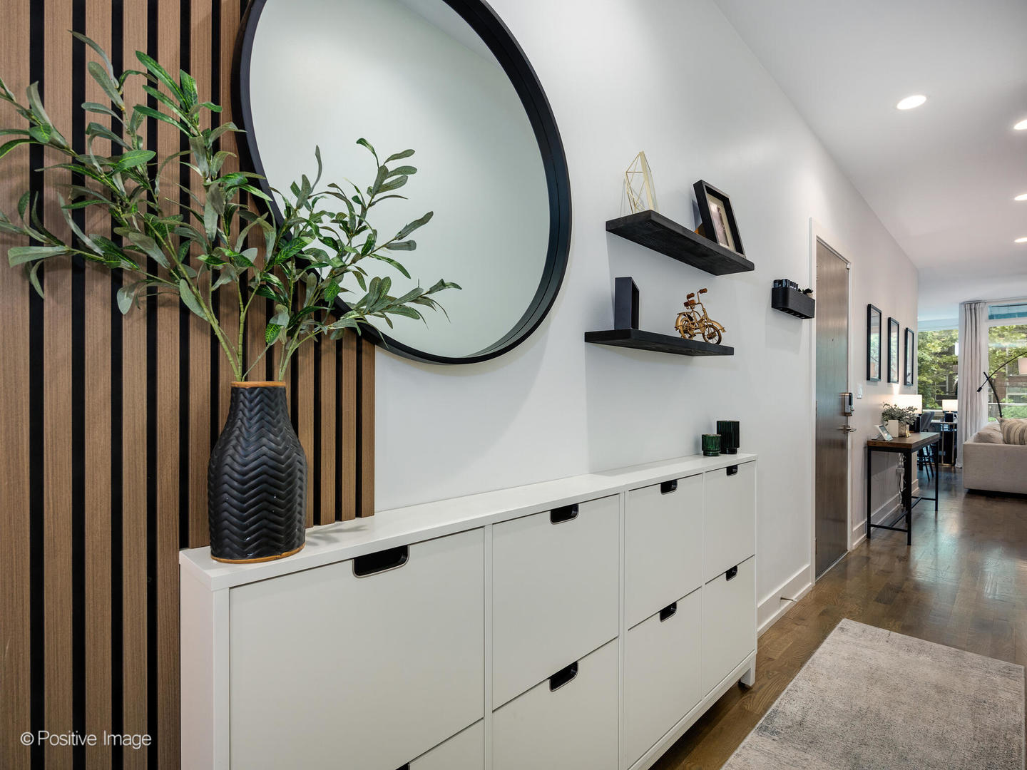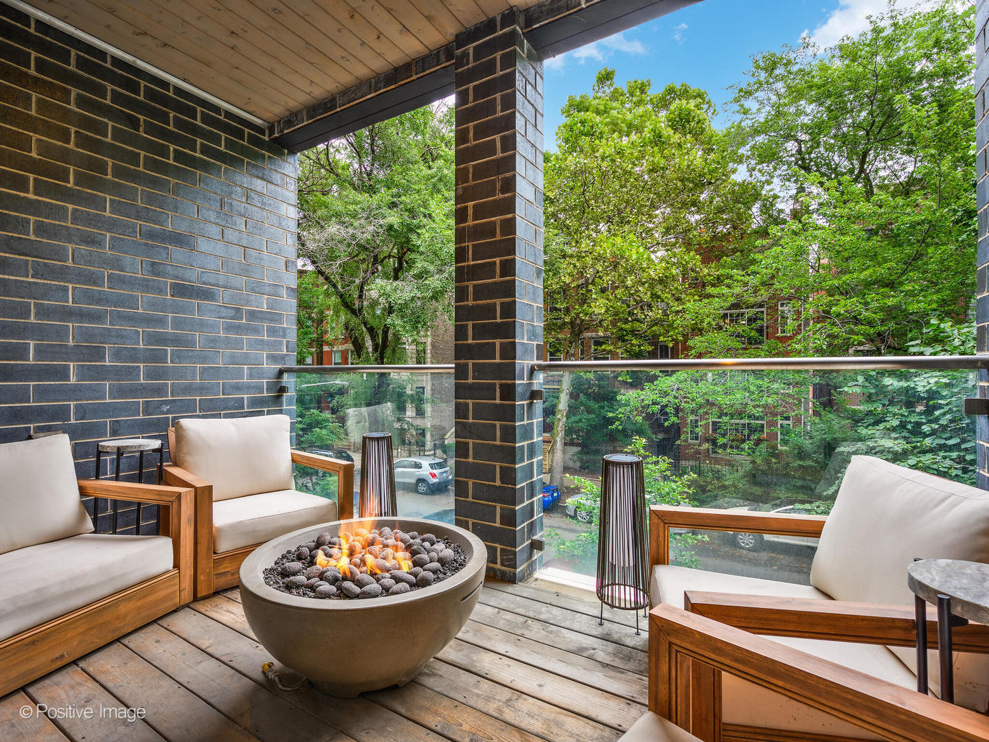 This 2017 Contemporary Concepts build feels like new and outshines anything else at this price point. Nestled just one block west of Halsted, it offers the allure of a quiet, leafy-green residential street with coveted proximity to East Lakeview and Wrigleyville. The impressive curb appeal with gated front entry and impeccable landscaping welcomes you to an intimate, 3-unit building where the interior of this second floor simplex does not disappoint. Inside, the open design features a bright living and dining area, a sunny office nook, and a striking kitchen with paneled Sub-Zero, Wolf, and Asko appliances, Archisesto cabinetry, and a stunning waterfall quartz island. Floor-to-ceiling windows lead to a private front terrace with built-in firepit, ideal for entertaining or relaxing while taking in the beautiful east-facing view of Reta Avenue. The primary suite features a professionally organized walk-in closet and spa-like bath with an oversized stone shower, rain head, and floating double vanity. The versatile guest bedroom features a Murphy bed, offering multi-use flexibility as a bedroom, fitness studio, work-from-home space and more. Upgrades include custom Hunter Douglas smart-home automated shades, smart lighting, and a new Navien tankless water heater. A large hallway closet offers both in-unit laundry and storage solutions. One included garage parking space completes this remarkable home. Enjoy walkable access to the lakefront, Belmont Harbor, Addison Red Line, Whole Foods, Wrigley Field, and some of the city’s most popular dining and nightlife in Chicago’s hottest neighborhood.
