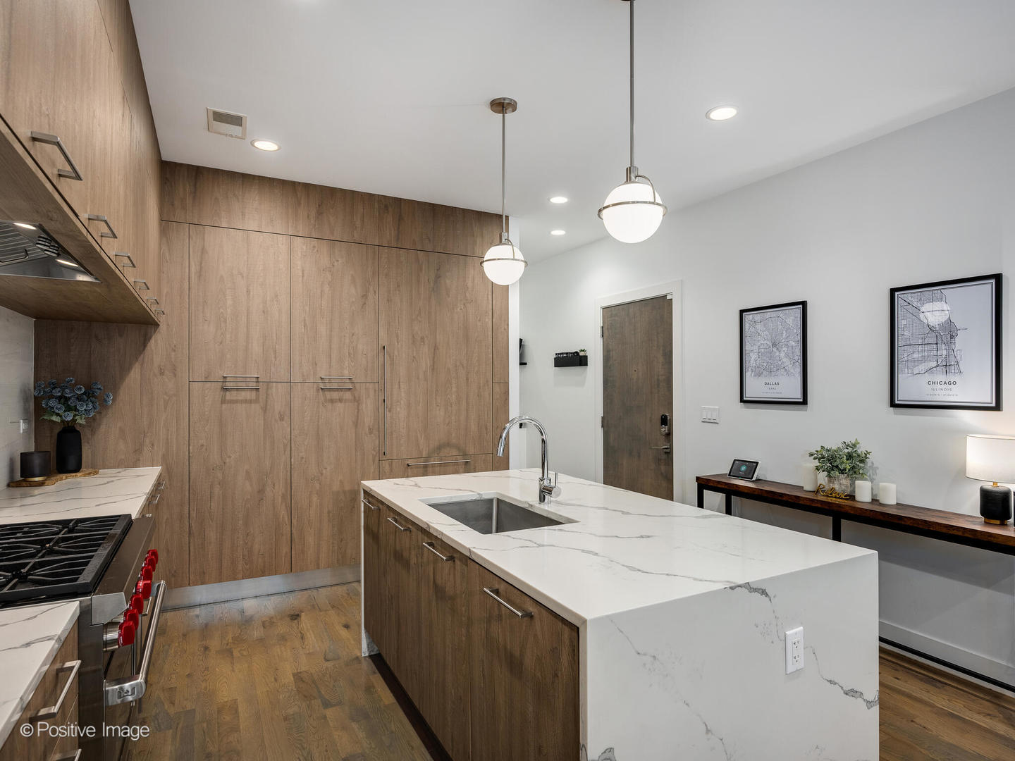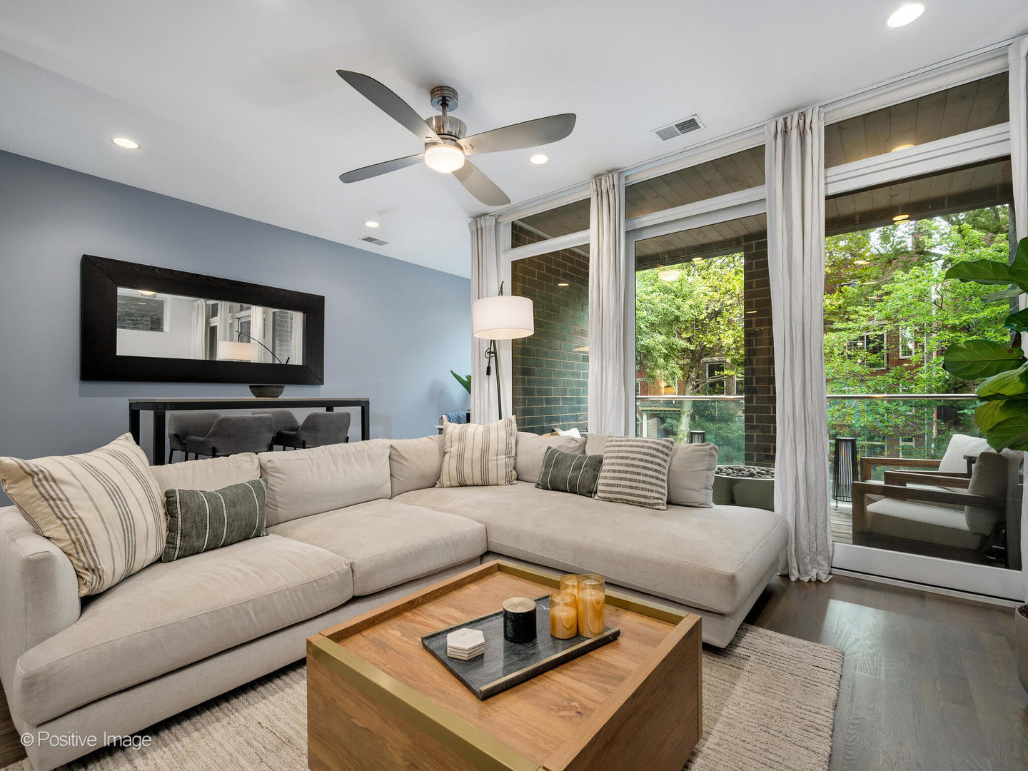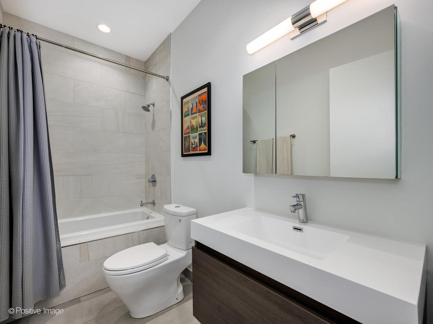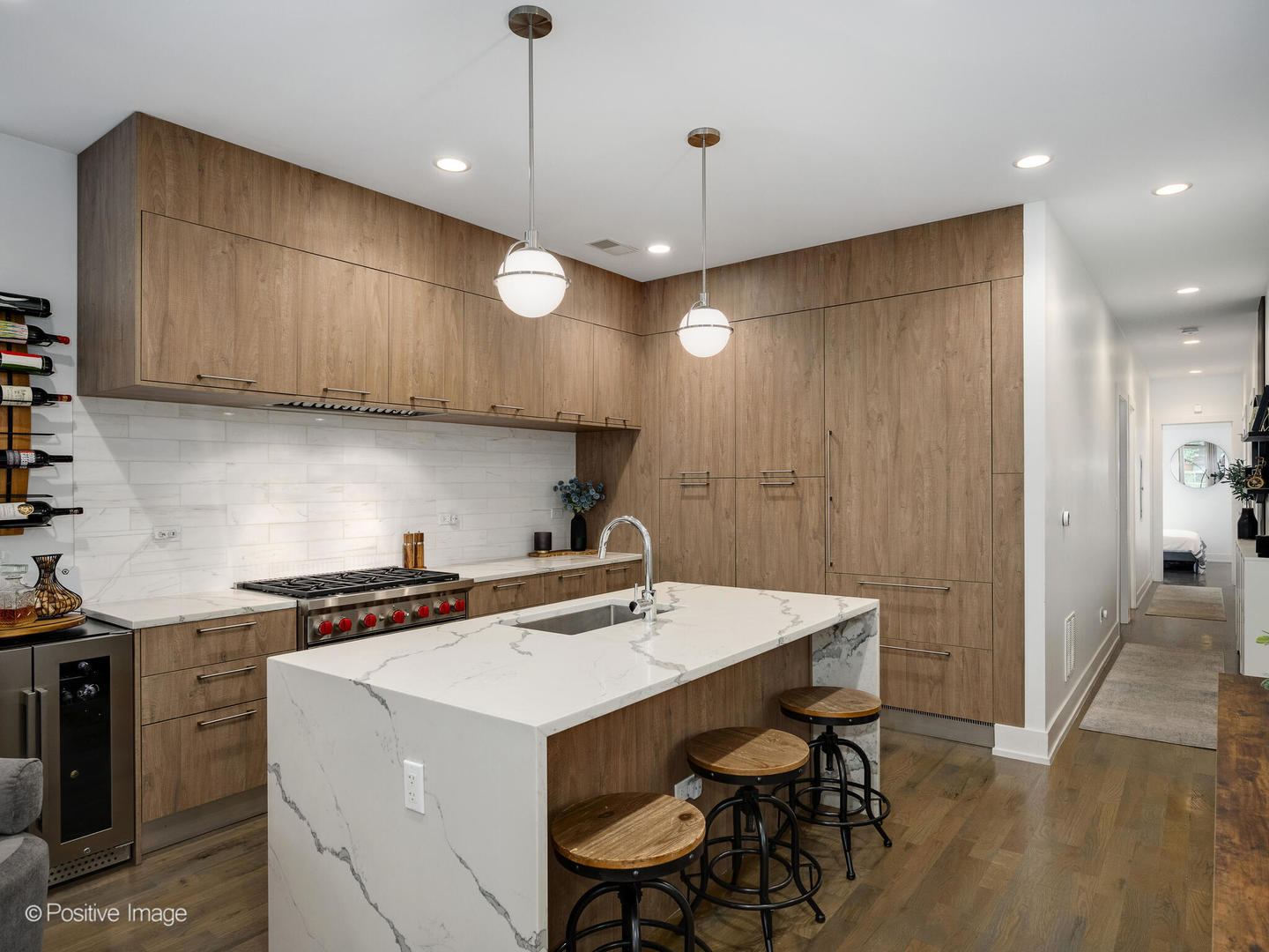 This 2017 Contemporary Concepts build feels like new and outshines anything else at this price point. Nestled just one block west of Halsted, it offers the allure of a quiet, leafy-green residential street with coveted proximity to East Lakeview and Wrigleyville. The impressive curb appeal with gated front entry and impeccable landscaping welcomes you to an intimate, 3-unit building where the interior of this second floor simplex does not disappoint. Inside, the open design features a bright living and dining area, a sunny office nook, and a striking kitchen with paneled Sub-Zero, Wolf, and Asko appliances, Archisesto cabinetry, and a stunning waterfall quartz island. Floor-to-ceiling windows lead to a private front terrace with built-in firepit, ideal for entertaining or relaxing while taking in the beautiful east-facing view of Reta Avenue. The primary suite features a professionally organized walk-in closet and spa-like bath with an oversized stone shower, rain head, and floating double vanity. The versatile guest bedroom features a Murphy bed, offering multi-use flexibility as a bedroom, fitness studio, work-from-home space and more. Upgrades include custom Hunter Douglas smart-home automated shades, smart lighting, and a new Navien tankless water heater. A large hallway closet offers both in-unit laundry and storage solutions. One included garage parking space completes this remarkable home. Enjoy walkable access to the lakefront, Belmont Harbor, Addison Red Line, Whole Foods, Wrigley Field, and some of the city’s most popular dining and nightlife in Chicago’s hottest neighborhood.