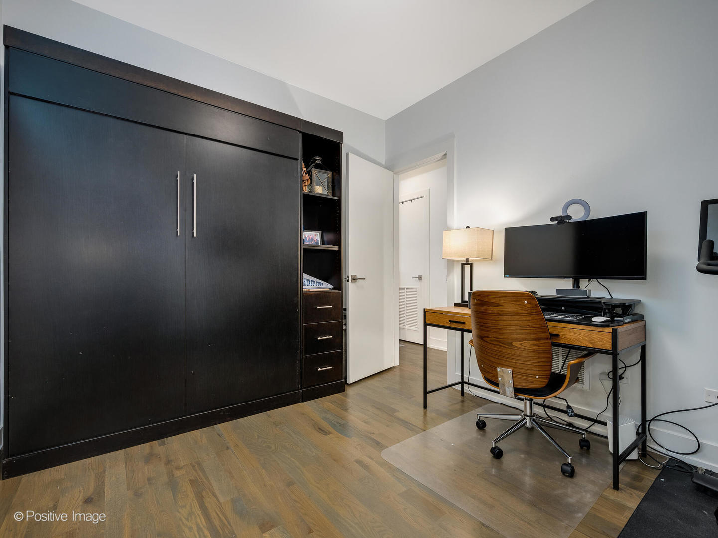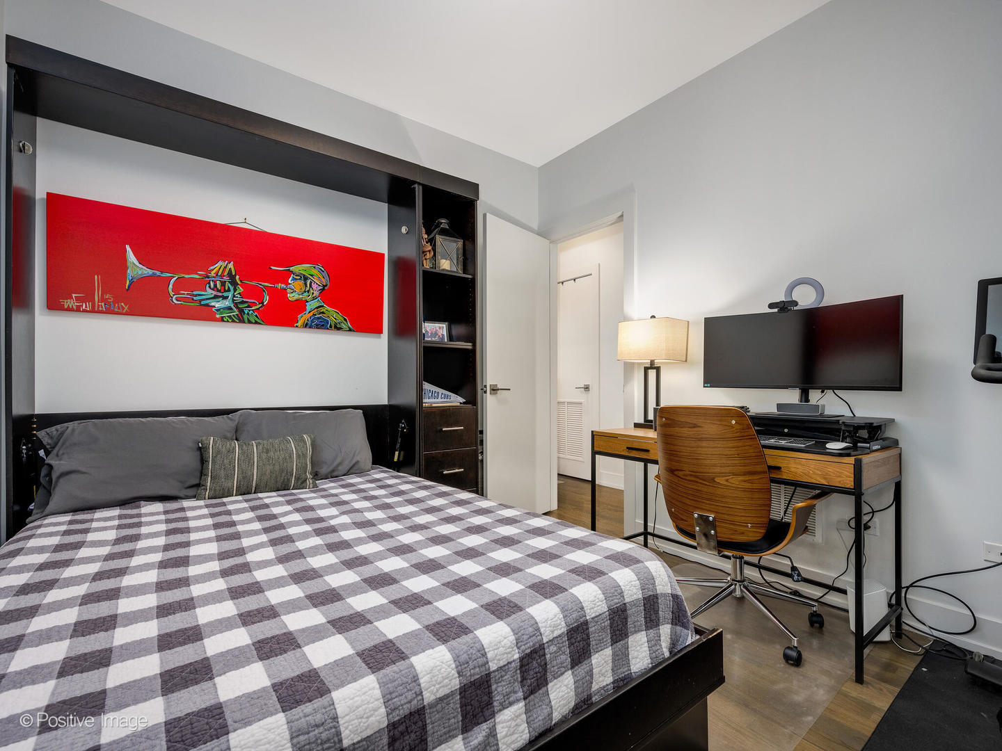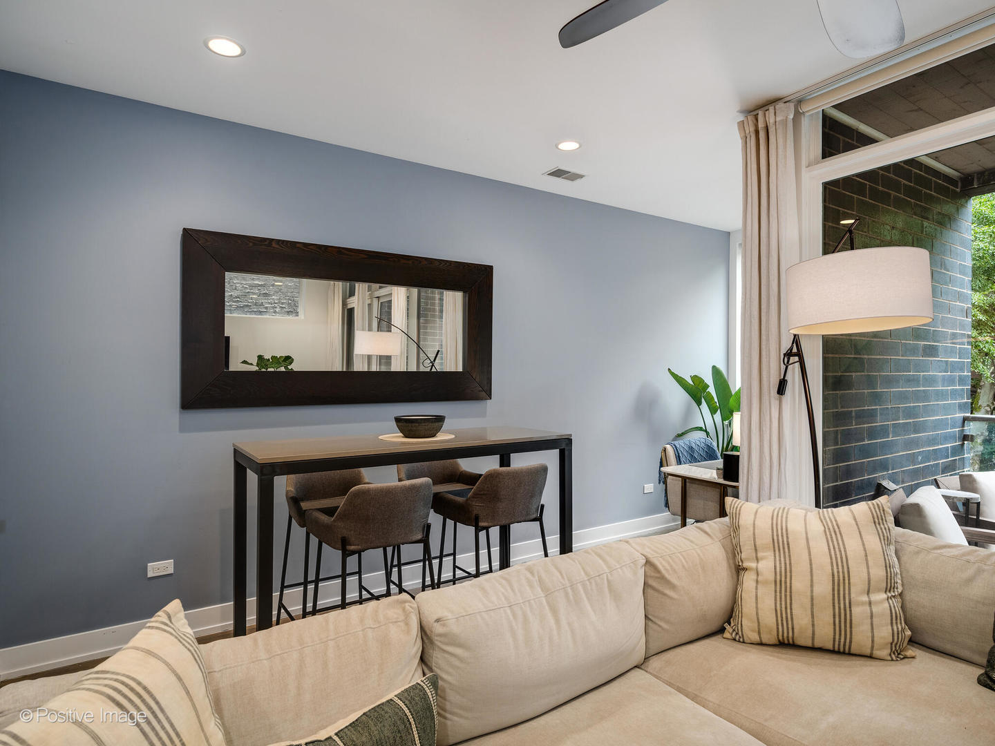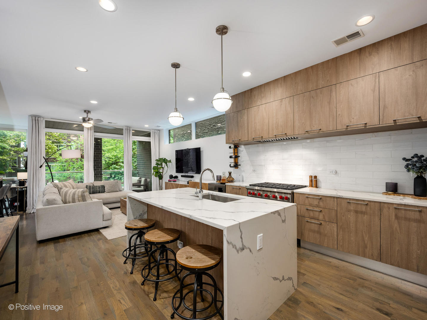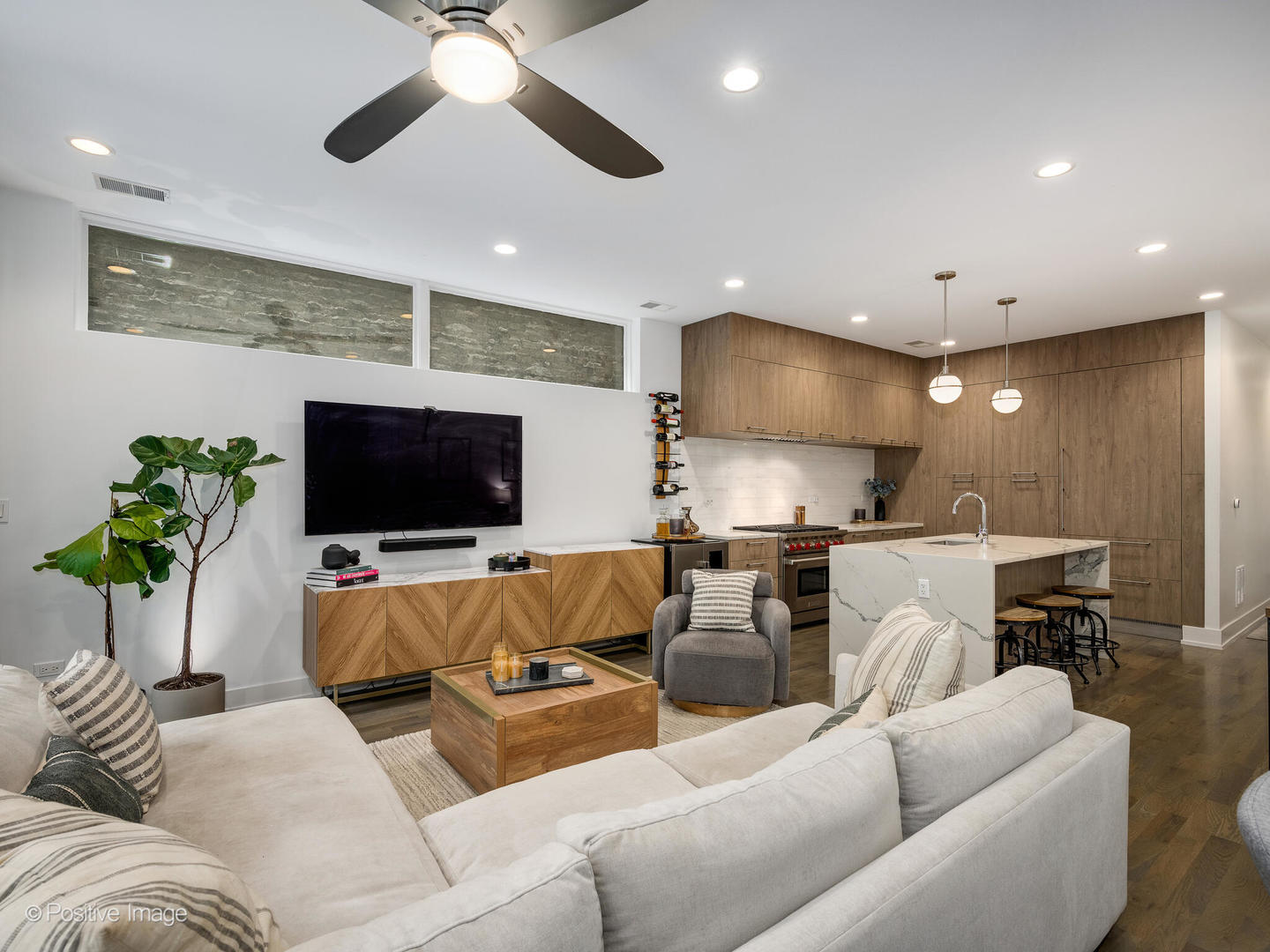 This 2017 Contemporary Concepts build feels like new and outshines anything else at this price point. Nestled just one block west of Halsted, it offers the allure of a quiet, leafy-green residential street with coveted proximity to East Lakeview and Wrigleyville. The impressive curb appeal with gated front entry and impeccable landscaping welcomes you to an intimate, 3-unit building where the interior of this second floor simplex does not disappoint. Inside, the open design features a bright living and dining area, a sunny office nook, and a striking kitchen with paneled Sub-Zero, Wolf, and Asko appliances, Archisesto cabinetry, and a stunning waterfall quartz island. Floor-to-ceiling windows lead to a private front terrace with built-in firepit, ideal for entertaining or relaxing while taking in the beautiful east-facing view of Reta Avenue. The primary suite features a professionally organized walk-in closet and spa-like bath with an oversized stone shower, rain head, and floating double vanity. The versatile guest bedroom features a Murphy bed, offering multi-use flexibility as a bedroom, fitness studio, work-from-home space and more. Upgrades include custom Hunter Douglas smart-home automated shades, smart lighting, and a new Navien tankless water heater. A large hallway closet offers both in-unit laundry and storage solutions. One included garage parking space completes this remarkable home. Enjoy walkable access to the lakefront, Belmont Harbor, Addison Red Line, Whole Foods, Wrigley Field, and some of the city’s most popular dining and nightlife in Chicago’s hottest neighborhood.