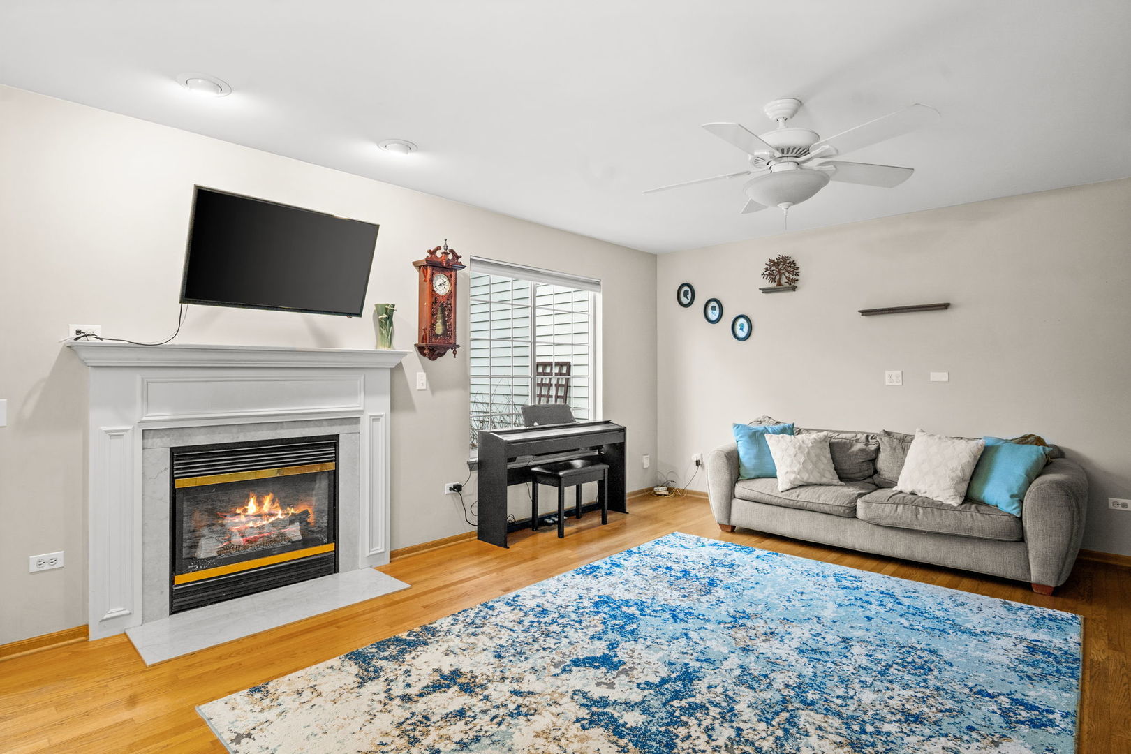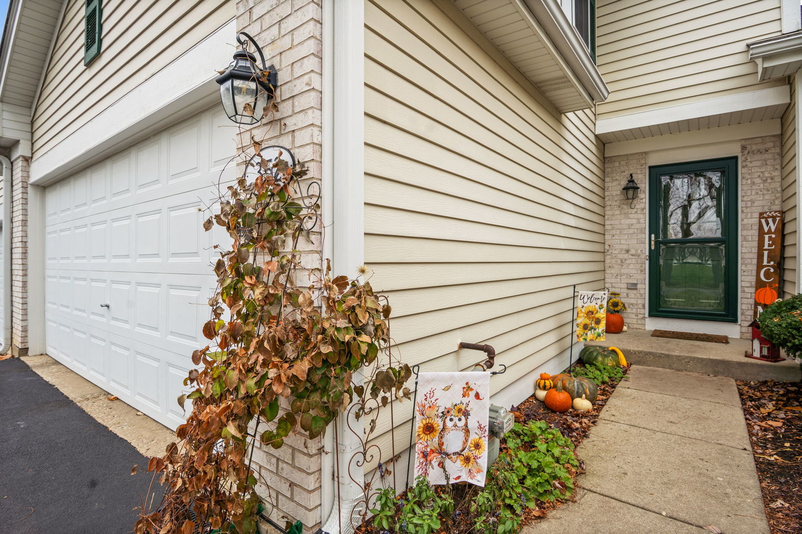 Set in the desirable Prestbury neighborhood of Sugar Grove, this 3 bedroom, 2.5 bath vinyl and brick townhome blends comfort, convenience and community living. The landscaped lot is framed by mature trees and offers a front porch, backyard patio and a 2 car attached garage. Inside, hardwood flooring and an open floorplan create an easy flow from the living room with a gas log fireplace to the adjacent dining room with a door to the patio. The kitchen features an island with a breakfast bar, tile backsplash and pantry. Upstairs, three bedrooms including the primary suite with a private bath, plus a handy second floor laundry. The finished basement adds a versatile family room and generous storage. Prestbury residents enjoy a newly remodeled clubhouse with community events and classes, two parks, pool, and courts for basketball, tennis and pickleball, along with included lawn care, snow removal, exterior maintenance, washing and gutter cleaning for low maintenance living.