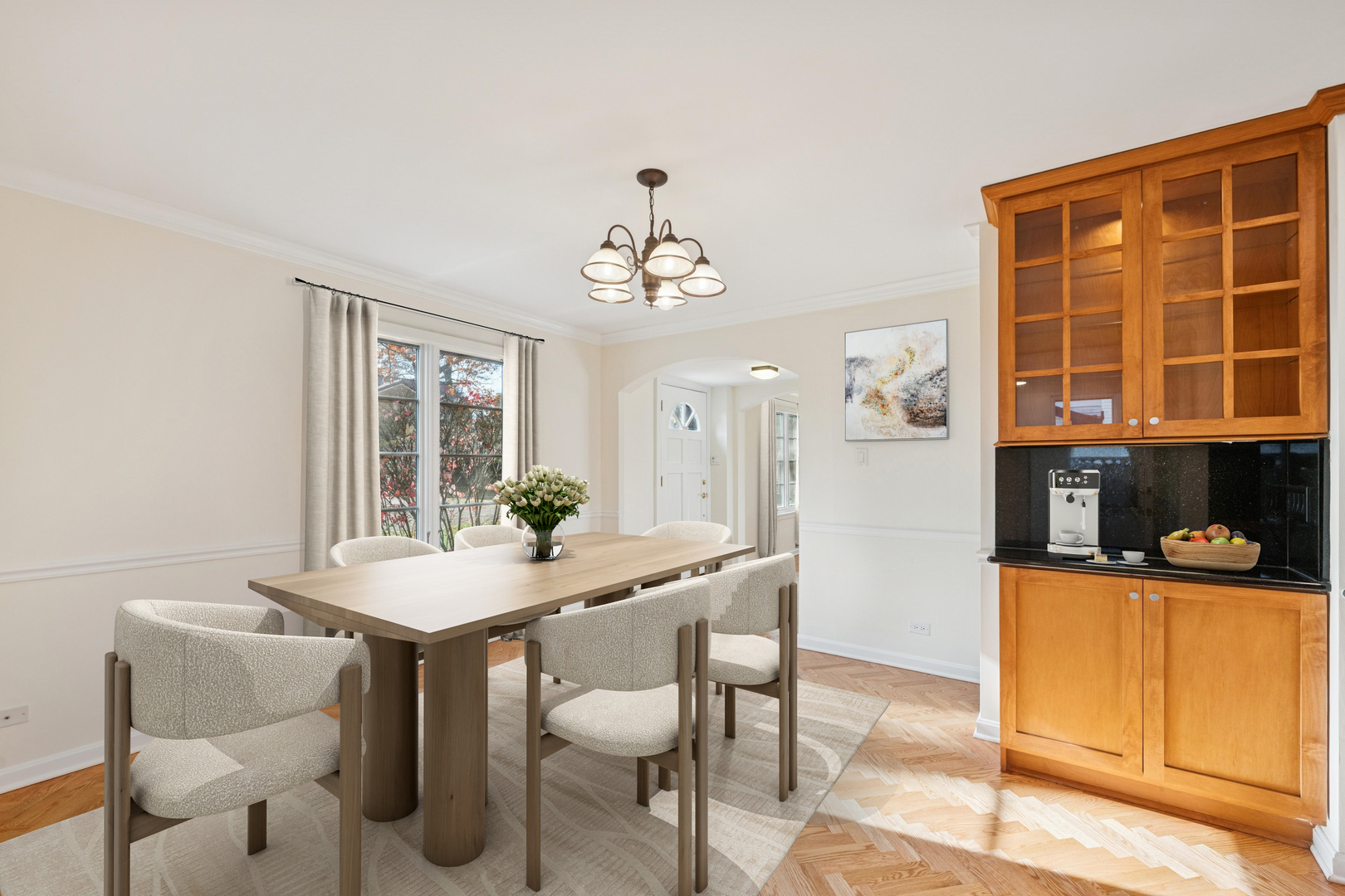 Thoughtfully expanded and updated, this 3 bedroom, 2 and one half bath home is move in ready. The main level flows nicely with an inviting living room, an updated kitchen with adjacent dining room, a peaceful sun room, an office and powder room. The upper level includes a primary bedroom and ensuite bath with a soaking jetted tub, separate shower and double sinks, a spacious second bedroom. A 3rd bedroom with a Murphy Bed for flexibility and a full hall bath complete this level. The basement has a lovely family room, a utility and laundry areas. Freshly painted with refinished floors, it’s on a pretty, family friendly side street that is convenient to the expressway, award winning schools, parks, shopping and all that Wilmette has to offer. See information sheet under additional information for recent improvements and facts. Shows great, don’t wait.