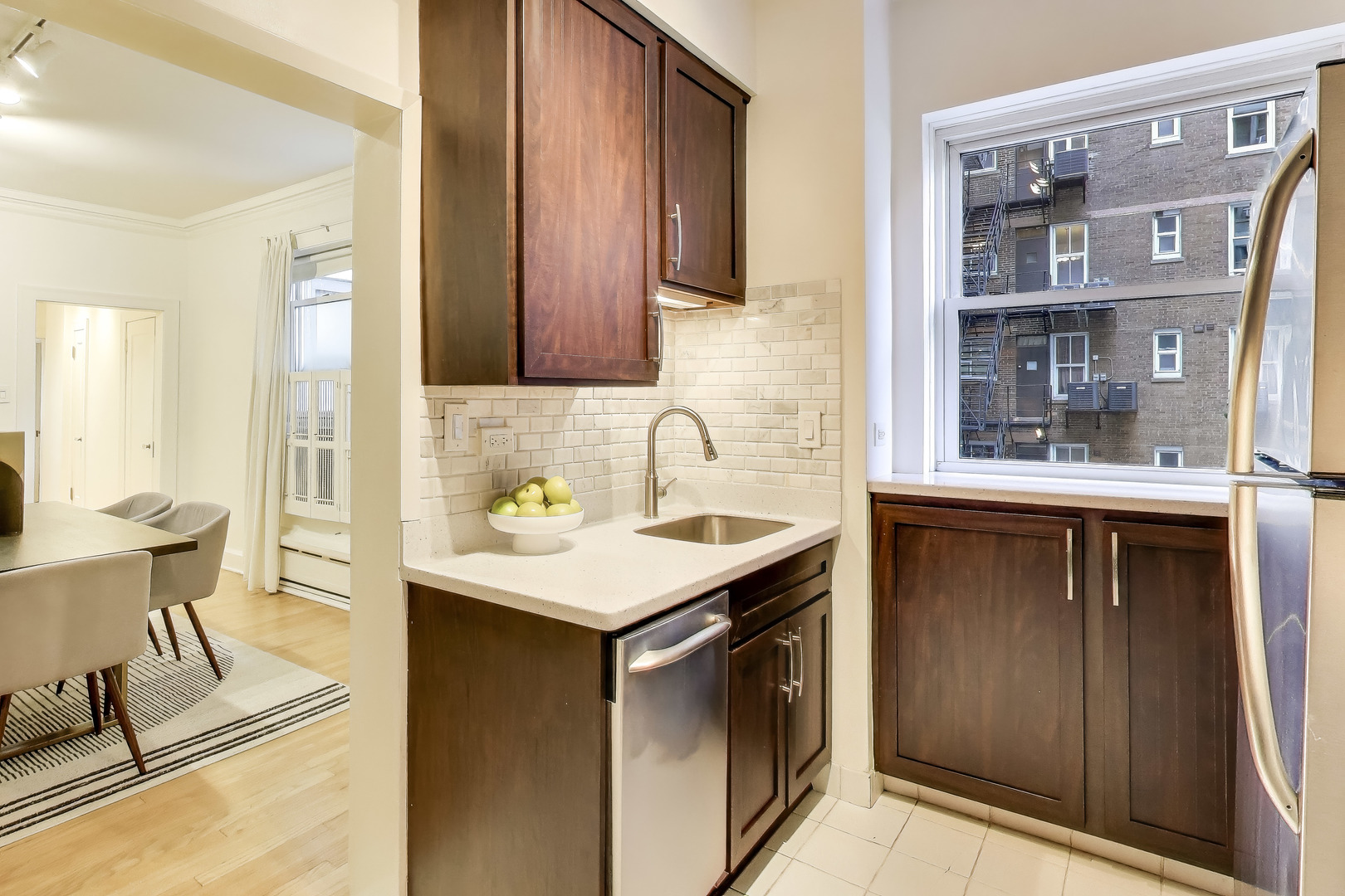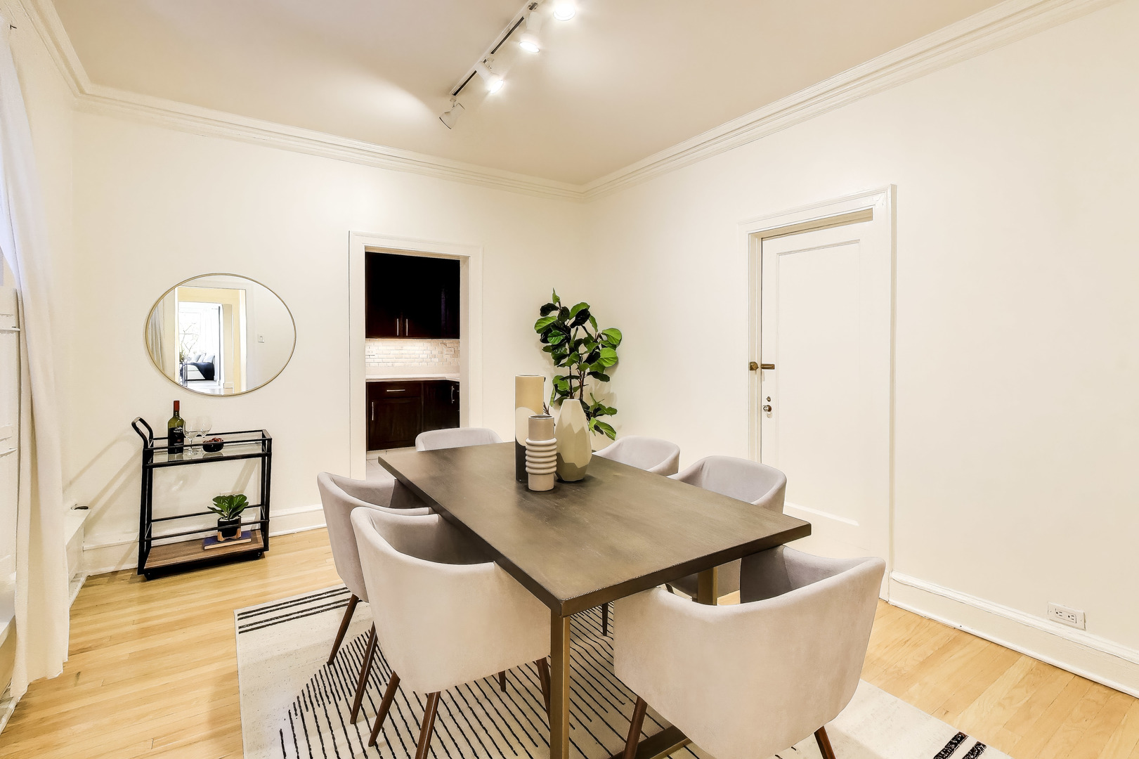 Perched on the fourth floor, this sprawling east-facing one-bedroom, one-bath home offers beautiful views of Belmont Harbor and 1100 square feet of living space!! Welcome to 3520 North Lake Shore Drive, Unit 4M. As you enter, a gracious foyer with arched doorways leads to an expansive living room filled with natural light and harbor views. The versatile layout provides ample room for comfortable seating and a dedicated work area-perfect for those who work from home. Elegant crown molding, detailed millwork, and hardwood floors bring timeless character throughout the home. The oversized bedroom easily accommodates a king-size bed, nightstands, and a dresser, and includes two closets, one of which is a large walk-in. The thoughtfully designed kitchen features dark cabinetry, stone countertops, subway tile backsplash and stainless steel appliances. Adjacent to it, the spacious dining room welcomes gatherings and can comfortably seat eight to ten guests. The vintage-inspired bathroom combines classic white subway tile with coordinating floor tile and includes a convenient linen closet. Ideally located in East Lakeview, 3520 North Lake Shore Drive offers easy access to the lakefront, neighborhood shops, and popular restaurants. Public transportation is right at your doorstep. Building amenities include a well-equipped fitness center, two outdoor terraces with gas grills and lounge seating, a laundry room, community room, bike storage, on-site management, and additional storage for each unit. Monthly assessments include heat, gas, water, and high speed internet from RCN. Your only utility bill is electric. Welcome home!