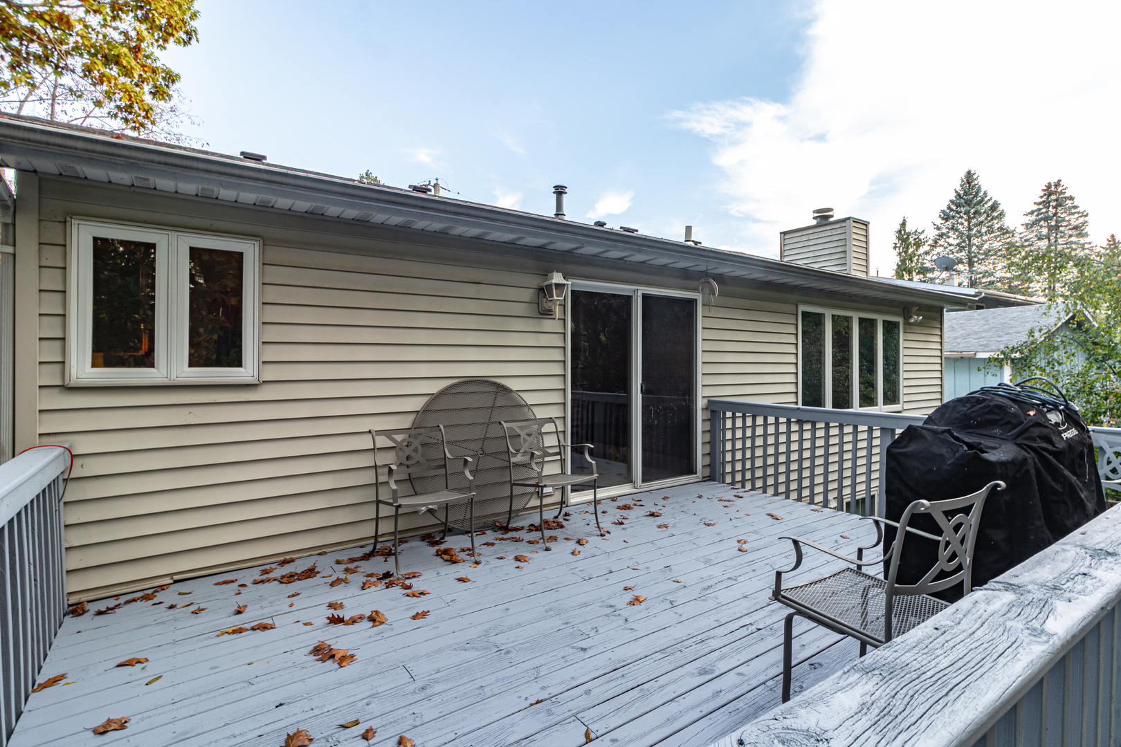 Charming two-bedroom, one-bath ranch home perfectly situated in a peaceful neighborhood with a stunning wooded backyard offering serene views and privacy. The open-concept layout creates an inviting atmosphere throughout the main living area. The spacious living room features a large picture window framing beautiful views of the surrounding woods, filling the space with natural light. The kitchen offers plenty of cabinet and counter space, stainless steel appliances, and a seamless flow into the dining room, which opens to a deck overlooking the lush backyard-perfect for morning coffee or evening relaxation. Two comfortable bedrooms and a full bath complete the main level. The full walkout basement provides great potential for finishing and adding additional living space or storage. Nestled near Duck Lake and surrounded by nature while still being close to shopping, restaurants, and major conveniences, this home offers the perfect blend of tranquility and accessibility.