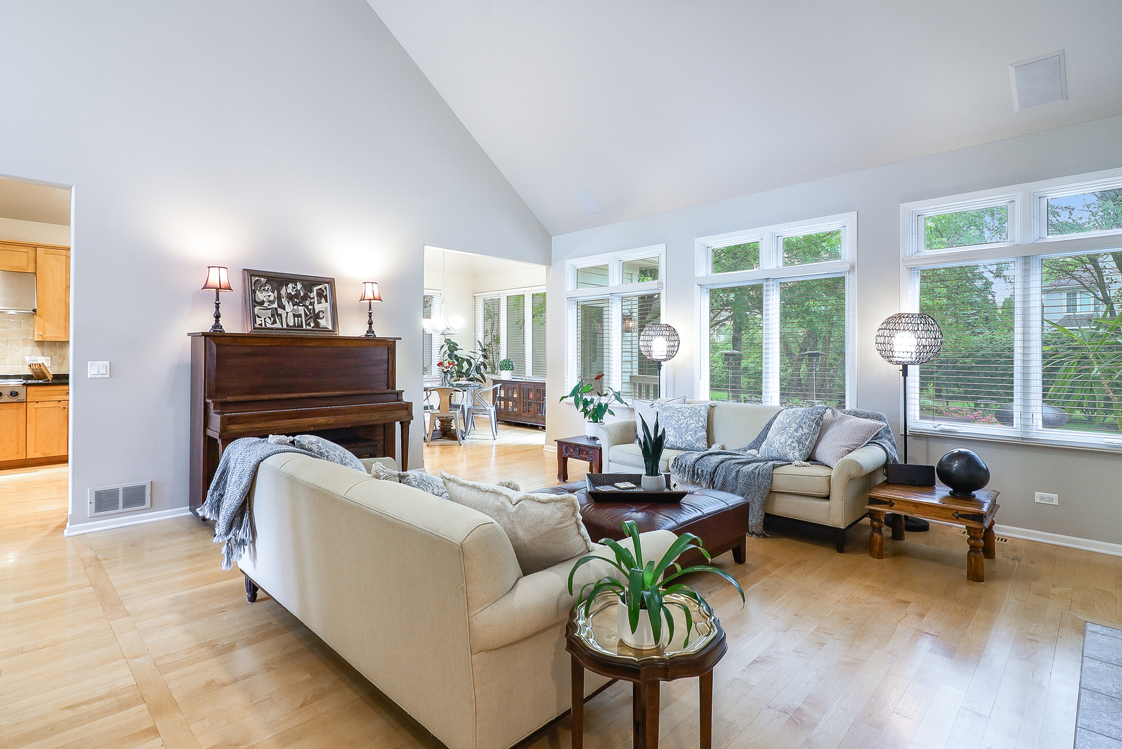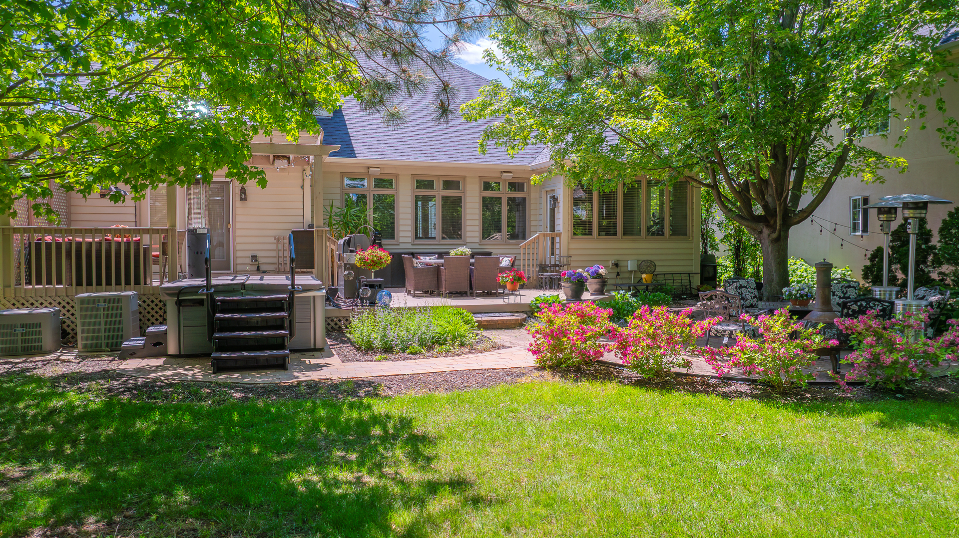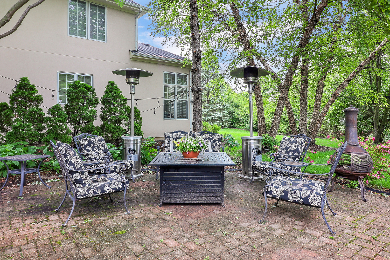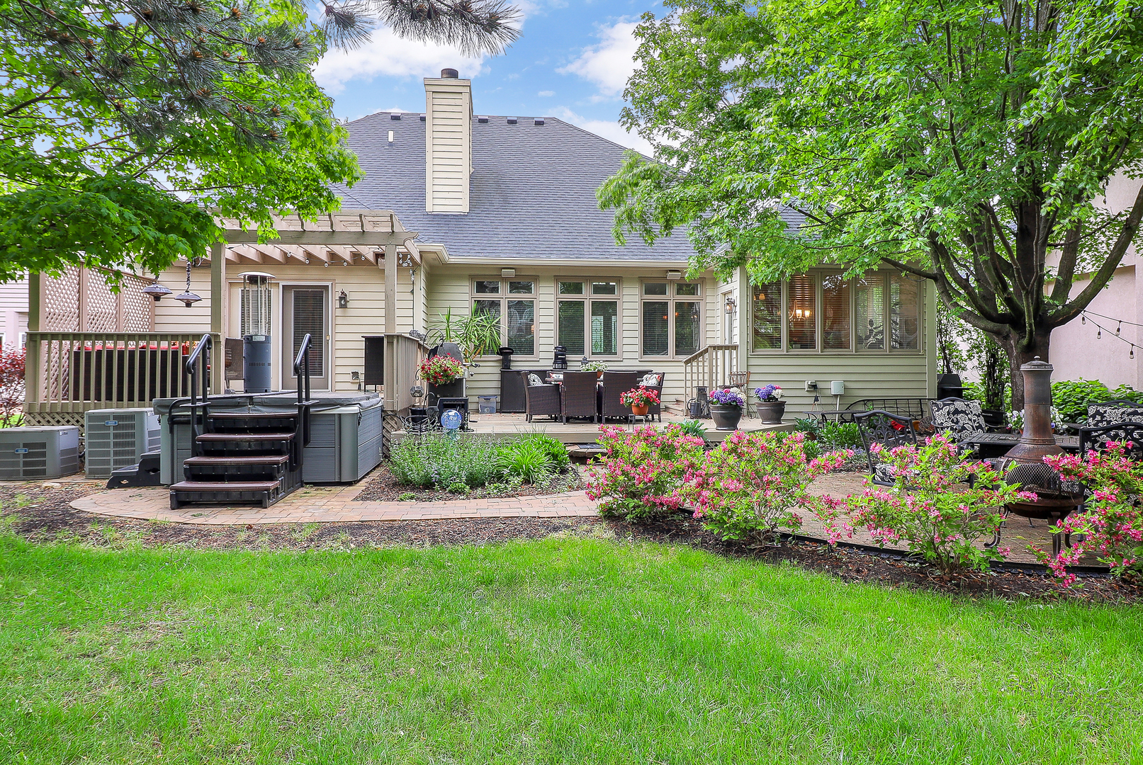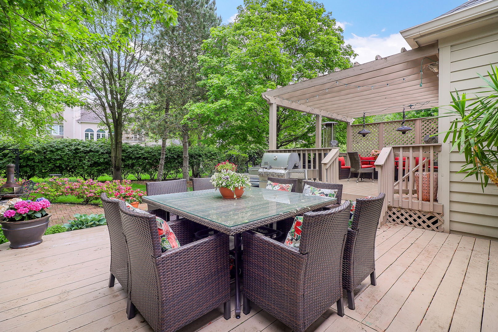Best price in the White Eagle Club! Spacious and Modern, Located in the maintenance-free Manors of White Eagle where lawn care and snow removal is done for you, this 4,800+ sq ft home is perfect for entertaining. The bright and bold first-floor primary suite features high ceilings, a new skylight (2021), and access to a large deck with a hot tub (2022). The gourmet kitchen includes granite counters, stainless appliances, and a large island. The open first floor boasts soaring ceilings, a formal dining room, an office with a fireplace, and a two-story family room with a wall of windows which brings the outdoors in with beautiful views and with another fireplace. Upstairs, find a second master with en-suite, two large bedrooms, and a shared bath. The finished basement offers a bedroom, workout room, large bath, rec room, family room, and direct garage access. Outside, enjoy a paver patio, multi-level decks with a pergola, and a lush backyard perfect for gatherings. Community amenities include a pool, tennis, pickleball, clubhouse, and 24/7 security. Award-winning District 204 schools. Updates include new roof/gutters (2021), hot water heater (2024), dishwasher (2022), and microwave (2025). New hardwood floors in office and family room.