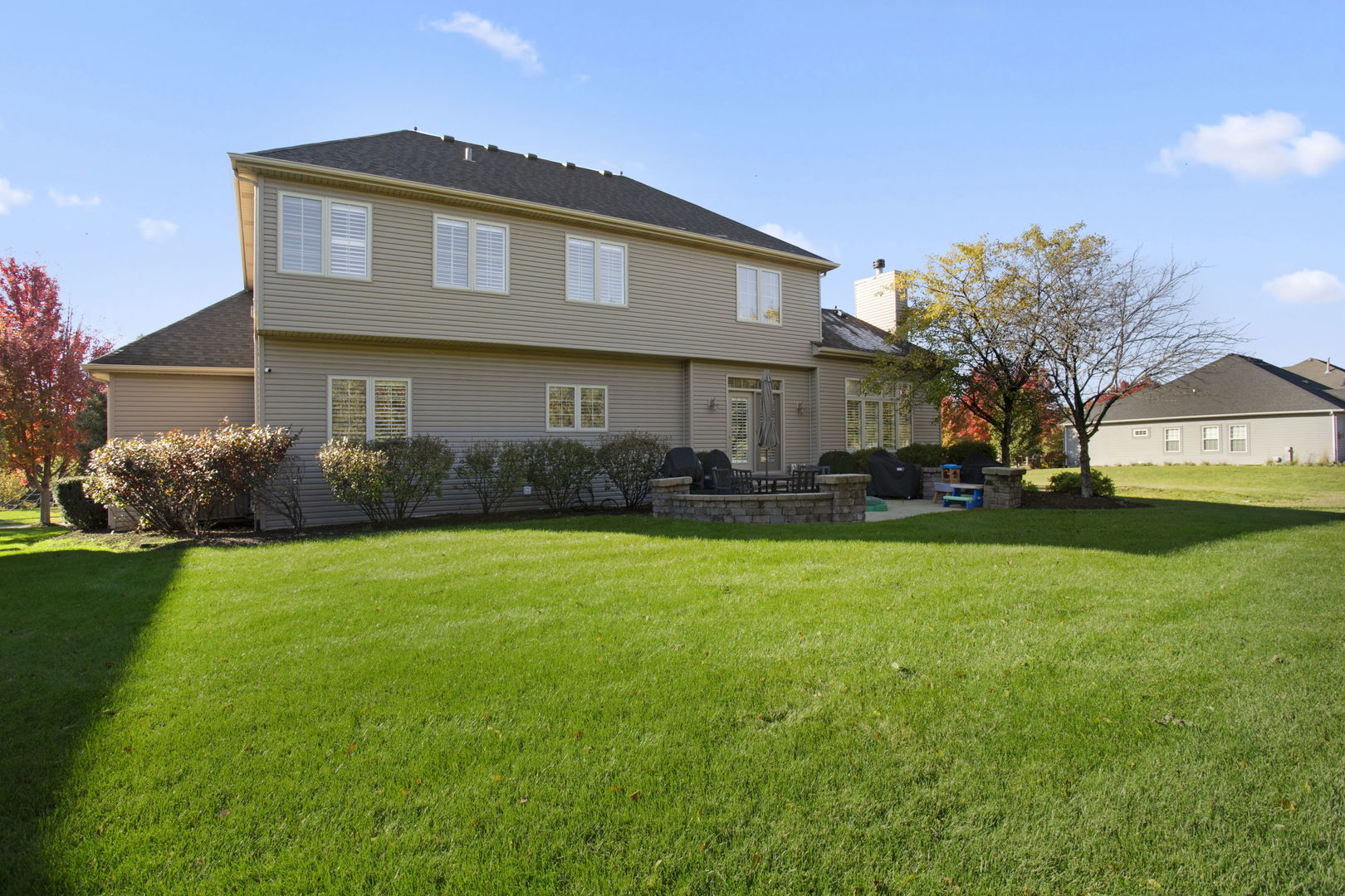 Welcome to this stunning custom-built home nestled in the highly desirable Grande Park pool and clubhouse community. Thoughtfully designed and impeccably maintained, this residence blends timeless craftsmanship with modern comfort and convenience. Step inside to an open-concept layout featuring a vaulted family room with a gas fireplace and abundant natural light. The gourmet kitchen showcases staggered cabinetry, granite countertops, stainless-steel appliances (including a double oven and cooktop), and a built-in workstation perfect for recipes, organization, or remote work. Enjoy gatherings in the formal dining room, and make the most of the newly built-in home office, offering the ideal setting for productivity or study. Upstairs, retreat to the luxurious primary suite with French doors, a tray ceiling, a cozy gas fireplace, and a spacious walk-in closet. The spa-inspired bath features a whirlpool tub, separate shower, and dual vanities for everyday indulgence. Additional generously sized bedrooms and a dual-vanity hall bath complete the upper level. A first-floor laundry/mudroom adds everyday functionality, while the full unfinished basement with a bathroom rough-in provides endless potential for future living space. This home has been meticulously updated, including: New furnace and AC (2024) with new humidifier (2024) New double oven (2024), New stove top (2024), New microwave (2025) New sump pump (2024) Additional highlights include 9-foot ceilings, rich hardwood floors throughout most of the first floor, custom trim and millwork, plantation shutters, and an oversized three-car garage. The professionally landscaped yard offers a large patio with seat walls and a full-yard irrigation system, ideal for outdoor entertaining. Located within District 308 Schools, with K-8 campuses right in the subdivision, residents enjoy exclusive access to clubhouses, pools, parks, trails, ponds, sport courts, playgrounds, and a sledding hill. Conveniently close to shopping, dining, highways, and entertainment, this immaculate Grande Park gem is the perfect place to call home.