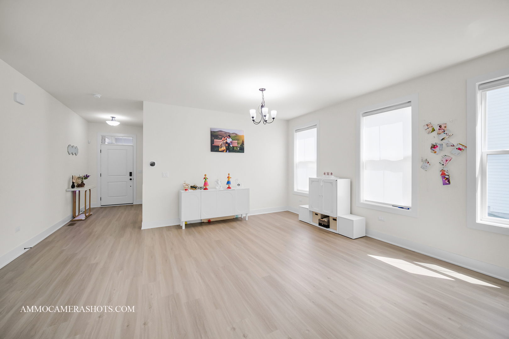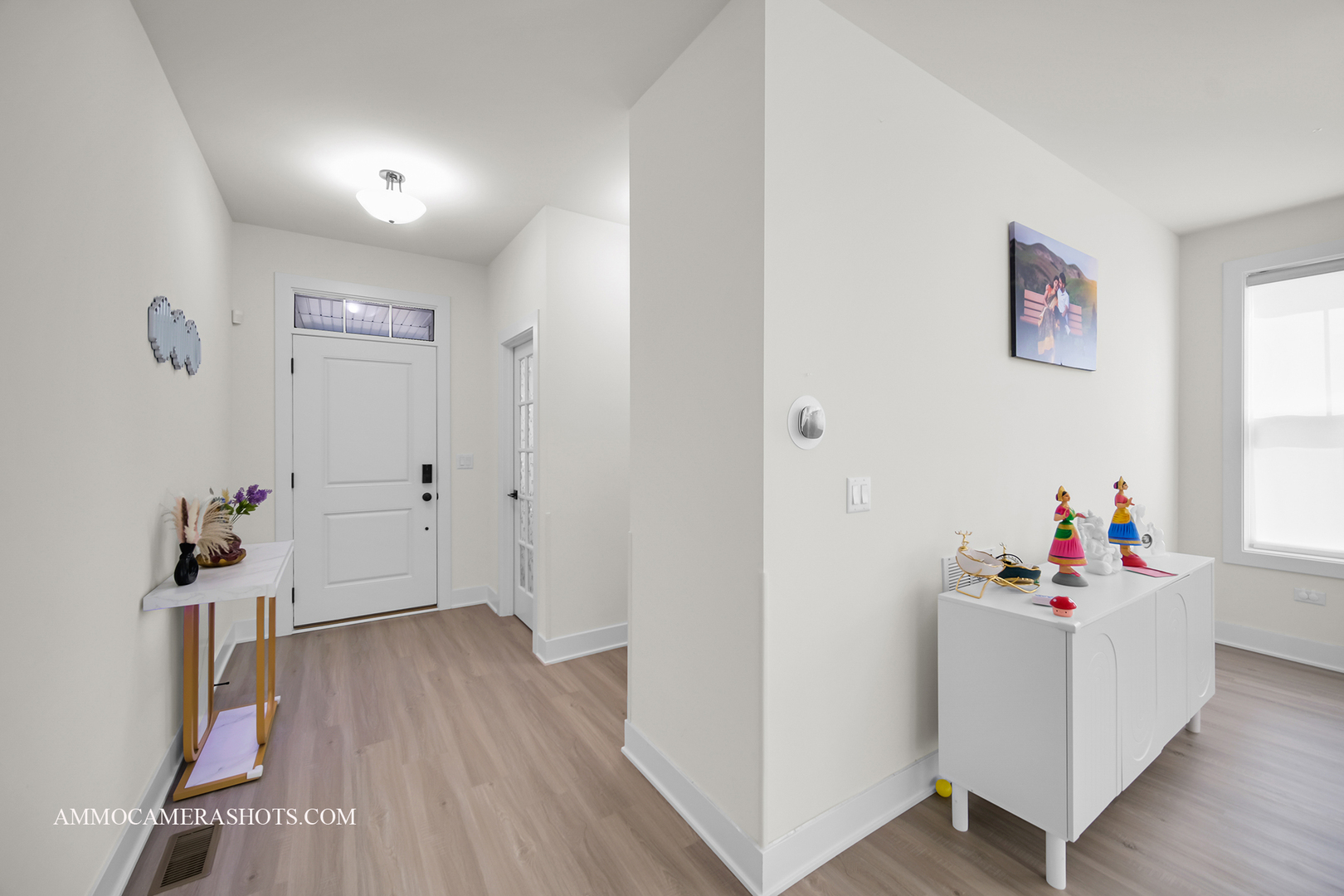 Experience Elevated Living in This perfect 4-Bedroom, 3-Bath Home Upgraded Modern Farm House elevation, on a Premium lot with private backyard into woods, welcomes you filling in calmness. Step into sophistication as you enter this beautifully crafted home, where rich premium vinyl wooded floors, elegant finishes, and a thoughtfully designed layout come together in perfect harmony. At its heart is a show-stopping gourmet kitchen-featuring premium Level-5 quartz countertops, Level-5 premium soft-close cabinetry, a designer tile backsplash, and sleek stainless steel premium upgraded appliances, All matching for elegant look with black-white theme-ideal for both everyday living and stylish entertaining. Enjoy effortless flow from the kitchen to the breakfast area, casual dining space and expansive great room, creating a warm and inviting atmosphere for gatherings big or small. A versatile main-floor flex room offers endless possibilities – perfect as a home office, playroom, creative studio, or fitness space tailored to your lifestyle. A Full Bath in first floor is designed with premium tile finish and glass door, with level-5 countertop and cabinetry Security and peace of mind are built in, thanks to a full home-inbuilt security system. Prewired for security cameras, doorbell. Entry-exit alarm system integrated along with motion sensors. Fire extinguishers sprinklers system in basement and water overflow alarm system for basement sump Upstairs, escape to your luxurious primary suite, with a prebuilt soffit offering an elevated 9 foot height ceiling, and a true retreat featuring a premium bathroom, dual walk-in closets, and custom adjustable shelving for easy, elegant organization. Three additional bedrooms-each with their own walk-in closets-offer generous space and share a beautifully appointed hall bath. Access network/TV/Telephone anywhere with ease as all ports are well designed in all necessary locations Spacious Basement with lookout views into backyard, with an ample amount of sunlight emerging into basement – motivates you for your daily routine, gym, play area. And well separated Hvac unit to the corner offers you a large storage space behind it. Blending luxury, functionality, and modern convenience, this home is a perfect fit for today’s dynamic lifestyle. Move-in ready and designed to impress-don’t miss the opportunity to make it yours.