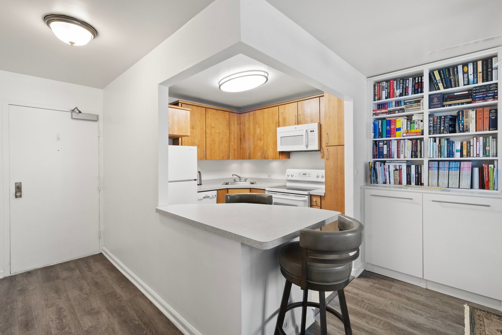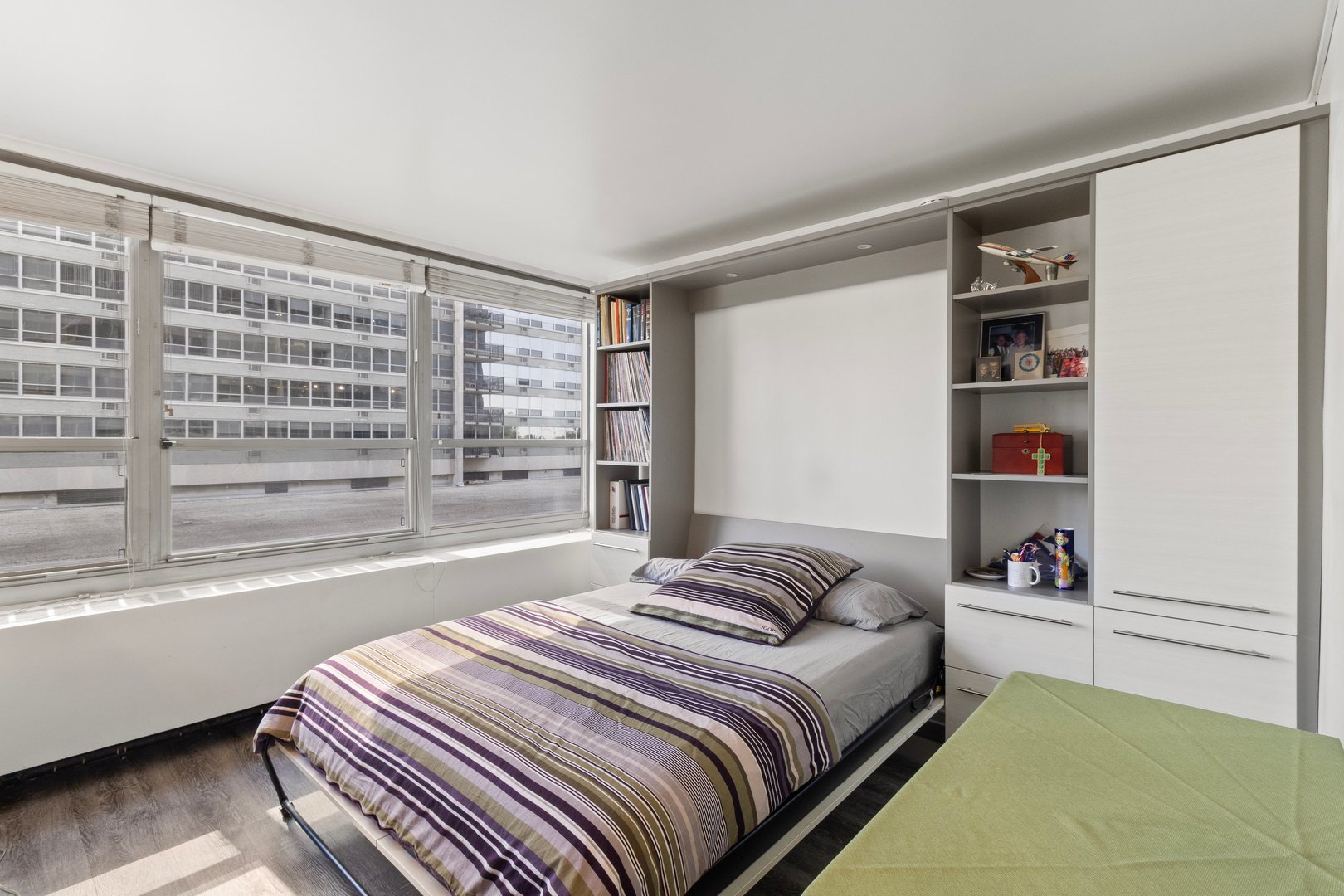 Perched on the second floor, this studio has a great layout. The living area has a custom Murphy Bed with built-ins which allows for different furniture placement. The cook’s kitchen has an open and large breakfast bar, attractive wood cabinets, white contemporary appliances along with an 18″ dishwasher. There’s beautiful vinyl plank flooring throughout. The bathroom has a newer vanity and a large walk-in shower. Great closet space with a large walk-in closet and coat closet. There’s nothing to do but move in. 3550 North Lake Shore Drive is a high-end, full-service building with 24-hour door staff, roof top decks, party room, fitness room, commissary, 2 laundry rooms, secure receiving room, on-site management office, and maintenance staff. Monthly valet parking is available for 160…no wait. Public transportation at your front door. Walk to the Lake, Wrigley Field, and all of East Lakeview. Assessments include heat, water, and Xfinity expanded cable. Owner pays electricity and internet. No dog and non-smoking building. No in unit washer/dryer allowed. Owners must own for 18 months before renting, but there is no “Rental Cap”. Reserves are approximately 9M | No specials planned or pending. NOTE: 3550 has first right of refusal, therefore, FHA financing is not allowed.