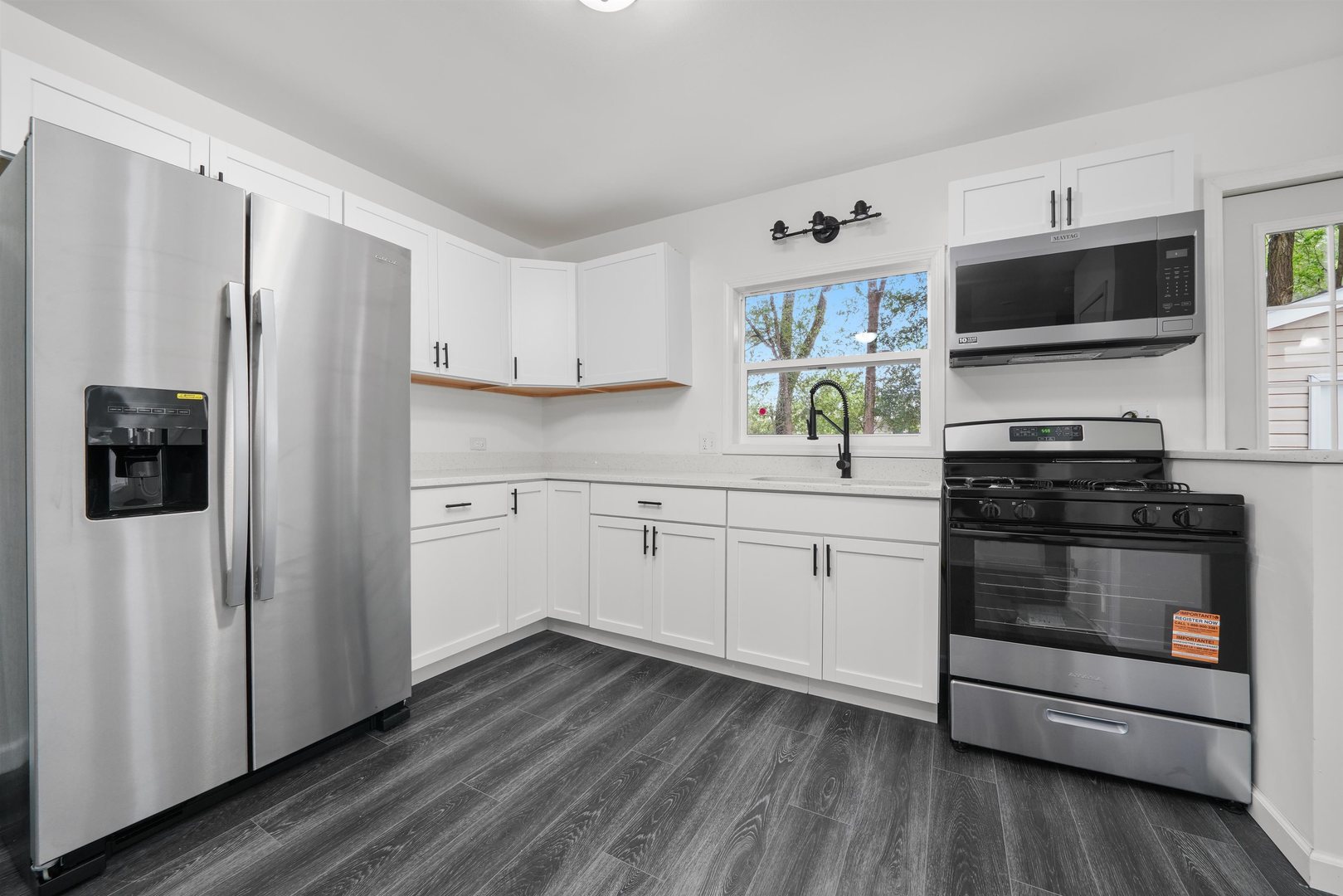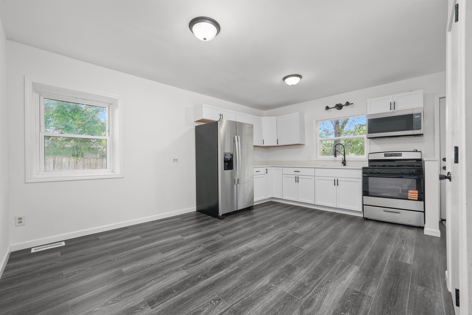 Come check out this This charming 1.5 story home! This 3 bedrooms, 2 bathroom home was recently remodeled and it is ready to be called home, new carpet, new flooring throughout the house, kitchen was completely re-done, with new cabinets, new appliances and much more. The main floor features a bright living room with a large front window that fills the space with natural light, an fully remodeled eat-in kitchen with a door to a deck and private backyard-perfect for relaxing or entertaining. A main floor bedroom and full bathroom complete the layout. Upstairs, you’ll find two more bedrooms and an additional full bathroom. Outside, enjoy a detached garage and a spacious yard ready for entertainment. Come check out if this is the home for you!!!