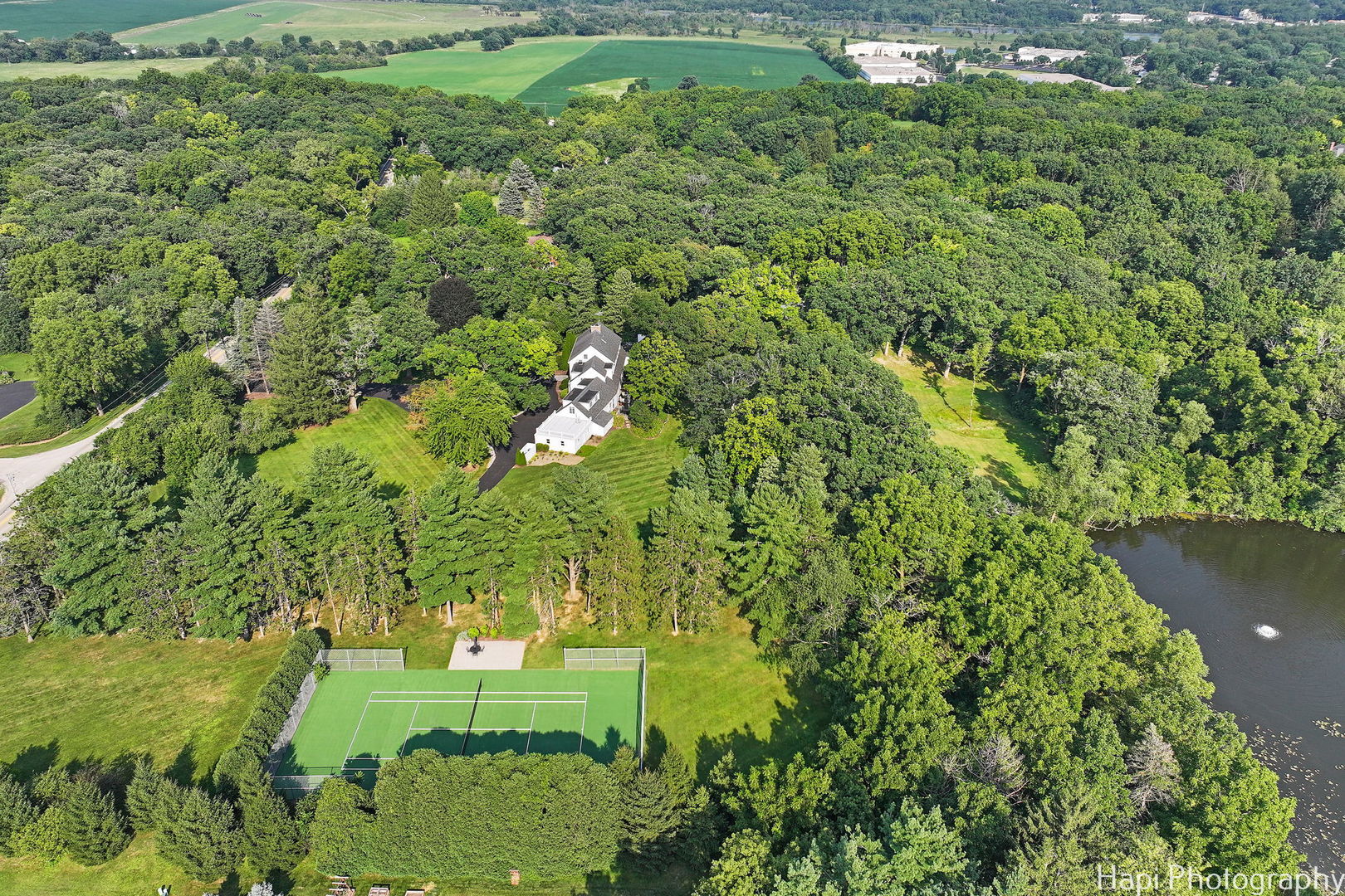 Warm and inviting, this iconic Spring Acres Hills estate is steeped in the history of Dundee. Now offered for the first time on the last remaining 8.42 acres of the original farm. Beautifully maintained and surrounded by mature trees, manicured lawns, and a spring-fed stream, this estate feels like living in a private park. The main residence exudes timeless elegance, offering six spacious en-suite bedrooms, including a first-floor primary suite and a unique multi-generational suite with its own kitchenette and living area. Historic charm abounds, most notably in the paneled library featuring hand-carved pine-meticulously relocated from the original home and rich with generational history. The interior is graced with stunning hardwood floors, intricate crown molding, and numerous built-ins, adding to the home’s character and allure. Enjoy the tranquility of the sunroom and screened porch, where you can unwind and take in the natural beauty that surrounds you. Multiple entertainment spaces include a theater room, game and billiard rooms, a large rec area, and an expansive family dining room that opens to a beautiful stone terrace-perfect for al fresco dining and celebrations of any size. The updated catering kitchen makes hosting effortless. Recreational amenities are second to none: a year-round indoor swimming pool with bath and changing room, a private tennis court. The barn has been thoughtfully repurposed into a guest house plus an exercise room, complete with two bedrooms, a kitchen, a bath, and a sauna. Nature lovers will be captivated by the breathtaking views of ancient oaks and maples that adorn the landscape. This fabulous home is perfect for creating cherished memories. Designed for both intimate gatherings and grand-scale entertaining, the home has graciously hosted everything from neighborhood dinners to corporate functions and even four weddings with up to 300 guests. This rare offering combines refined luxury, flexible living spaces, and a sense of legacy in a one-of-a-kind setting. Discover the unmatched serenity, charm, and function of this historical estate-truly a place to create lasting memories for generations to come.