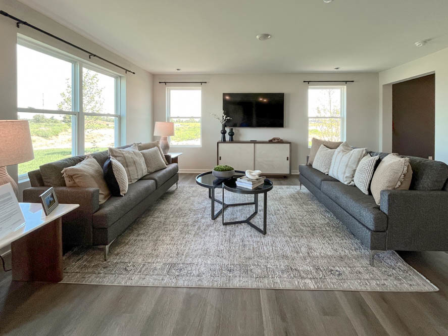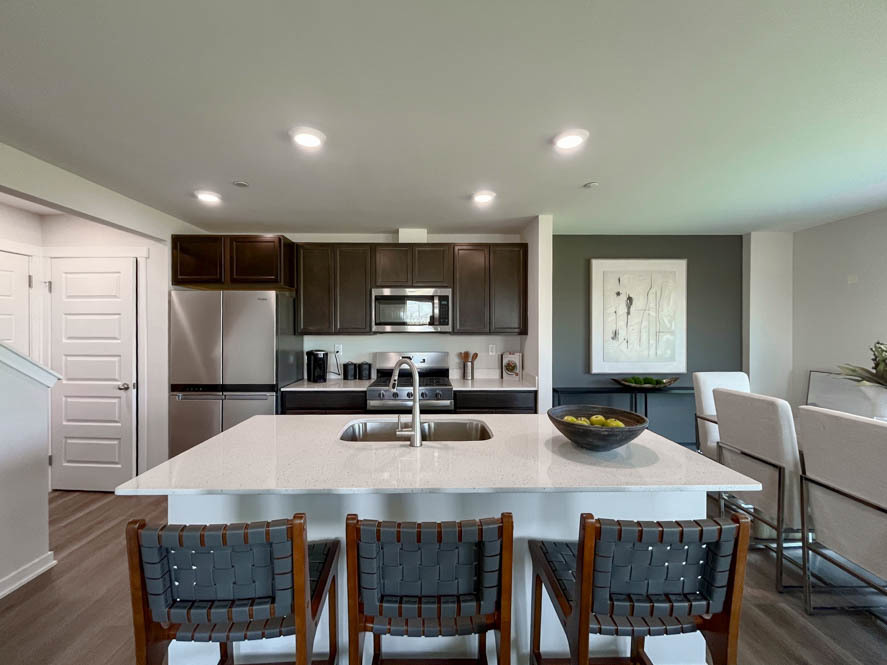 Discover yourself at 3538 Richardson Cir, Yorkville, Illinois, a beautiful new home in our Grande Reserve community. This townhome will be ready for a SPRING move-in! Homesite includes a fully sodded yard that is maintained throughout the year as well as snow removal in the winter. This end unit home is built on a premium lot with a spacious back yard. This Portsmouth townhome plan offers over 1,845 square feet of living space with 3 bedrooms plus a loft, 2.5 baths, a mudroom and a 2-car garage. As soon as you step inside, you’ll be greeted by our open concept living area, featuring luxury vinyl plank throughout the main living areas. The expansive kitchen overlooks the dining and great room areas, making it the ideal space to entertain. Additionally, your kitchen features designer 36-inch soft close cabinetry, a spacious island with quartz countertops, and pantry. Enjoy your large primary bedroom with a walk-in closet and connecting en suite bathroom. The upper level features a laundry room, secondary bedrooms with a full second bath with double sinks, and linen closet. All Chicago homes include our America’s Smart Home Technology, featuring a smart video doorbell, smart Honeywell thermostat, smart door lock, Deako smart light switches and more. Photos are of similar home. Actual home built may vary.