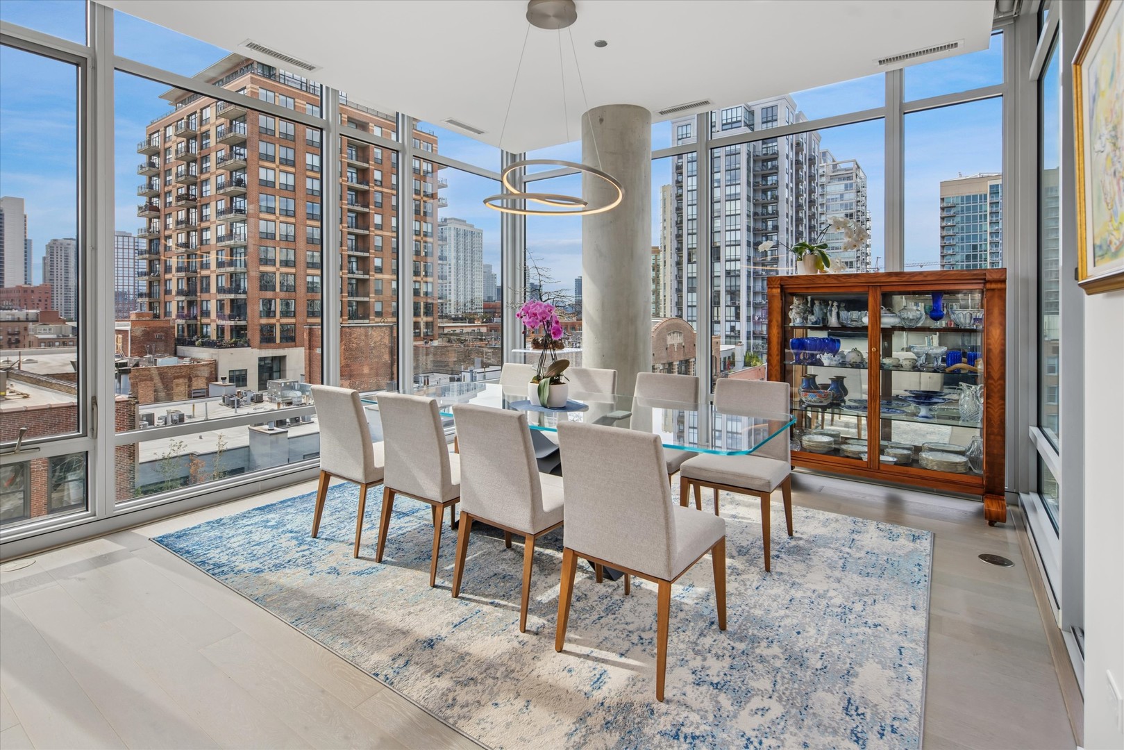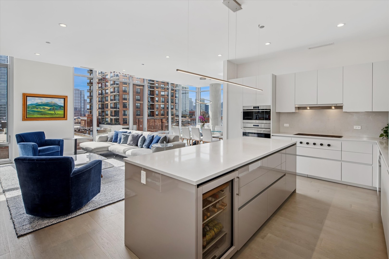 2 GARAGE PARKING SPACES INCLUDED! Highest floor available since building’s completion in 2019! This spectacular River North home is situated in one of Chicago’s most dynamic neighborhoods. Featuring an expansive layout with two private balconies, this residence features floor-to-ceiling, wall to wall windows offering unobstructed urban views and abundant natural light. Enjoy ten-foot ceilings, hardwood floors, and custom built-ins throughout. The chef-inspired, open kitchen is outfitted with sleek Italian cabinetry, marble countertops, and top-of-the-line Wolf & Bosch appliances-perfect for both everyday living and entertaining. An impressive primary suite includes two walk-in closets, a private terrace, and a spa-caliber bath for the ultimate retreat. Two additional generously sized bedrooms-one with an ensuite bath-offer versatility and comfort. A full laundry room and exceptional storage complete this exceptional home.