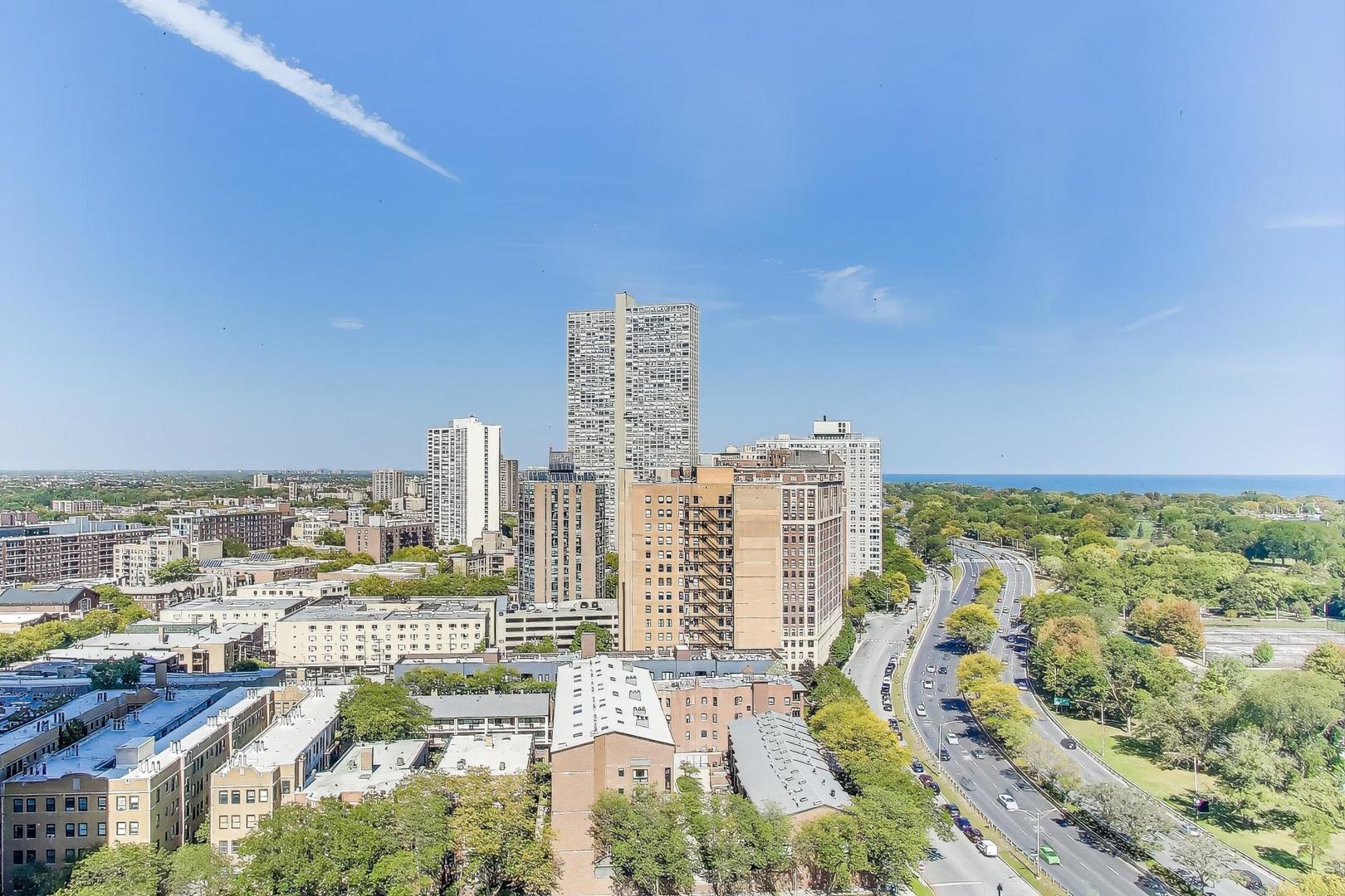 Experience urban sophistication in East Lakeview! This expansive studio is the largest model in the building, offering incredible value with city views. A rare opportunity at one of the lowest-priced deals in the area, this mid-century gem has been beautifully updated and is move-in ready. The open, sunlit layout includes a spacious living/dining area, new hardwood flooring, and large picture windows for natural light. The kitchen features tall cabinetry, stainless steel appliances, and stone counters, while the oversized bathroom boasts a soaking tub and modern finishes. Built-ins maximizes space, and storage. Additional storage unit transfers with the sale. This well-managed, full-service building includes upgraded water heating and plumbing projects underway. Residents enjoy premium amenities including 24-hour door staff, on-site management and maintenance, landscaped patio with gas grills, rooftop deck with sweeping lake views, fitness center ($6/mo), two laundry rooms, bike storage, convenience store, dry cleaner, and garage parking (valet available, self-parking waitlist). Cats only; ESA guidelines strictly enforced. HOA reserves approx. $823K. Low taxes and assessments include all utilities except electricity (avg. $25-30/mo). Owners must occupy for 2 years before renting; no rental cap thereafter. Perfectly located in East Lakeview, just steps to the lakefront, beaches, parks, trails, dining, shopping, Wrigley Field, and express bus service downtown. Whether you’re looking for a stylish home, a Chicago pied-a-terre, or a smart investment, this home delivers on location, lifestyle, and value-all at an entry-level price point. Come check it out!