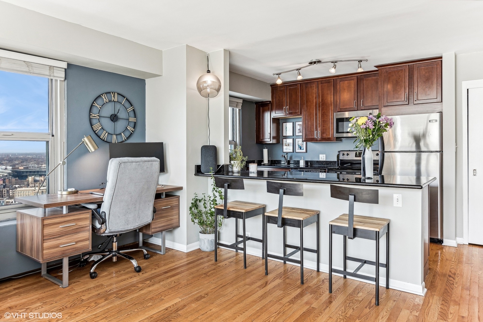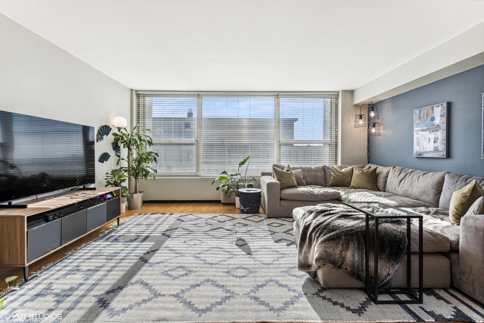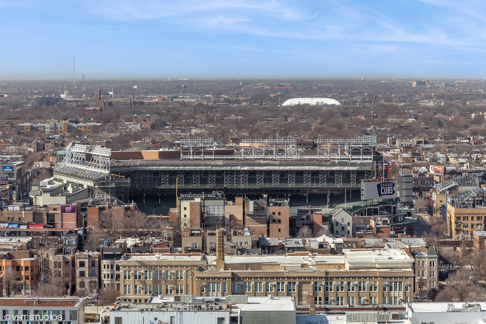 Over-sized corner 1-bedroom unit with tons of natural light and panoramic views from its high floor within a prestigious full amenity building! This sought-after floor plan on the coveted South and West corners offers stunning vistas of the lake, iconic Wrigley Field, and glimpses of the downtown skyline. Recently renovated, the unit features gleaming hardwood floors in the main living area, a modern kitchen with granite countertops and stainless steel appliances, and an updated bathroom. The generously-sized bedroom easily accommodates a king-sized bed, nightstands, and a dresser, providing a rare level of comfort and convenience. Residents enjoy a wealth of amenities including a 24-hour door person, on-site management, a well-equipped workout room, a scenic roof deck, and a convenient commissary. With the Addison Red-line stop nearby and express buses at your doorstep, this prime location offers unparalleled accessibility to city living. Tenant occupied will need 48hr notice to show.