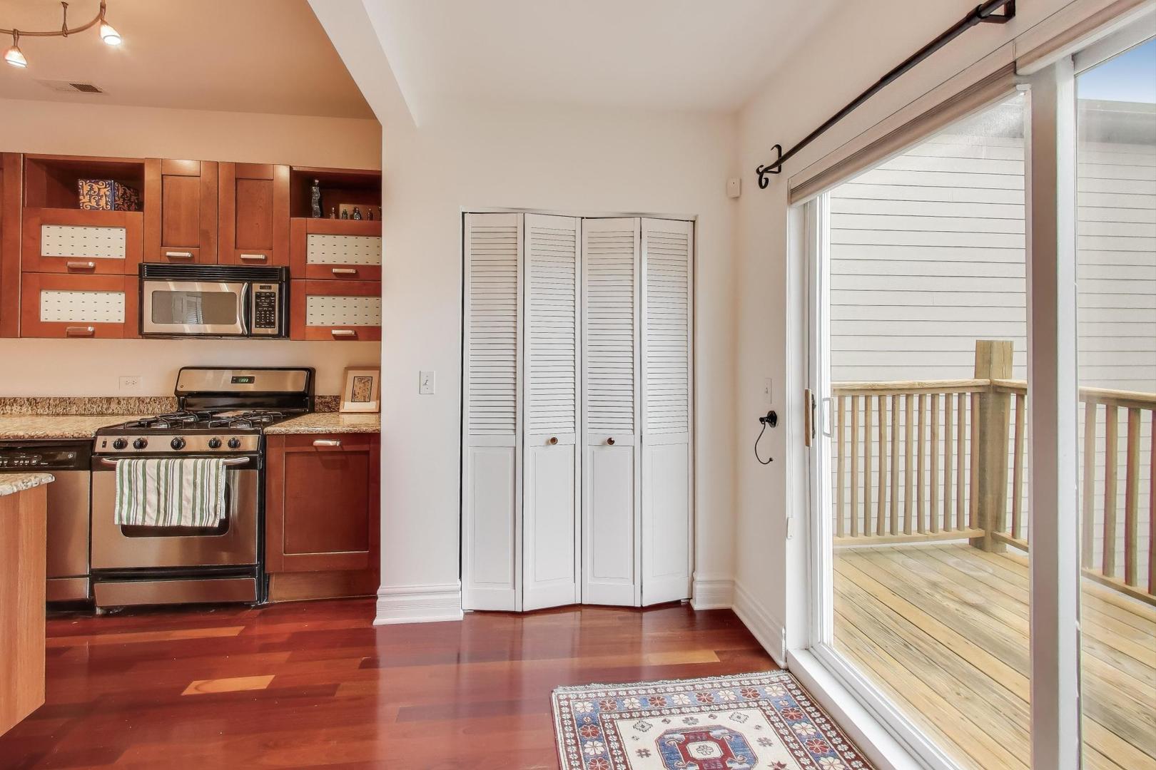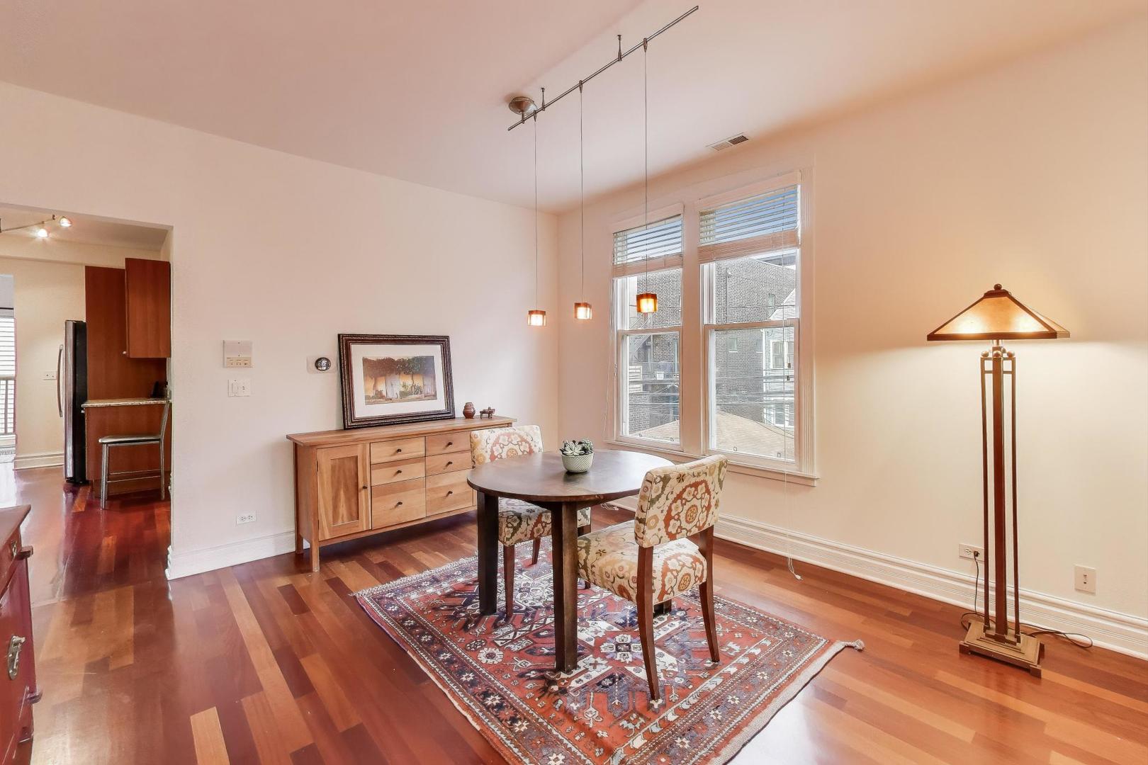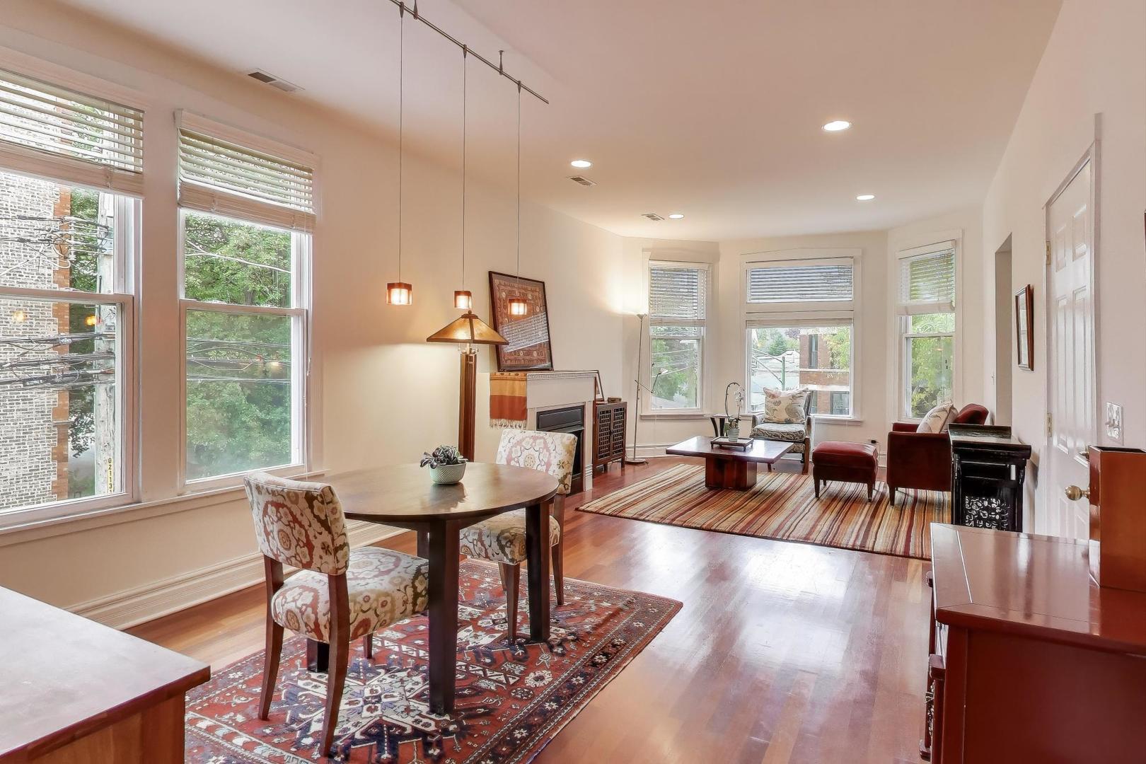Welcome to the charming and historic Roscoe Village neighborhood, where modern convenience meets classic elegance. Presenting a unique 3 bedroom 2 bath duplex up living space designed for those who appreciate both comfort and style. Step inside to discover a freshly updated interior featuring brand new carpet in bedrooms and a fresh coat of paint, providing a clean and inviting atmosphere. This unit is part of a beautifully maintained intimate building, offering the perfect blend of community and privacy. The kitchen is equipped with sleek stainless steel appliances and granite counters, enhancing both functionality and aesthetic appeal, making it a delight for any home chef. Enjoy seamless indoor-outdoor living with a patio off the kitchen, perfect for morning coffee or evening relaxation. Beautiful hardwood floors and loads of light flood the living and dining room. The second floor offers a large primary bedroom and an additional bonus room with skylights. Key amenities include an assigned parking space, ensuring your vehicle is always secure and accessible. Additionally, enjoy the convenience of having laundry facilities right in the unit, saving you time and adding to the ease of living in this vibrant locale. Experience the best of Roscoe Village living in this distinct unit, offering modern updates and essential amenities for a seamless urban lifestyle. Easy access to shopping, transportation and expressway. Cats only building.