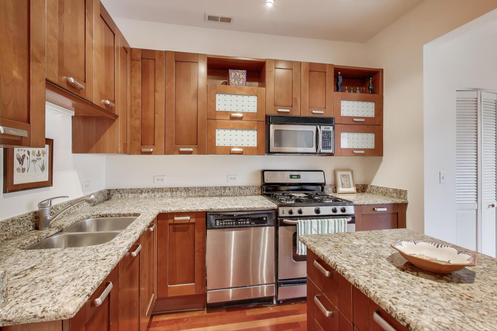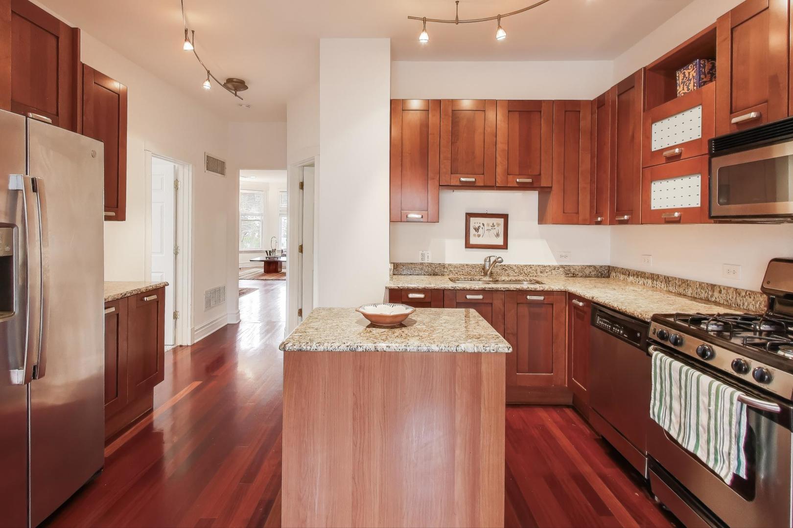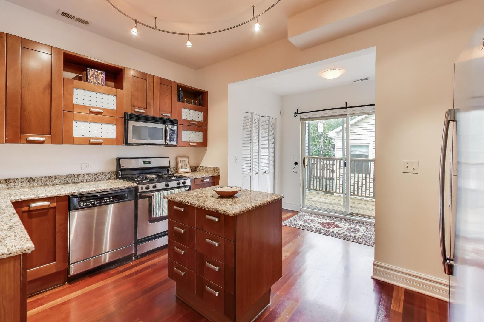 Welcome to the charming and historic Roscoe Village neighborhood, where modern convenience meets classic elegance. Presenting a unique 3 bedroom 2 bath duplex up living space designed for those who appreciate both comfort and style. Step inside to discover a freshly updated interior featuring brand new carpet in bedrooms and a fresh coat of paint, providing a clean and inviting atmosphere. This unit is part of a beautifully maintained intimate building, offering the perfect blend of community and privacy. The kitchen is equipped with sleek stainless steel appliances and granite counters, enhancing both functionality and aesthetic appeal, making it a delight for any home chef. Enjoy seamless indoor-outdoor living with a patio off the kitchen, perfect for morning coffee or evening relaxation. Beautiful hardwood floors and loads of light flood the living and dining room. The second floor offers a large primary bedroom and an additional bonus room with skylights. Key amenities include an assigned parking space, ensuring your vehicle is always secure and accessible. Additionally, enjoy the convenience of having laundry facilities right in the unit, saving you time and adding to the ease of living in this vibrant locale. Experience the best of Roscoe Village living in this distinct unit, offering modern updates and essential amenities for a seamless urban lifestyle. Easy access to shopping, transportation and expressway. Cats only building.