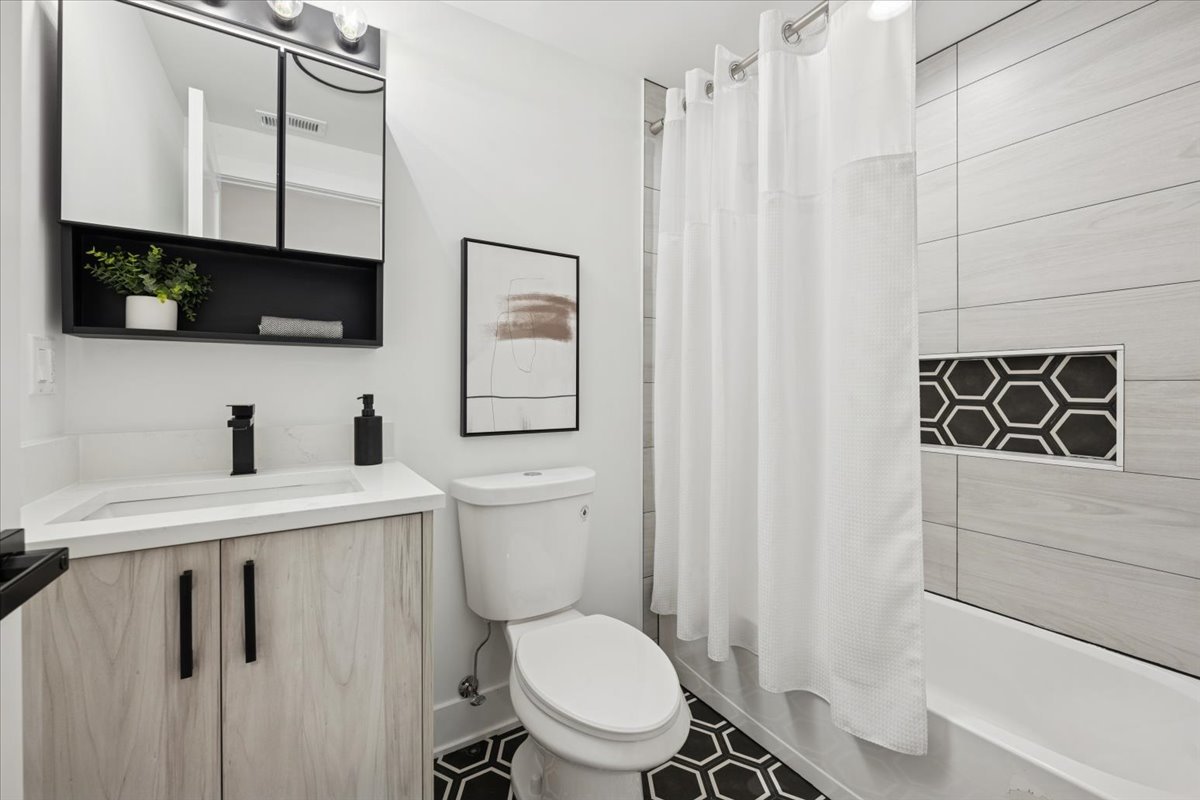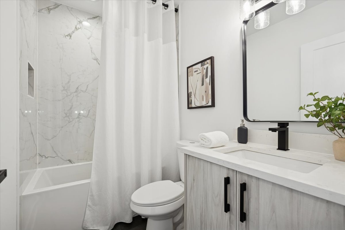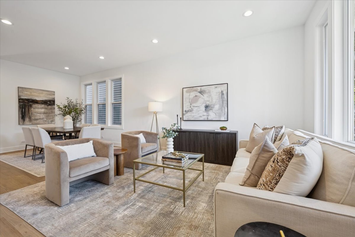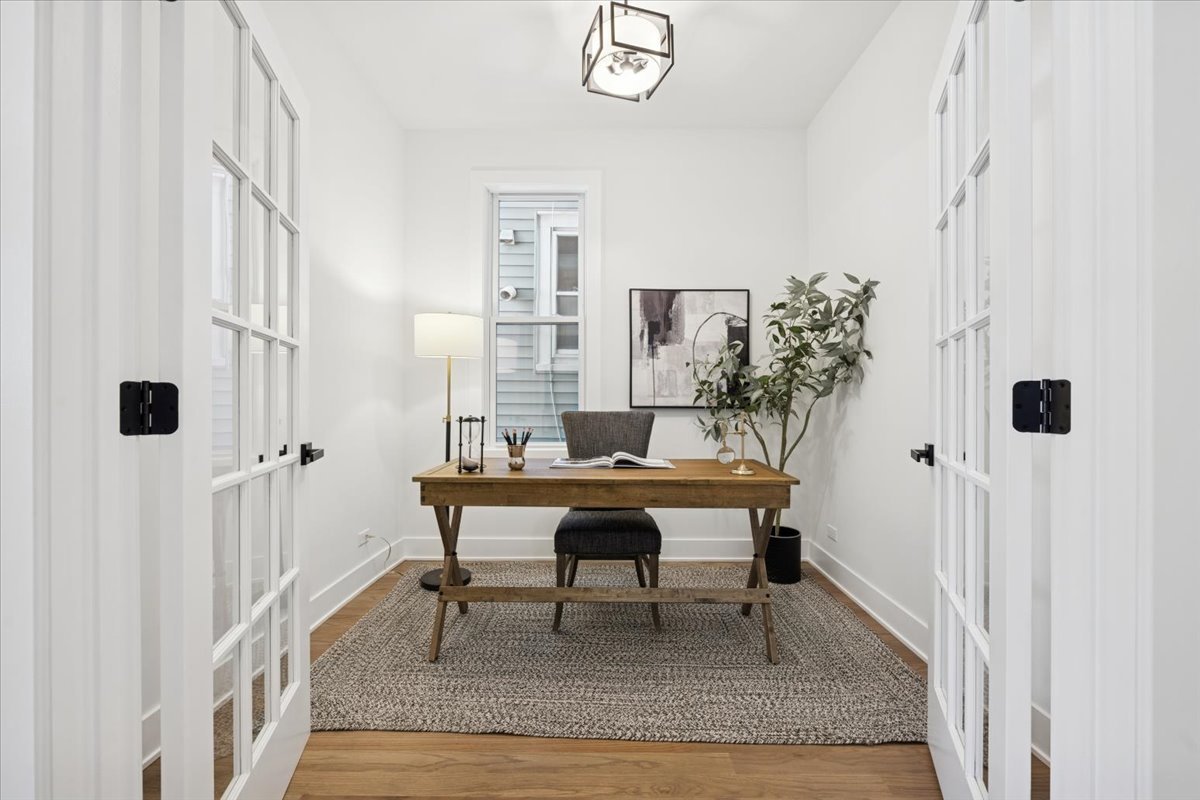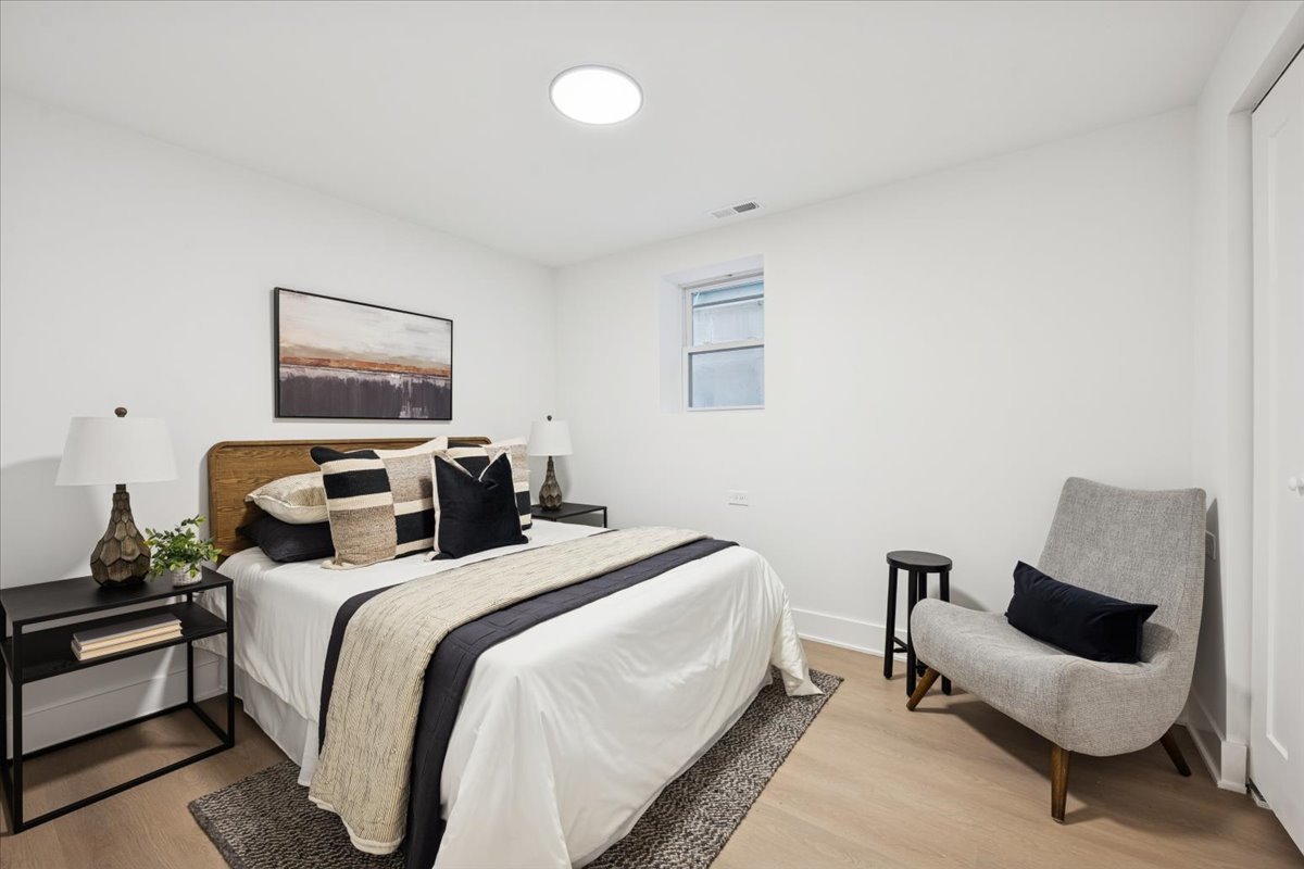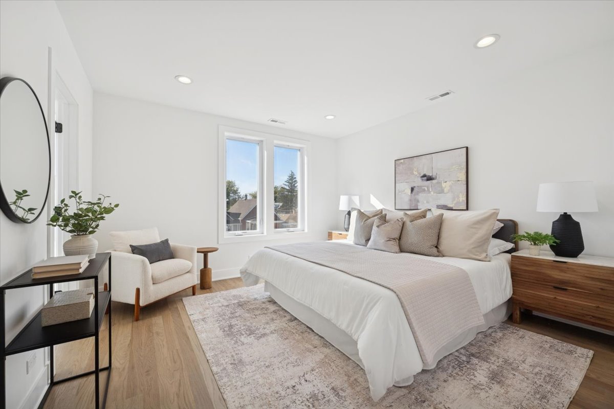 Nothing to do but move in to this flawlessly renovated 4-bedroom, 4-bath single family home in Irving Park! The current owner brought this home down to its studs, added a second floor, and completely redesigned the space with clean, modern finishes. A classic front porch with ample space for seating or a porch swing is the ideal space to relax. Natural light from large windows with south, east, and west exposures floods the entire living space on the main level. An open floor plan flows seamlessly through generous living spaces including a living room with enough space to accommodate two separate seating areas and a dining area with ample space to host both dinner parties as well as intimate affairs. Glass French doors open into the perfect home office conveniently located just off the kitchen. The chef’s kitchen is appointed with stylish features such as veined quartz counters, Marfa cabinetry, stainless steel Bosch appliances, and access to a private deck overlooking the backyard – the perfect place for dining al fresco. A full bathroom completes this level. Upstairs, a serene primary suite features a large bedroom with south-facing views overlooking Richmond Street, a huge walk-in closet, and an elegantly appointed ensuite bath. Two additional bedrooms and another full bath occupy this level along with a closet fully plumbed and ready to hook up your washer and dryer. The lower level has a family room, a fourth bedroom, full bath, and an additional room perfect for a den, another home office, playroom, or hobby room. Plenty of green space abounds in the backyard, which leads to the detached, 2-car garage. This special home is situated on a quiet, tree-lined street within walking distance to Lane Tech and DePaul Prep with easy access to public transportation and the expressway, Target, Mariano’s, shopping, restaurants, and all Irving Park has to offer. Welcome home!