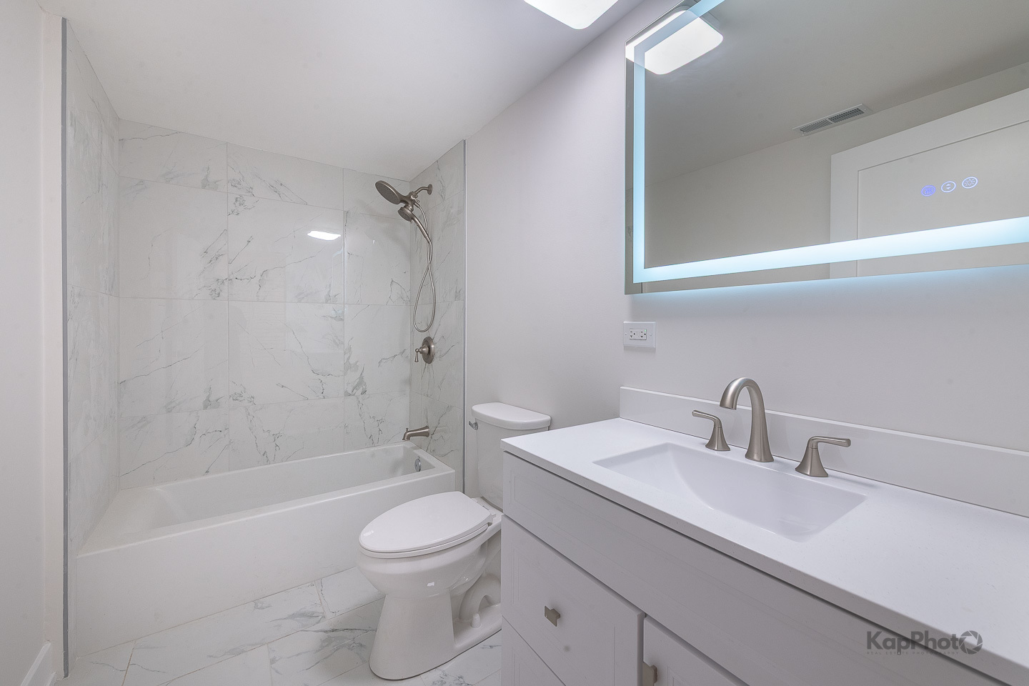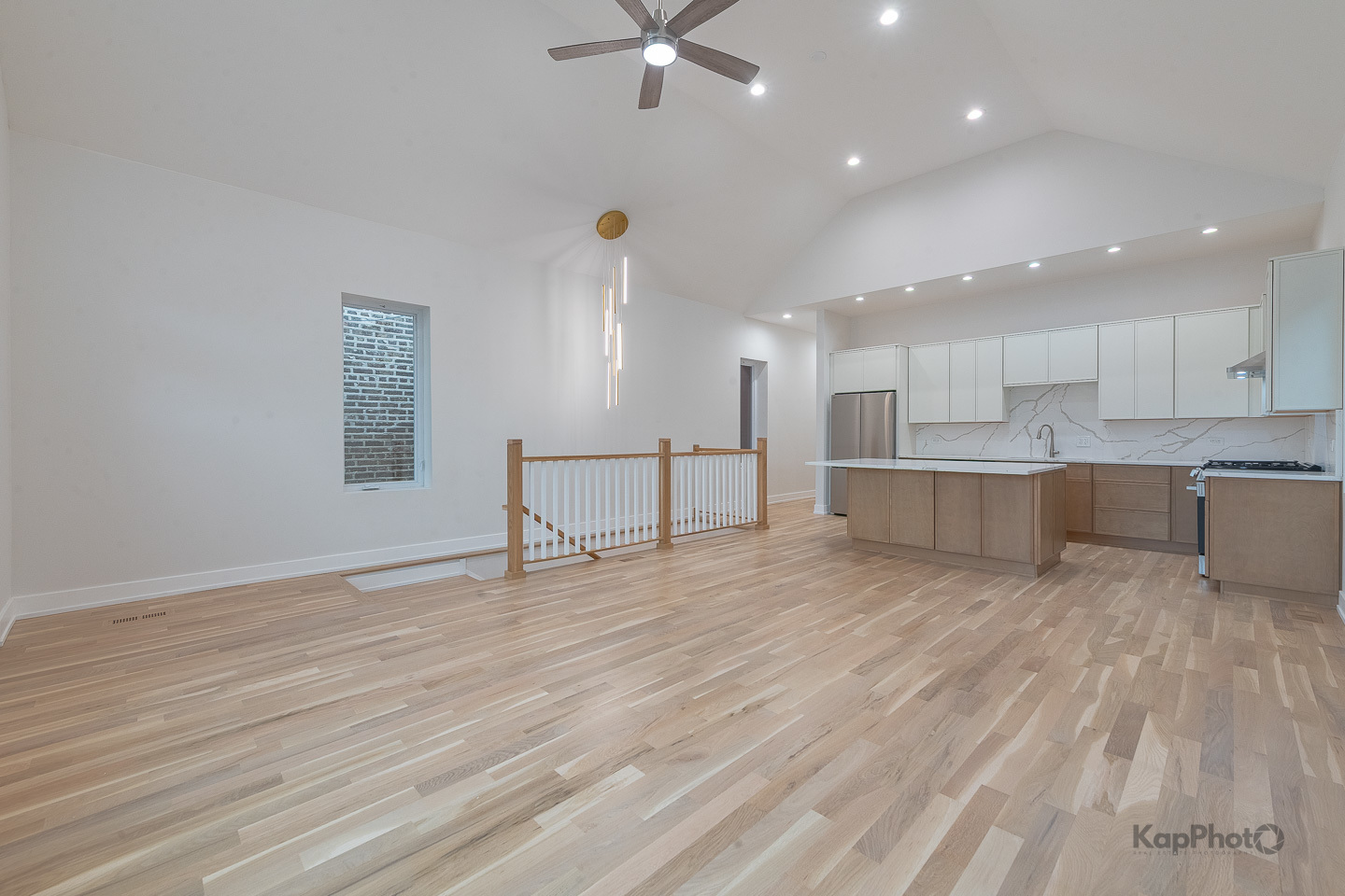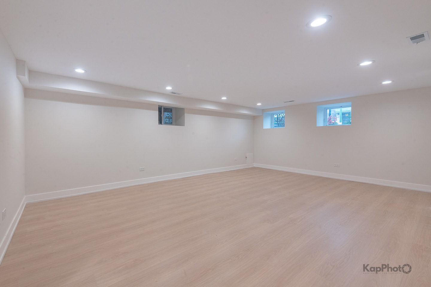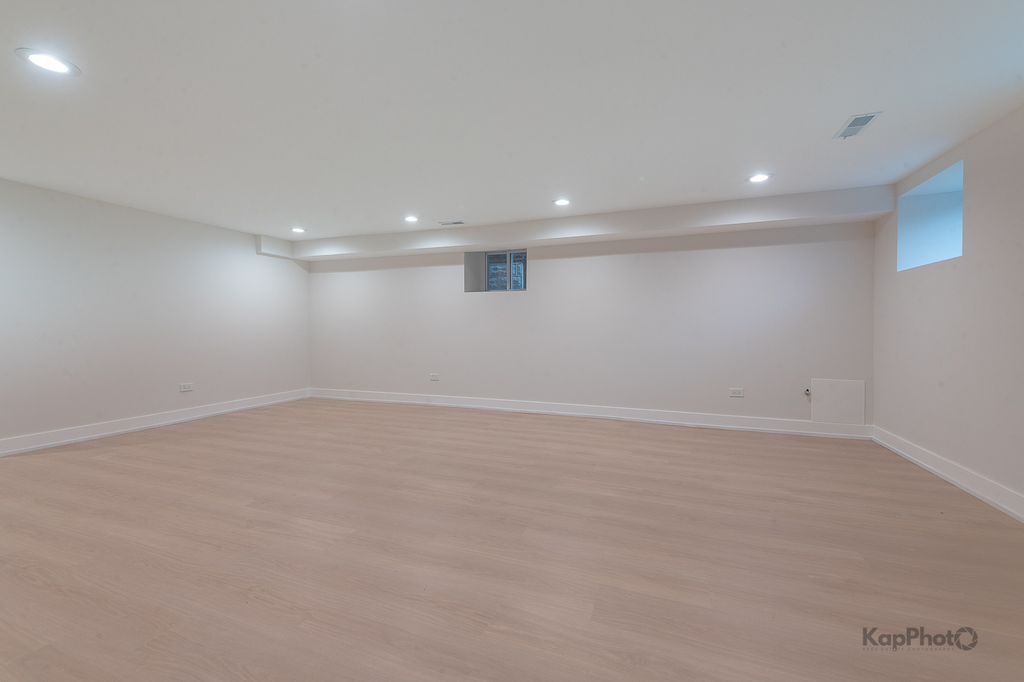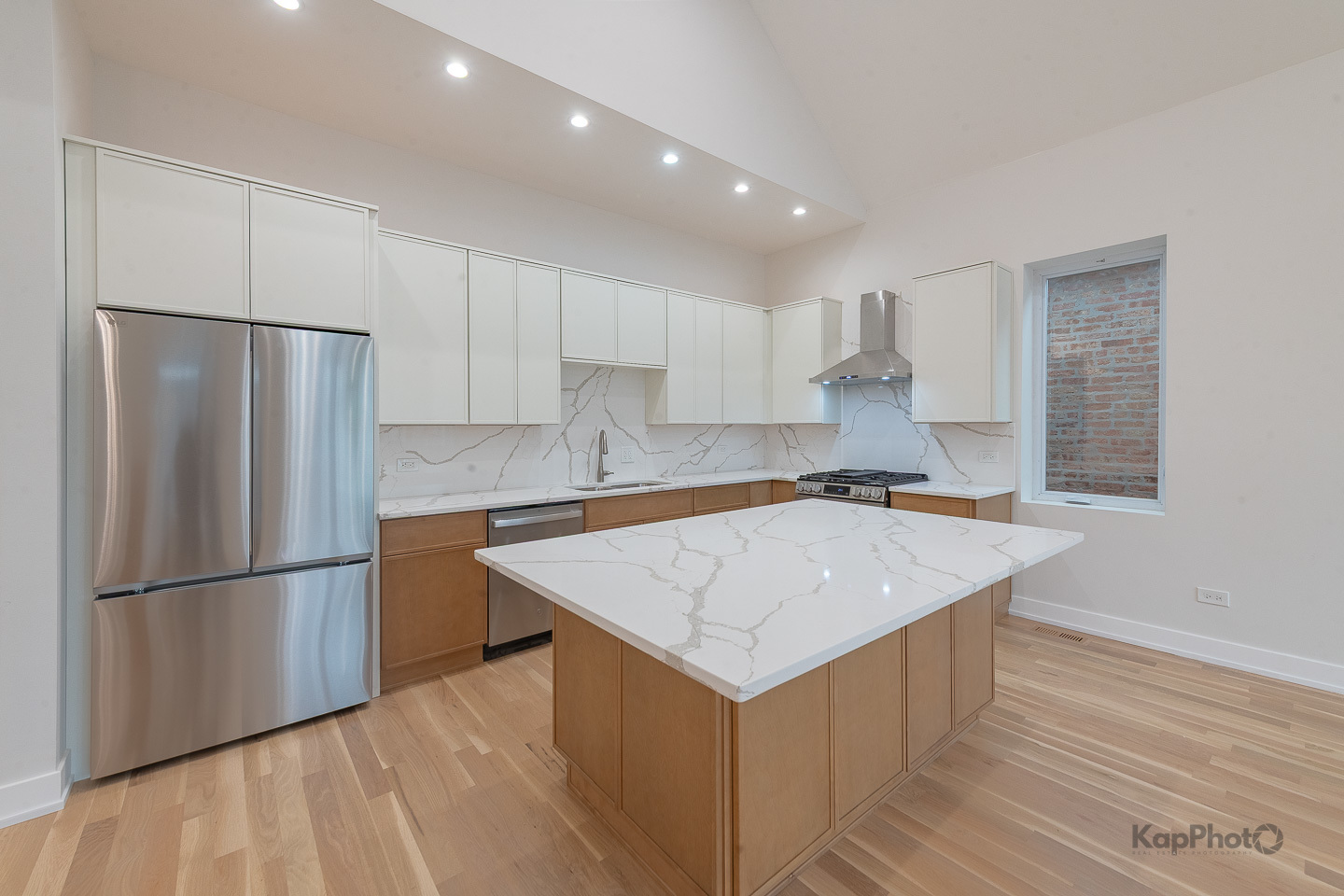 The transformation is now complete! This fully renovated and thoughtfully designed 4 bed / 2.5 bath single-family home offers exceptional curb appeal with a stately facade that sets the stage for the sophistication within. A gracious foyer welcomes you into a dramatic great room boasting 14-foot ceilings and 3.25″ white oak hardwood floors, creating an immediate and lasting impression. The ideal floor plan features two bedrooms on the main level and two on the lower level, perfectly balancing function and flexibility. The chef’s kitchen showcases two-tone cabinetry, a large center island, LG/GE Profile stainless steel appliances, and sleek calacatta Quartz countertops. A hallway leads to the primary suite, an additional bedroom, a powder room, and access to a spacious rear deck and backyard with fresh sod-ideal for outdoor dining or relaxation. The primary suite offers ample closet space and a luxurious bath with a walk-in shower, Kohler fixtures, glass shower panel, and designer porcelain tile. The expansive lower level is perfect for entertaining or unwinding, complete with a large family room, recessed lighting, storage, and more. This level also includes two additional bedrooms, a full bath, a laundry area, and a mechanical room. This home isn’t just stunning, it has great bones with features that include a brand new 2-car garage, drain tile with waterproof membrane, new concrete slab, tankless water heater, new 200 amp electrical service, new plumbing systems, spray foam insulation, new windows by Lang, new furnace, 2-ton condenser, new gas service and meter, 5.25″ baseboards, custom lighting throughout, new fencing, and so much more. Perfectly located in the heart of Bridgeport, just steps Joseph T. McKeon Jr. Park, Guaranteed Rate Field, local shops, restaurants, and so much more. This home truly combines modern luxury with neighborhood charm.