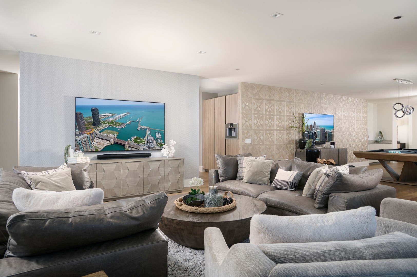 6106 is a premier residence at the 5 Star St. Regis Chicago with jaw dropping views and quite possibly the best amenities in town. In the architectural landmark by Jeanne Gang, this 4708 SF 4 bed/5.1 bath home has an 80′ wide great room with unobstructed N / E / S panoramic views of Lake Michigan, Chicago River, Grant Park, and the city skyline. Ideal for entertaining, this open-concept space integrates a formal living area, a dining space with a built-in wet bar, and a family room along with a 32′ long terrace. The gourmet kitchen is outfitted with Gaggenau and Thermador appliances, sleek Snaidero cabinetry, cantilevered countertops, a seamless natural stone backsplash and an oversized island with seating for four. Thoughtfully curated fixtures and finishes throughout including wide-plank hardwood floors, designer lighting, and custom wall coverings and window treatments. The luxe primary suite comes with two generous walk-in closets and two spa-inspired en-suite baths featuring full-height stone, Robern cabinetry, Kallista fixtures, heated floors, and glass-encased showers (one with a built-in makeup station and freestanding tub). The three secondary bedrooms are separated from the primary and each have their own en-suite bathroom. Additional features include a stylish powder room, a large laundry room, and plenty of storage. Residents of The St. Regis Chicago enjoy unmatched amenities: the private 47th-floor owner’s level features an outdoor pool, hot tub, fire pit, fitness and training studios, a private dining room for 20, a demonstration kitchen, a wine tasting room with private storage, a kids play center, and a secure dog run. Other amenities include a luxurious indoor pool, a full-service spa, a sky terrace, and 24-hour concierge and butler service, ensuring every need is met. Better still, culinary excellence is just an elevator ride away with renowned on-site dining options Tre Dita and Miru. Steps from the Chicago Riverwalk, Millennium Park and the Magnificent Mile, 363 E. Wacker Dr unit 6106 offers unsurpassed luxury, location, and lifestyle in the heart of Lakeshore East. One valet space and one premium self-park space are included.
