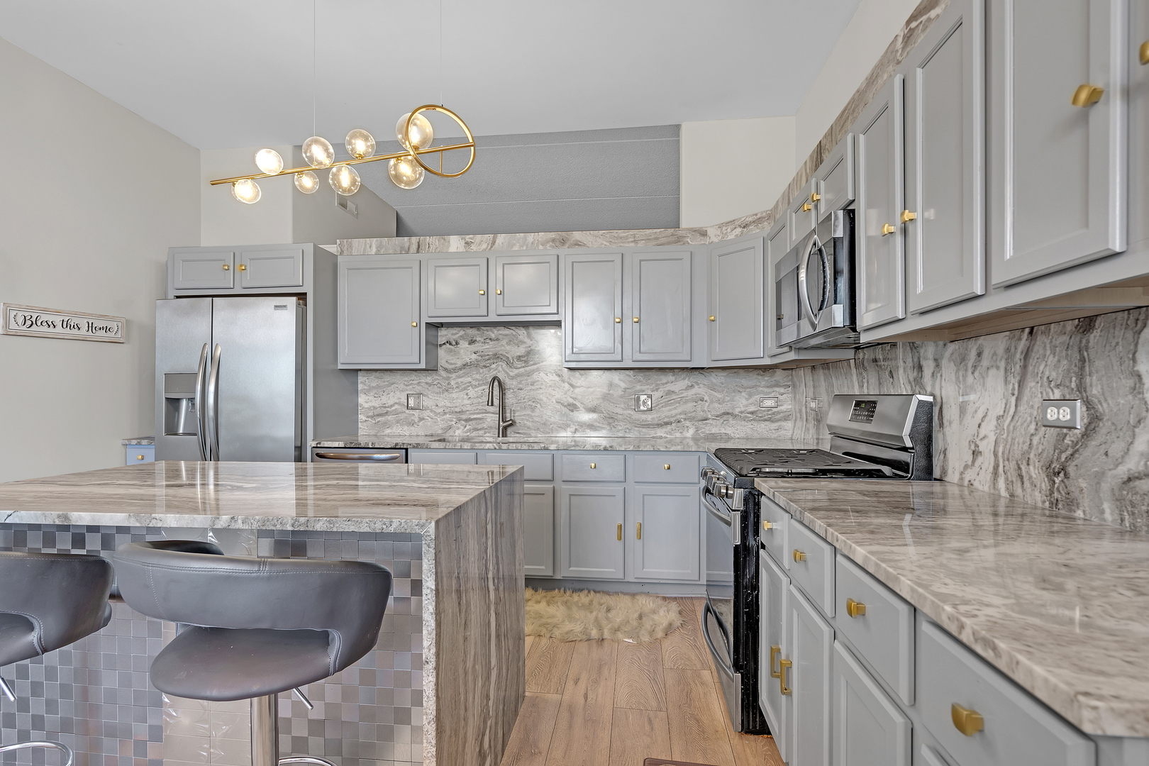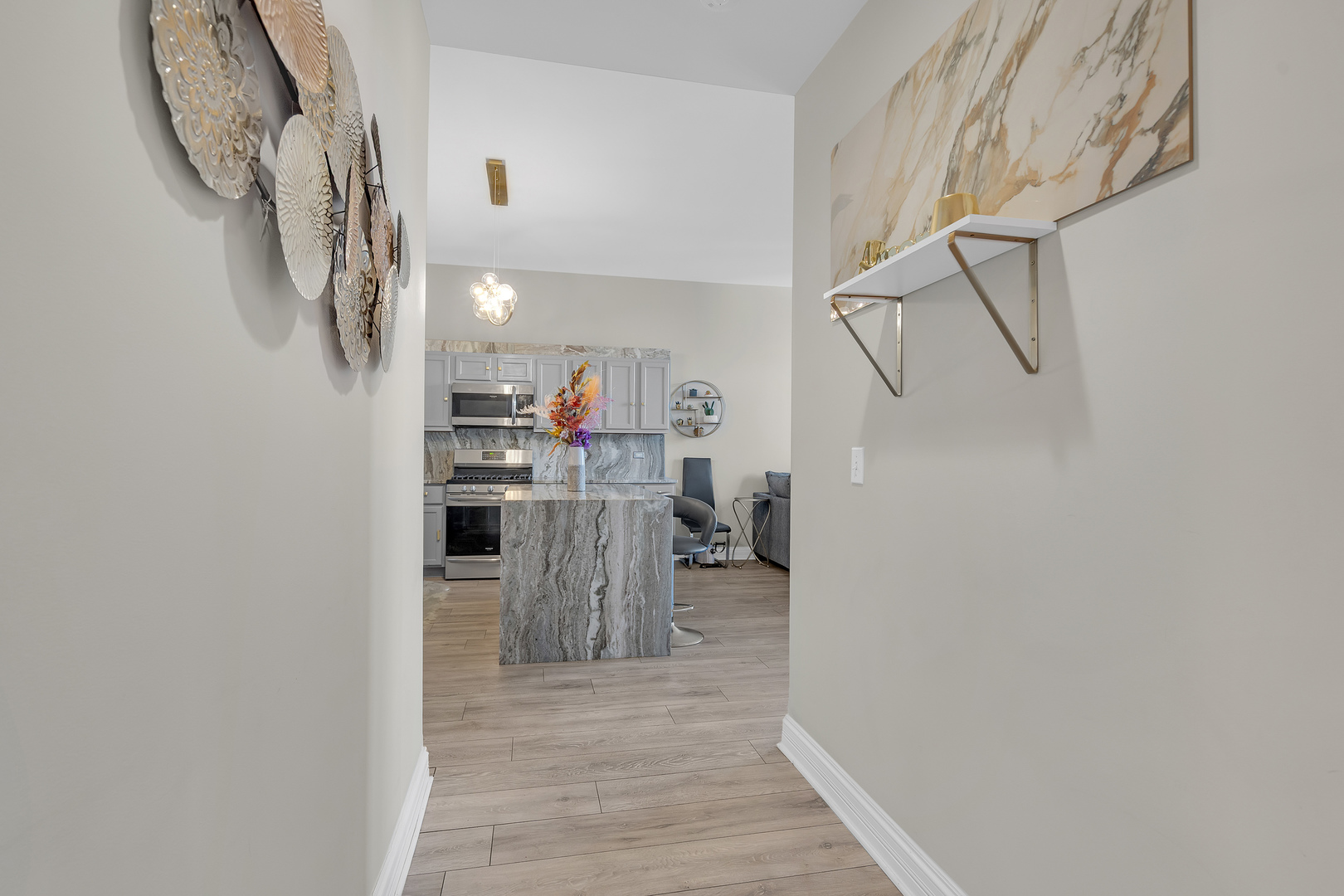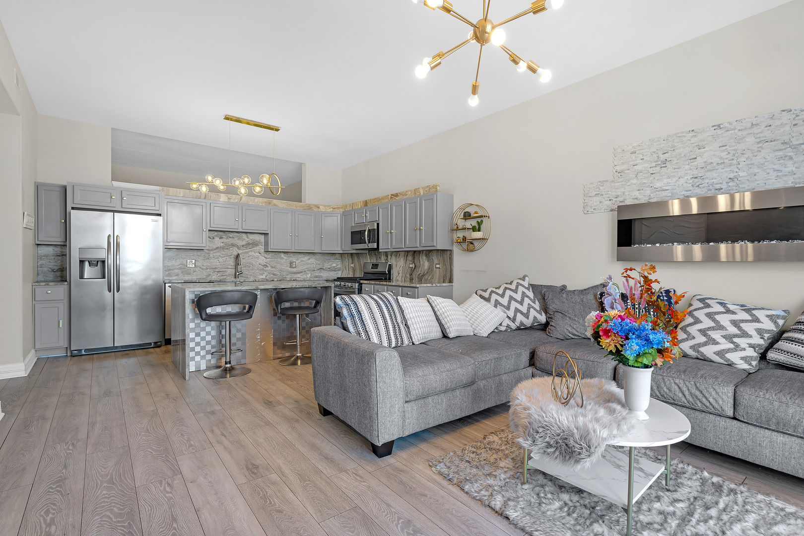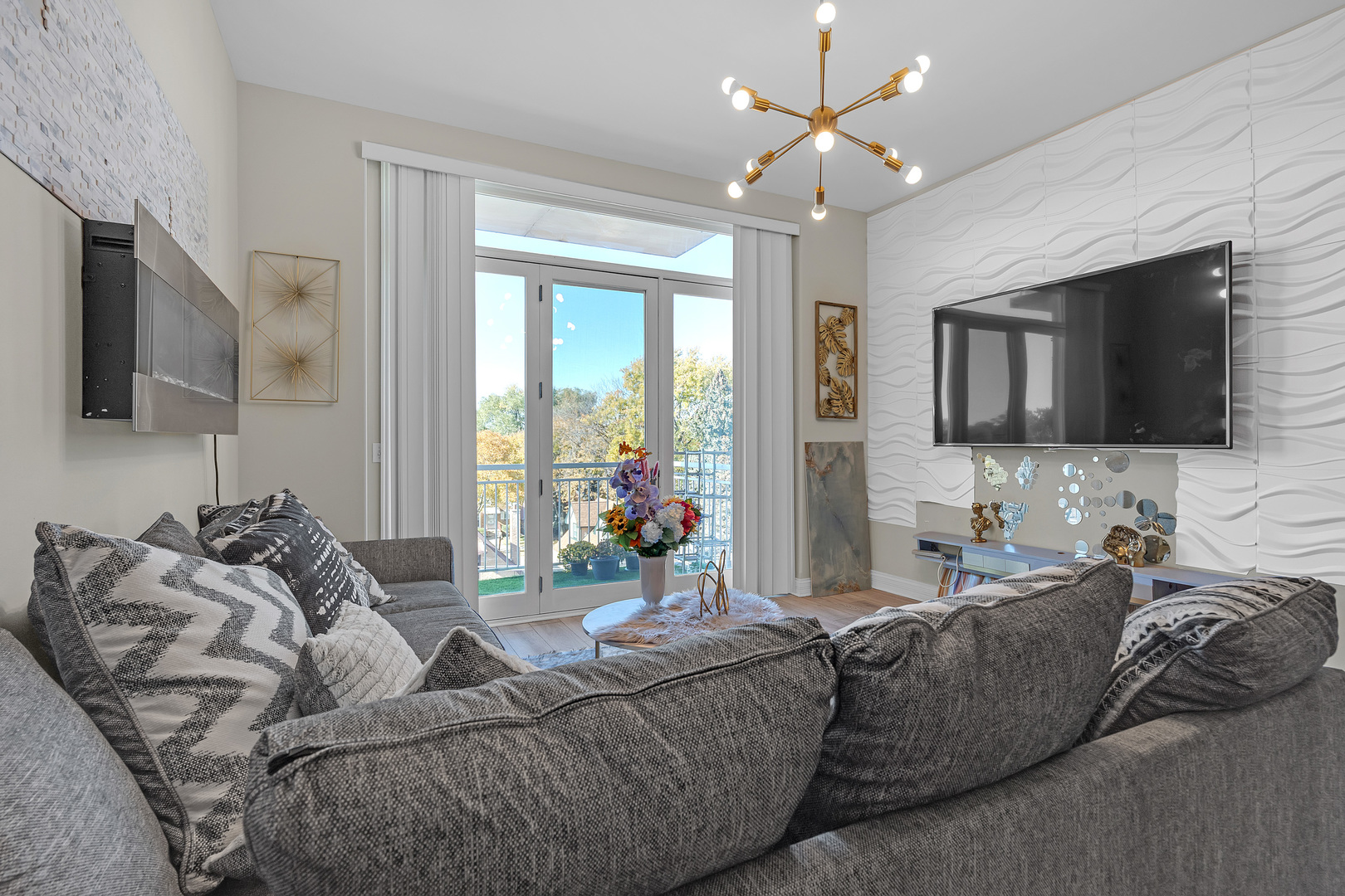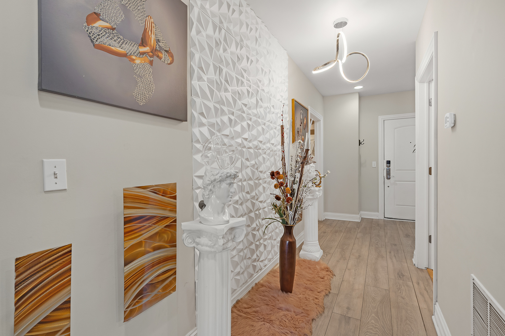 This beautiful and spacious modern condo unit features three bedrooms and two full baths, along with two balconies. The unit boasts 10-foot ceilings and comes with a new in-unit washer and dryer. The custom-made kitchen is stunning, featuring stainless steel appliances, brand new cabinets, and an abundance of granite countertops. The kitchen flows perfectly into the living room, which includes a beautiful modern electric fireplace, creating a warm and comfortable area that seamlessly connects the two spaces. The master bedroom includes an en suite bathroom and a walk-in closet, providing ample storage space. The unit has been professionally and custom painted, showcasing amazing home decor throughout, incorporated into the walls and trim. It truly reflects pride of ownership. Additionally, the unit comes with optional living room furniture, including a couch and bedroom furniture, as well as a TV. Features also include a new roof installed in 2025. The complex offers 24-hour camera surveillance, two elevators, an exercise room, a loading dock for moving, a heated garage, and an assigned parking space (#39) along with a storage space (#40). It is conveniently located near shopping centers, forest preserves, O’Hare Airport, fashion outlets, the hip, Amazon Fresh Market, public transportation, schools, and entertainment options. This is a must-see!