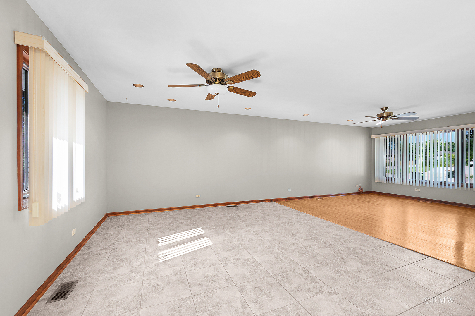Single level living at its finest! Expansive 3-4BR, 1.1 BA ranch with finished full basement and large fenced yard. Open and airy floorplan with loads of windows and space for and entertaining. Hardwood flooring in living room, hallway and all 3 bedrooms. Kitchen with granite countertops and stainless appliances including Maytag refrig and stove with Bosch dishwasher. All BRs equipped with Pella windows with interior blinds, ceiling fans with lights, closets with mirrored closet doors, adjustable organizers. Finished full basement with possible 4th BR. Laundry /utility room with double basin utility sink, cabinets and countertop for folding. Newer high efficiency furnace. Brick and PVC coated vinyl maintenance free exterior. Additional insulation added. Expanded 2-1/2+ insulated, heated garage for all your cars and toys. Excellent location. Walk to schools and parks. Near loads of shopping and minutes to Woodfield Mall, restaurants and expressways.