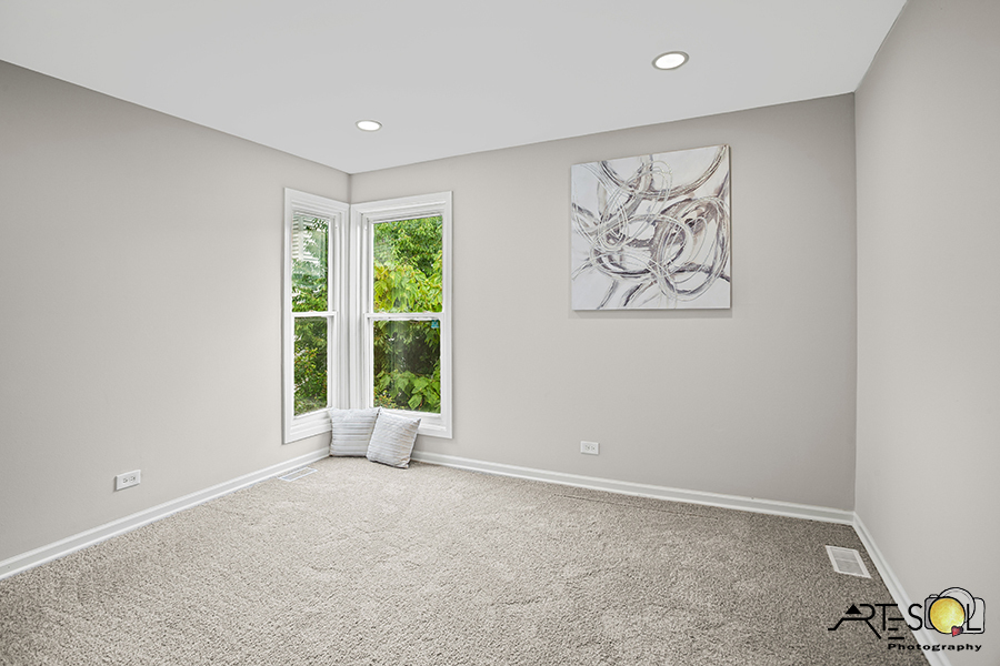 Move-in ready one of a kind corner unit, private entry townhome with a bigger footprint than some single-family homes in a quiet tree-lined community. Completely updated, full of natural light and open concept floor plan allows for comfortable family living and easy entertainment during the holidays. Main floor features open concept kitchen with white cabinets, brand new appliances, quartz countertops and free-standing sit around island for additional sitting area or counter space. Kitchen opens to the living room featuring a gas fireplace and dining room features sliding door out unto a private patio. Main floor also has access to the attached garage and fully updated half bath. Step upstairs and find 3 spacious bedrooms with an updated double vanity bathroom. Master bedroom features built in closet storage. Two additional bedrooms have very spacious closets. For additional comfort there is huge walk-in closet off the hall with built in high end custom closet storage solution. Fully finished basement with another full updated bath and wine wet bar area provides an alternate entertainment option on those rainy or cold days. Very easy showing, painted throughout, new floors throughout, updated throughout. New mechanicals. This townhome is located steps from the community pool and clubhouse. Plenty of guest parking in addition to the attached garage. Tucked away in a serene community but only steps to shopping and transportation. Excellent schools.
