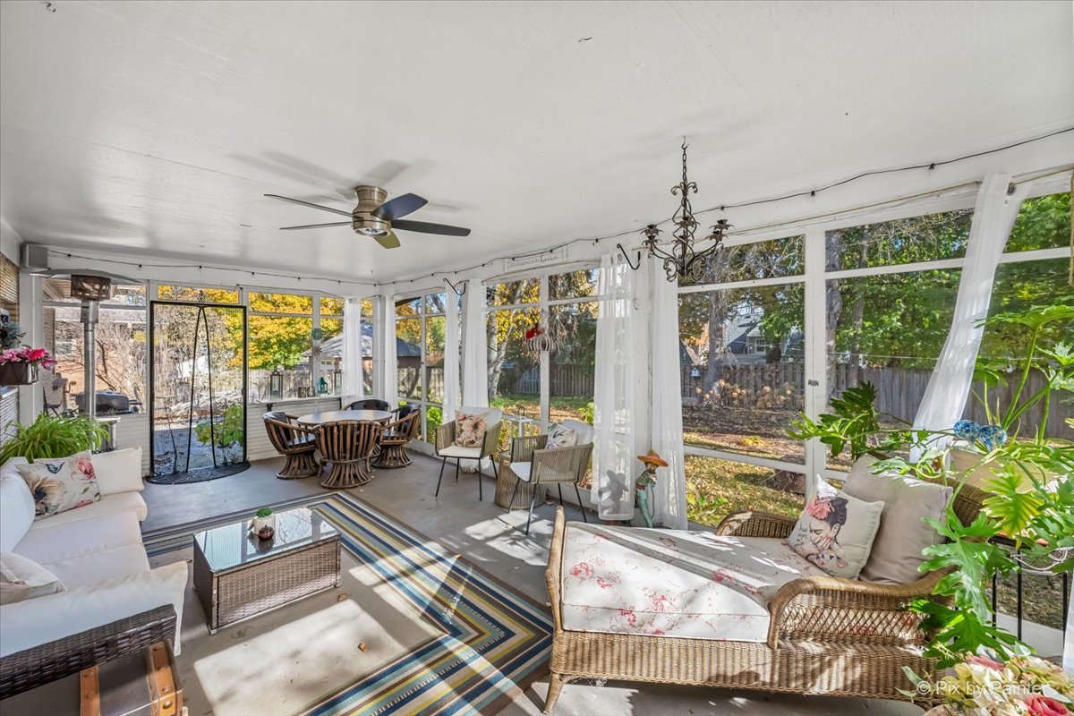 Welcome to this beautifully maintained solid brick ranch home in Elgin, where classic charm meets flexible living. The light-filled interior, highlighted by large windows, offers an inviting open yet private floor plan with generous storage throughout. Featuring four total bedrooms, this home provides the versatile space today’s busy lifestyles need for comfortable living, a dedicated home office, and/or multigenerational arrangements. A major highlight of the home is the fully finished basement, complete with private bedroom, full bathroom, a sizable laundry area, and a spacious Family/Rec Room with second fireplace. This flexible area is ideal for holiday entertaining, in-law accommodations, overnight guests, a home office, or even potential rental income. On the main level, a welcoming wood-burning fireplace greets you in the open Living Room/Dining Room combo area on chilly Chicago days! Discover three spacious bedrooms featuring a highly desirable secondary bedroom with its own private entrance. This unique access is perfect for anyone who is employed remotely, runs a home business, or requires separate entry for deliveries, roommate, etc. The main floor also boasts a spacious sunroom directly accessible from Living Room area, offering a peaceful retreat for morning coffee, a quiet reading nook, a playroom, or additional entertaining space which connects to the expansive concrete patio and cedar deck. An ideal spot which can double as a mud room for pets and children alike! This gem is nestled on an incredibly charming street-the kind of tree-lined, picture-perfect block that evokes John Hughes film nostalgia, welcoming yet quietly captivating. Located in one of Elgin’s most beloved historic neighborhoods, which was recently selected for the 2025 Elgin Historic Home Tour, the property offers strong community appeal and unmatched convenience. Enjoy easy access to amenities and transportation options – Jane Addams expressway/I-90 – 2.9 mi; US 20/Lake St bypass, 1.6 mi; Two Metra stations. Plus a plethora of shopping and entertainment with many nearby golf courses, Randall Road shopping corridor, Downtown Elgin, Festival Park, Wing Park, 2 community pools, Lords Park Zoo, Gail Borden Public Library and much more! Additional advantages include no HOA fees, friendly neighbors, and the peace of mind of being Listing Agent Owned. This home truly checks all the boxes for buyers seeking space, versatility, character, and an unbeatable location. See the list of recent improvements then call to schedule your appointment to view this lovely home and be home by Christmas!