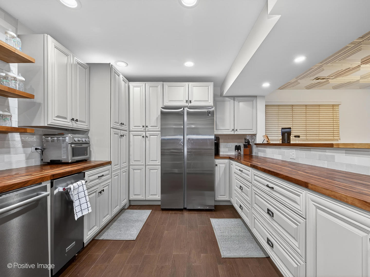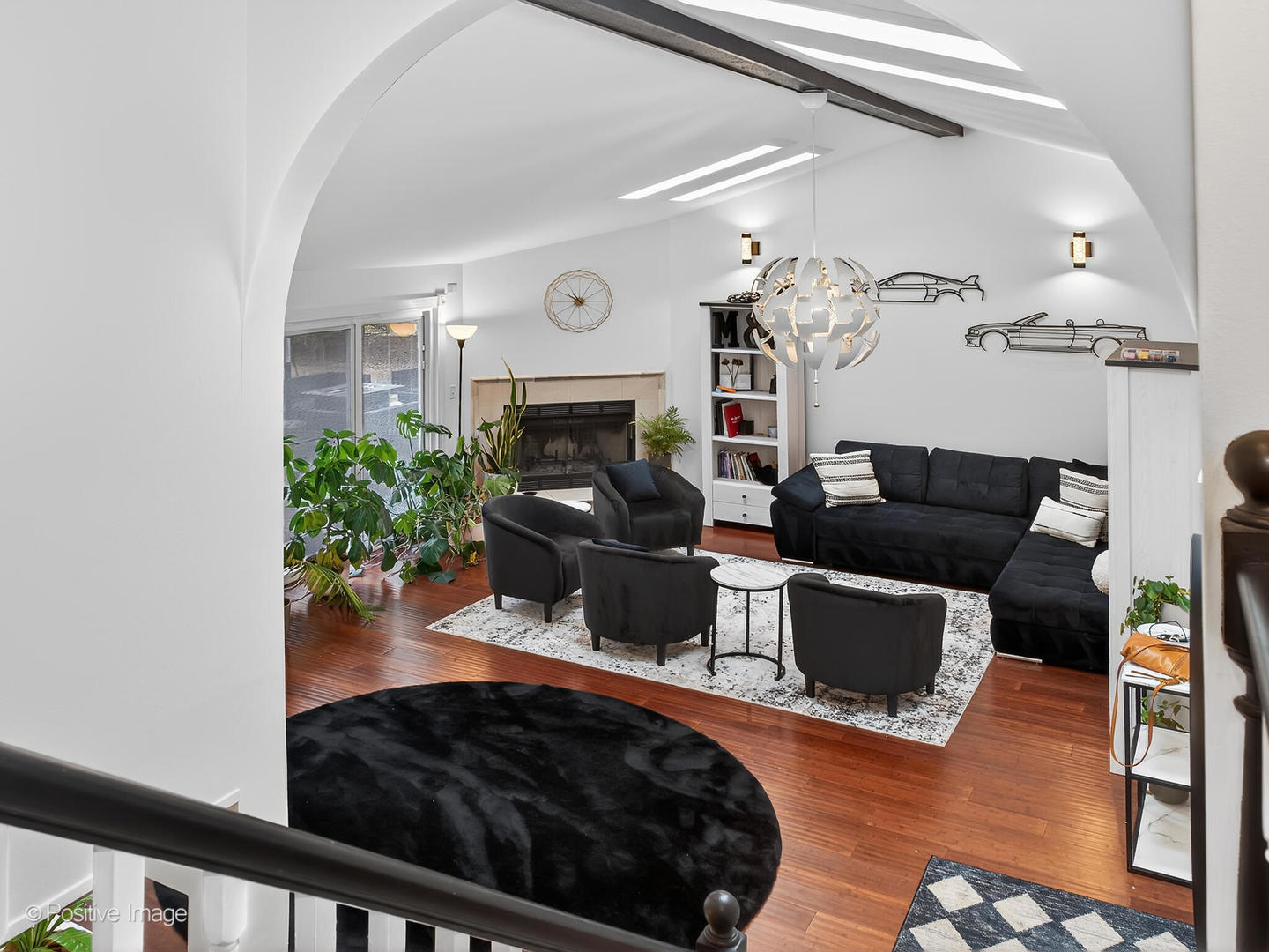 THIS IS THE ONE! Sprawling 1.3-acre property with 5 bedrooms and room for everyone. This tri-level home welcomes you with a charming foyer and a convenient mudroom entry from the 2-car garage. The light-filled living room features vaulted ceilings, skylights, bamboo flooring, a wood-burning fireplace, and sliding glass doors leading to the stamped concrete patio (2020) and expansive backyard. The lower-level kitchen was updated in 2022 and showcases walnut butcher block countertops, white subway tile backsplash, and newer stainless-steel appliances, including a double oven. Thoughtful details include a copper farmhouse sink, pot filler, and ice maker. The dining room flows seamlessly into the family room, highlighted by wood-look tile flooring, a gas-start fireplace, and a coffered ceiling. Tucked behind a hidden bookshelf door is the 5th bedroom with tile flooring. A large laundry room with utility sink and a half bath complete this level. Upstairs, the primary bedroom offers sweeping views of the expansive deck and a large walk-in closet. The primary bath includes a shower/tub combination. The open loft enhances the airy floor plan and is joined by three additional generously sized bedrooms and a full bath with double sinks. Outside, you’ll find a large 195 SF barn for equipment storage plus three additional sheds. The backyard is truly exceptional-perfect for entertaining, relaxing, and enjoying wide-open space. Schedule your showing today!