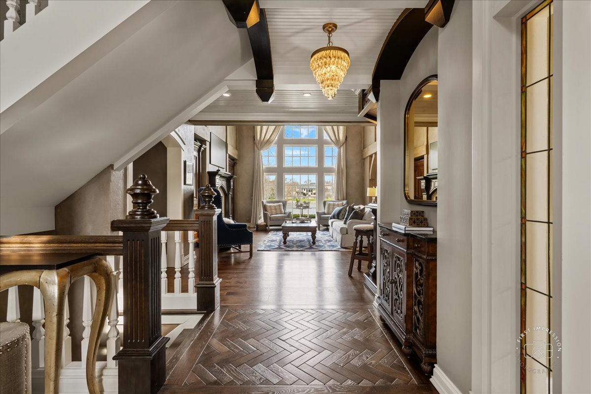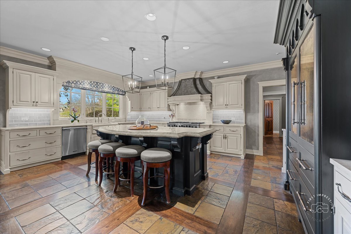 Welcome to one of the most distinguished homes in the prestigious Crane Road Estates, where timeless architecture, unrivaled craftsmanship, and luxurious amenities come together to create an extraordinary living experience. Custom built by Avondale Homes as the builder’s own residence, this 8,800+ square foot masterpiece leaves no detail overlooked. From the moment you enter the grand foyer, you’ll be captivated by the home’s refined character-intricate millwork, arched entryways, beamed ceilings, and stunning stained glass accents echo the artistry found throughout. The formal living room and executive office set a sophisticated tone, while the flowing layout reveals thoughtfully designed spaces perfect for both daily living and elegant entertaining. The gourmet chef’s kitchen is a culinary dream, featuring a professional Viking range, two dishwashers, a generous walk-in pantry, and seamless connection to the inviting family room-complete with a striking built-in bar. A spectacular sunroom offers panoramic views of the meticulously landscaped grounds, designed by Scentimental Gardens, and opens to expansive patios overlooking peaceful water vistas and tranquil gardens. The sought-after first-floor primary suite offers a serene retreat with dual walk-in closets and a luxurious spa-inspired bathroom. Upstairs, each bedroom enjoys its own en-suite bath and convenient access to a versatile bonus room-ideal for a playroom, study space, or second office. The finished lower level is an entertainer’s paradise, boasting a home theater, wine cellar, full second kitchen, and additional laundry area. A stately circular driveway and three-car garage complete the home’s impressive exterior. From its striking design to its unmatched attention to detail, this residence is truly one of the Fox Valley’s finest offerings-a rare opportunity to own a home of such exceptional caliber.