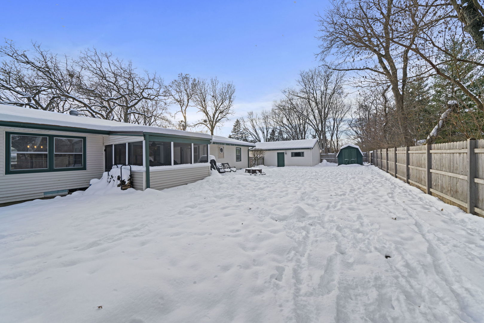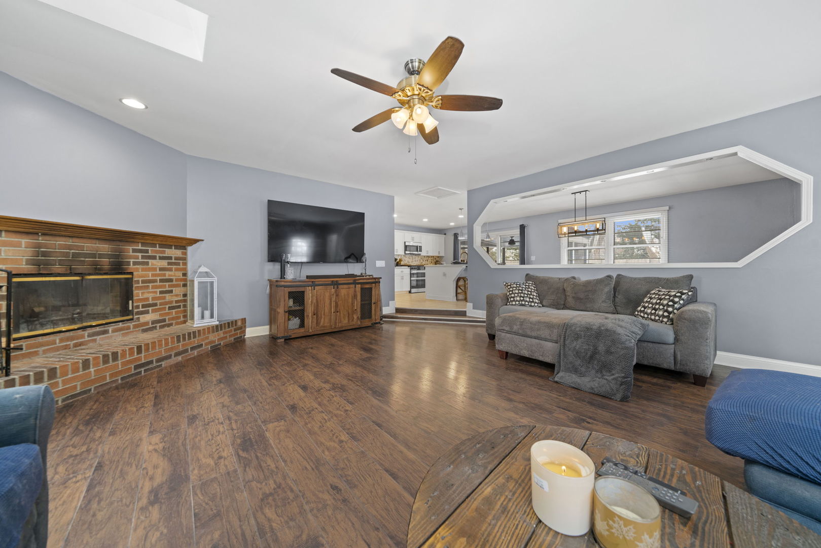 Welcome to this beautifully updated ranch offering comfort, style, and space in a desirable neighborhood setting. Step through the new front door into are modeled foyer that flows seamlessly into a spacious living room featuring custom built ins and an updated wood burning fireplace, perfect for cozy evenings. Throughout the home, you’ll find gleaming hardwood floors, including all three bedrooms. The large master suite boasts a full bath with a walk in shower, while the modern kitchen impresses with abundant cabinetry, a large island, and newer stainless steel appliances (oven 2025). Just off the kitchen, a generous dining area is ideal for family gatherings, and the expansive family room offers a second wood burning fireplace for added warmth and charm. Enjoy outdoor living with a fenced backyard, a three season screened porch, and an oversized deck (redone in 2024). The basement provides ample storage, a rec area, and a flex space that can serve as a home office or 4th bedroom. Close to shopping, dining, and amenities while maintaining a true neighborhood feel. This home is move in ready and waiting for you!