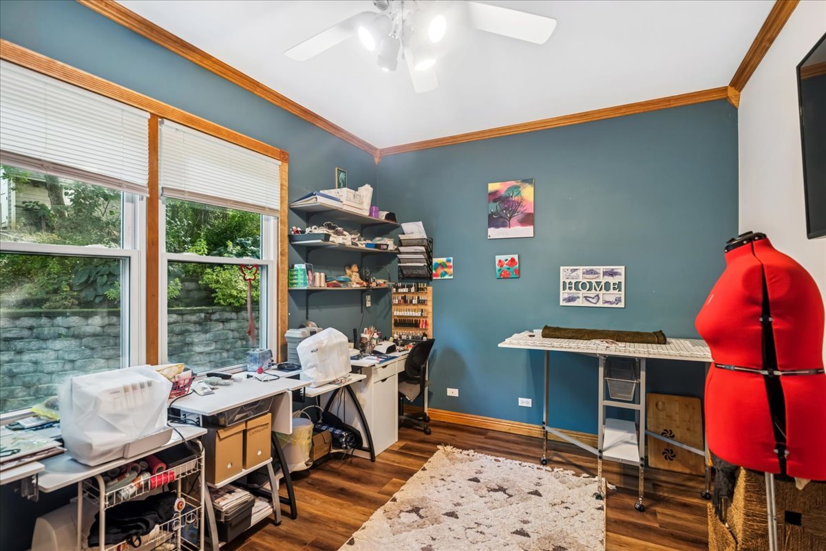 WOW! Spacious & Stunning 2,360 sq ft, 5 bedroom / 3.5 bath home just minutes from the Chain available NOW! Boasting 2,360 sq ft above grade, & not including the mostly finished basement, this home has the features & improvements you’re looking for! Wood flooring on most of the main level. Zoned HVAC! Living room w/ dramatic barn slider doors making the perfect 1st floor office. Large formal dining off the kitchen. Bright family room leading from the kitchen w/ beautiful crown molding, fireplace & in-ceiling speakers. Large eat-in kitchen featuring lot’s of cabinetry & counter space, countertop overhang w/ seating for 4 & an amazing view from the breakfast room of the stunning grounds outside! Main level 5th bedroom, too, w/ newly installed luxury vinyl flooring. Primary retreat is grand, featuring a luxurious bath w/ gorgeous oversized tumble stone look tile composing the oversized shower & 2 person tub surround, as well as wood plank porcelain floor tile, two sinks w/ a bank of drawers in vanity & framed medicine cabinet mirrors. Primary walk in closet is finished w/ stunning closet organization. Bedroom 2 & 3 w/ closet organization & bedroom 4 featuring newly installed luxury vinyl tile. Guest bathroom is freshly painted & features a jetted tub, dark shaker vanity & contrasting dark tile w/ listel border & niche in shower! Mostly finished basement w/ bar, amazing 3rd full bath, huge rec room, gym, laundry & plentiful storage! HEATED 3 car garage with room for your toys & more! Spacious double lot offers a fenced in backyard retreat, incl a paver patio, putting green, fenced in dog run, firepit, 2 sheds & lot’s of room to roam! Improvements: Furnace 1 2020, Furnace 2 2021, TANKLESS Hot Water Tank 2023, New gutters 2022, 2nd fl A/C 2021, New disposal, New GE Top Control Dishwasher 2025, New Sump Pump 2024, Whole house water conditioning system w/ lifetime warranty 2023, New 2 car garage door & MyQ Opener 2022! Take a tour today!