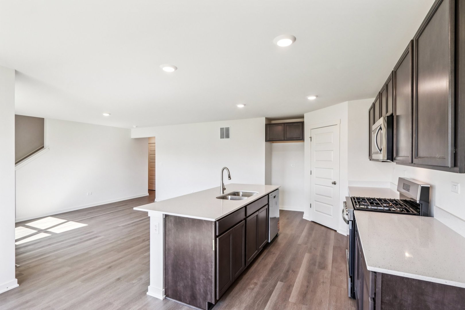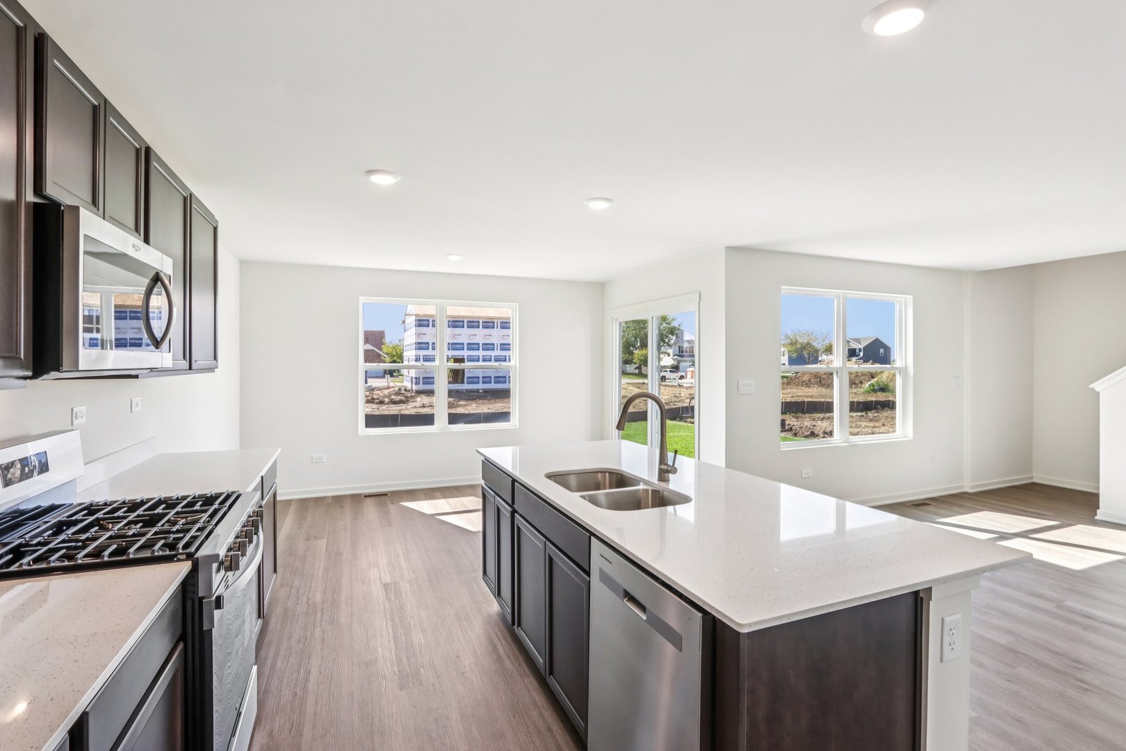 Introducing the Bradley plan, one of our single-family plans at Cedar Creek in Joliet, IL. This home at 3705 Stockton Drive is situated on a spacious home site, providing plenty of room for outdoor enjoyment ready for an immediate move-in! Step inside this 1,663 square foot home with 3 bedrooms, 2.5 baths, a 2-car garage and smart home technology. Entering the foyer, you will first pass the powder-room and then walk into the main level living space. The living area is open concept, with your bump out dining area, a living room, and kitchen blend together seamlessly. The kitchen shows off beautiful cabinetry, a pantry, and an island with ample seating space that looks out to the living room. This layout is great for entertaining family and friends. Upstairs, you’ll find a loft which is perfect as a home office or study space! Your primary bedroom features a deluxe bath with ample storage in the walk-in closet, and a dual sink vanity. 2 additional bedrooms with closets, a second bath, linen closet, and a convenient upstairs laundry room complete the rest of the second floor. All Chicago homes include our America’s Smart Home Technology, featuring a smart video doorbell, smart Honeywell thermostat, smart door lock, Deako smart light switches and more. Photos are of actual home.