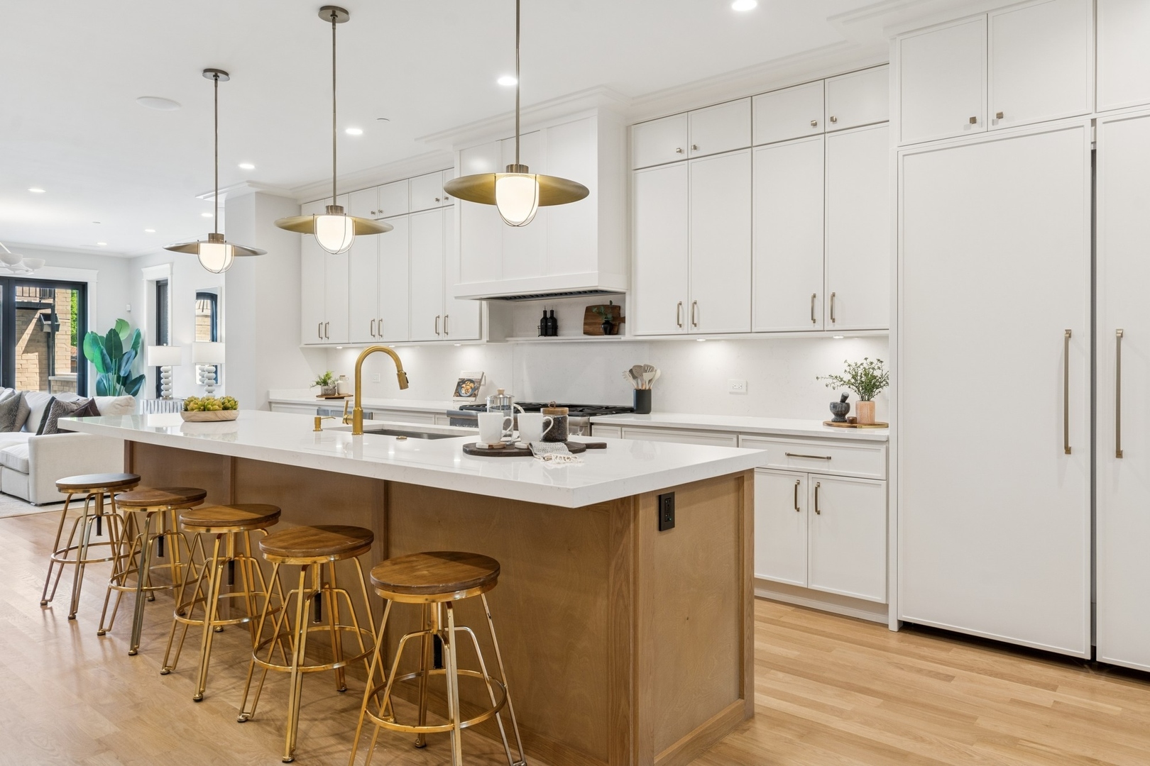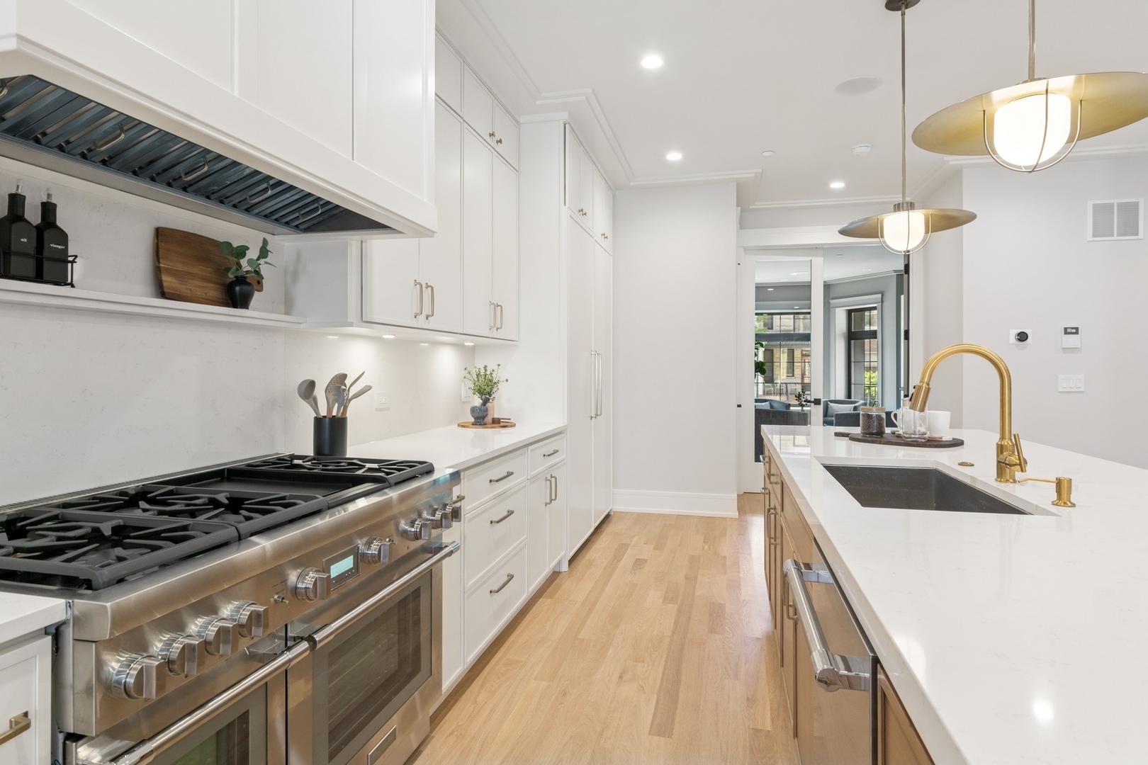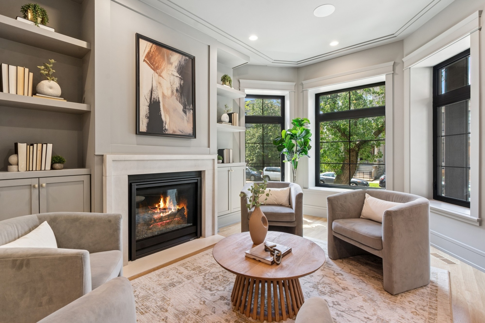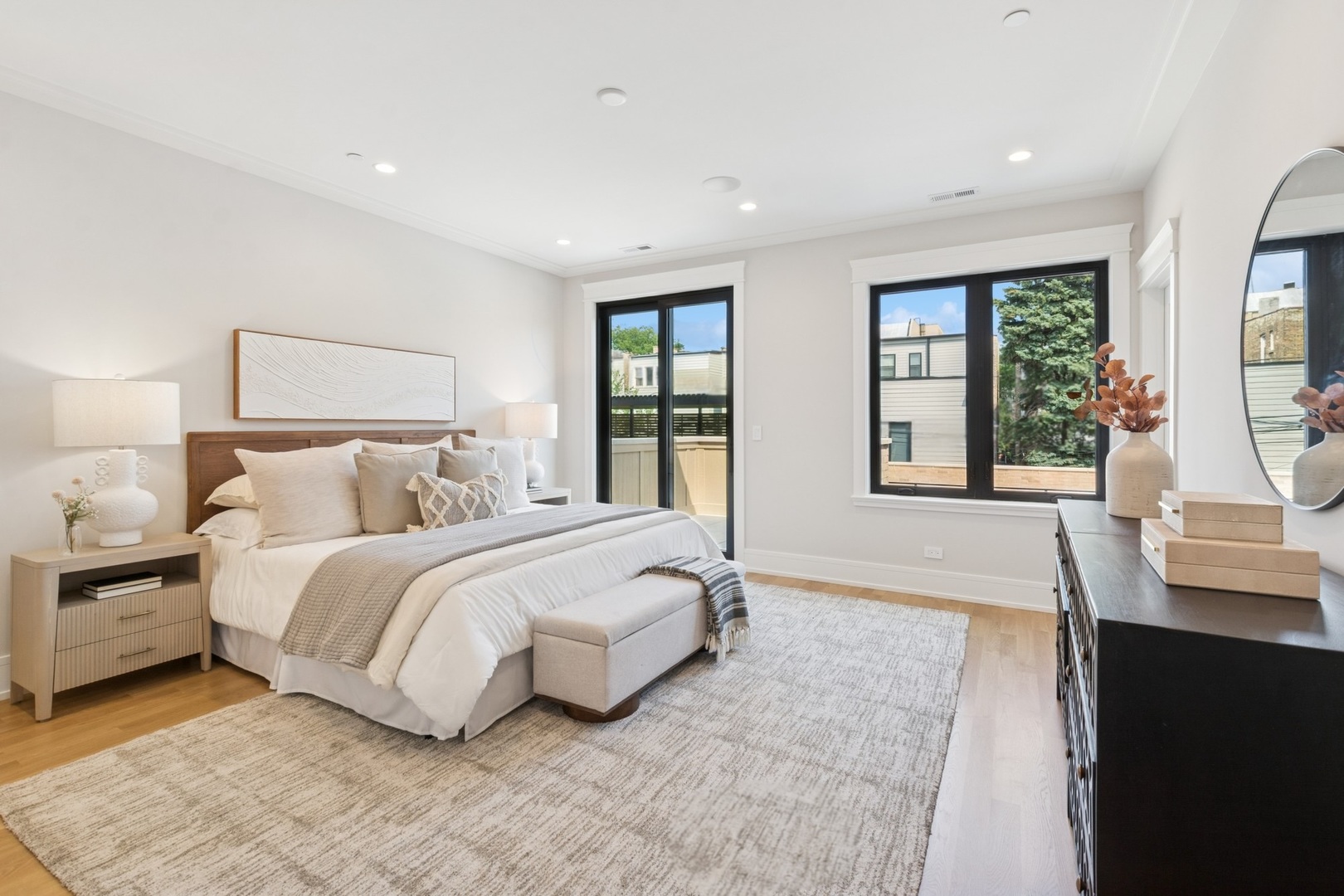 Experience city living at its finest in this remarkable, newly renovated, and expanded luxury residence, featuring 6 bedrooms, 6.5-baths, and 5,400+ SF of refined, professionally designed interiors, plus 2,000 SF of unmatched outdoor space spread across 4 private areas. Situated on a 30′ wide lot along picturesque Magnolia Ave, this stunning greystone showcases truly superb craftsmanship and exudes luxury at every turn. Striking facade w/broad limestone steps leads into a beautiful marble foyer complimented by antique mirror, accent panel wall, and elegant bronze chandelier. Formal living room sets warm inviting tone w/limestone fireplace framed by built-in floating shelves and flooded w/sunlight through oversized French windows. The heart of home is gourmet kitchen designed w/custom shaker-style cabinetry and paired w/massive Calacatta quartz island, gleaming brass pendants, and top-of-the-line smart Thermador appliances. Perfectly suited for both intimate and grand-scale gatherings, the open layout flows seamlessly from expansive kitchen and dining into spacious family room adorned w/arched custom built-ins and a fireplace connecting to outdoors for alfresco dining on a heated raised patio or further to the garage roof deck for entertaining. Designed with intention, this floor includes a built-out mudroom w/direct access to the heated garage, a stylish powder room wrapped in opulent wallcoverings, and a practical walk-in pantry for added storage. Second level offers 4 bedrooms/3 baths, including serene primary suite w/balcony, dual walk-in closets, Kohler spa-like bath w/custom white oak vanity, steam & rain shower, floating soaking tub, water closet, and porcelain checkerboard floors. Laundry room completes this level for convenience. Penthouse floor unveils versatile lounge w/kitchenette, wine cellar, and spa-like bath. It opens to a spectacular 800 SF terrace w/sweeping city views. The 9-foot deep lower level w/heated LVT floors expands w/2 additional bedrooms, 2 full baths, a second laundry, a cozy media room w/built-ins, fireplace, and a wet bar-perfect for guests, in-laws, or au pair living. Additional highlights include white oak flooring across three levels, all radiant heat baths, full smart-home AV automation w/intercom/surround sound & security system w/cameras, snow-melt on front steps & patio, and a newly built brick 3-car garage w/dual EV chargers. Situated in coveted Blaine School District, steps from Southport Corridor dining, boutiques, cafes, and iconic Wrigley Field. This exceptional-quality home in a stellar location is a rare offering poised to preserve and grow its value for generations to come.