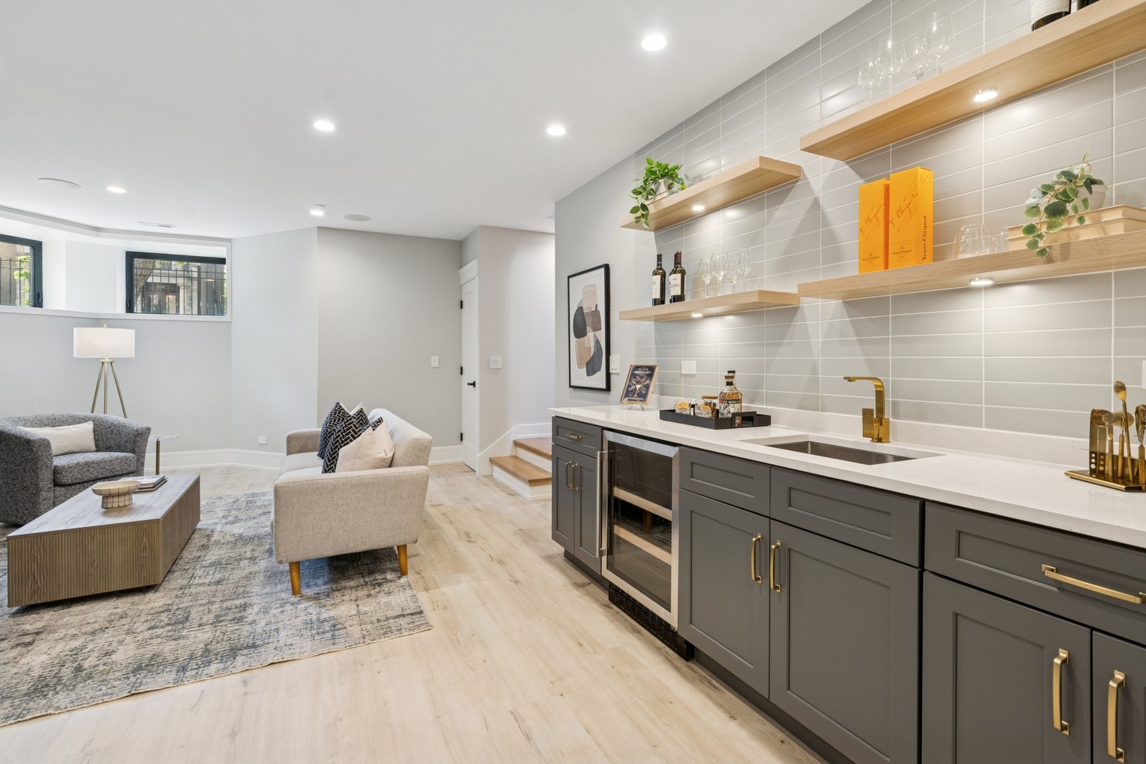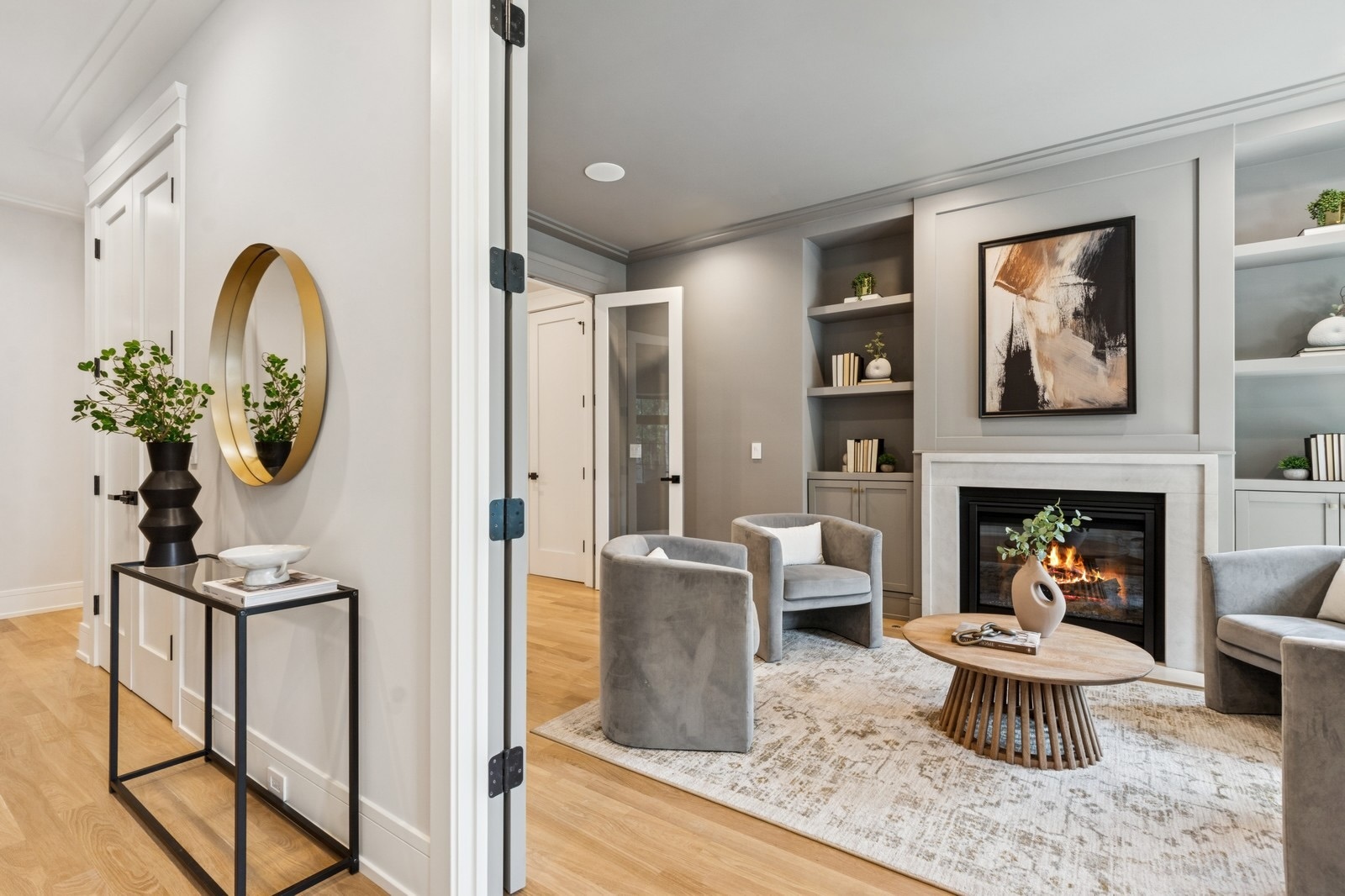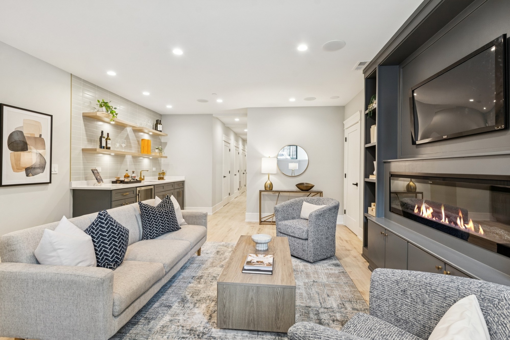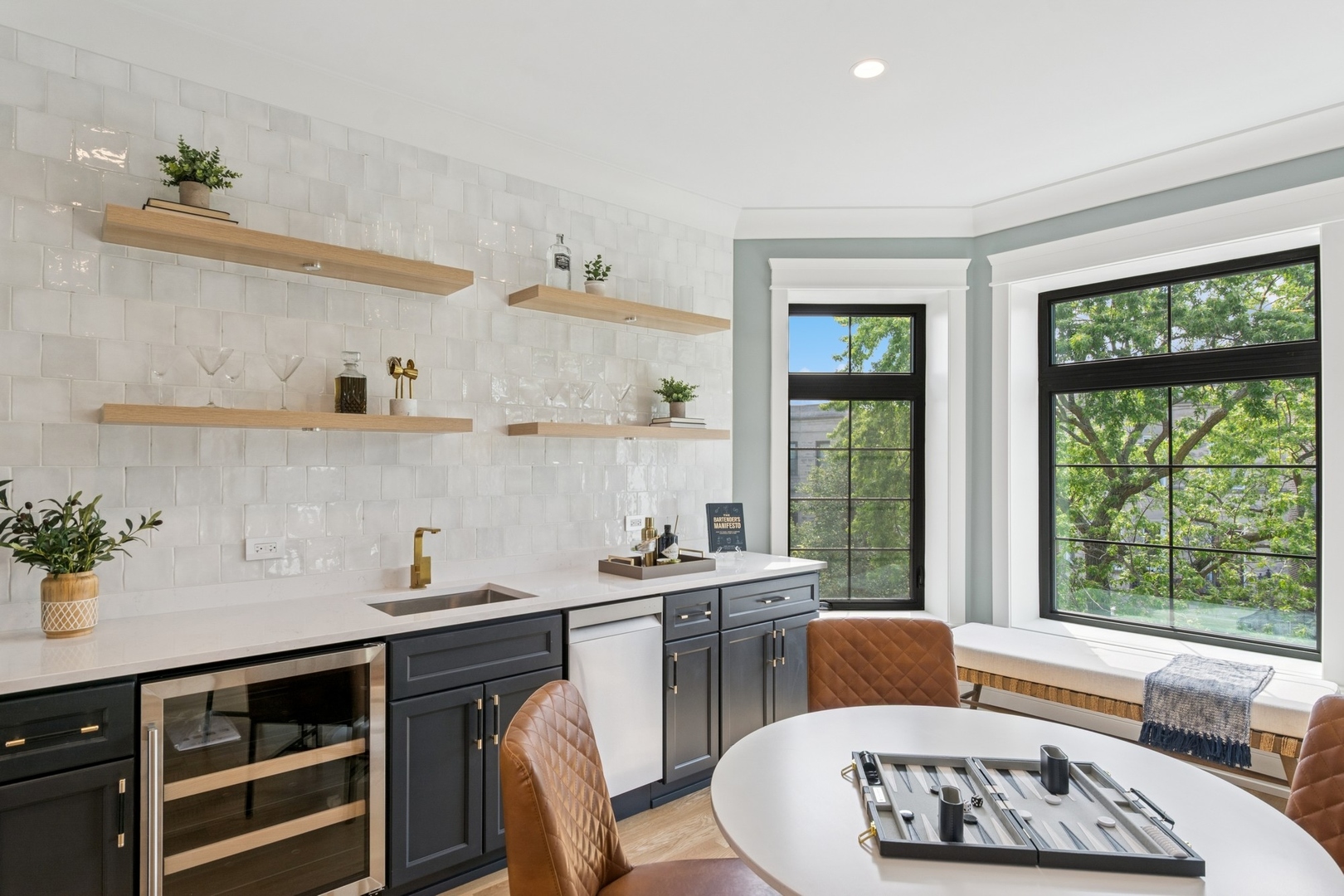 Experience city living at its finest in this remarkable, newly renovated, and expanded luxury residence, featuring 6 bedrooms, 6.5-baths, and 5,400+ SF of refined, professionally designed interiors, plus 2,000 SF of unmatched outdoor space spread across 4 private areas. Situated on a 30′ wide lot along picturesque Magnolia Ave, this stunning greystone showcases truly superb craftsmanship and exudes luxury at every turn. Striking facade w/broad limestone steps leads into a beautiful marble foyer complimented by antique mirror, accent panel wall, and elegant bronze chandelier. Formal living room sets warm inviting tone w/limestone fireplace framed by built-in floating shelves and flooded w/sunlight through oversized French windows. The heart of home is gourmet kitchen designed w/custom shaker-style cabinetry and paired w/massive Calacatta quartz island, gleaming brass pendants, and top-of-the-line smart Thermador appliances. Perfectly suited for both intimate and grand-scale gatherings, the open layout flows seamlessly from expansive kitchen and dining into spacious family room adorned w/arched custom built-ins and a fireplace connecting to outdoors for alfresco dining on a heated raised patio or further to the garage roof deck for entertaining. Designed with intention, this floor includes a built-out mudroom w/direct access to the heated garage, a stylish powder room wrapped in opulent wallcoverings, and a practical walk-in pantry for added storage. Second level offers 4 bedrooms/3 baths, including serene primary suite w/balcony, dual walk-in closets, Kohler spa-like bath w/custom white oak vanity, steam & rain shower, floating soaking tub, water closet, and porcelain checkerboard floors. Laundry room completes this level for convenience. Penthouse floor unveils versatile lounge w/kitchenette, wine cellar, and spa-like bath. It opens to a spectacular 800 SF terrace w/sweeping city views. The 9-foot deep lower level w/heated LVT floors expands w/2 additional bedrooms, 2 full baths, a second laundry, a cozy media room w/built-ins, fireplace, and a wet bar-perfect for guests, in-laws, or au pair living. Additional highlights include white oak flooring across three levels, all radiant heat baths, full smart-home AV automation w/intercom/surround sound & security system w/cameras, snow-melt on front steps & patio, and a newly built brick 3-car garage w/dual EV chargers. Situated in coveted Blaine School District, steps from Southport Corridor dining, boutiques, cafes, and iconic Wrigley Field. This exceptional-quality home in a stellar location is a rare offering poised to preserve and grow its value for generations to come.