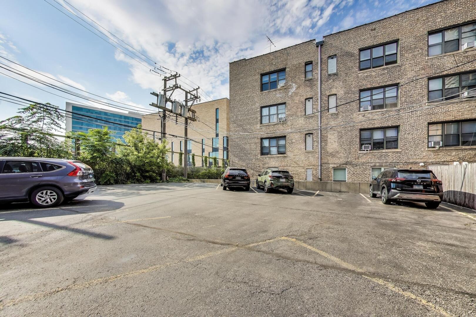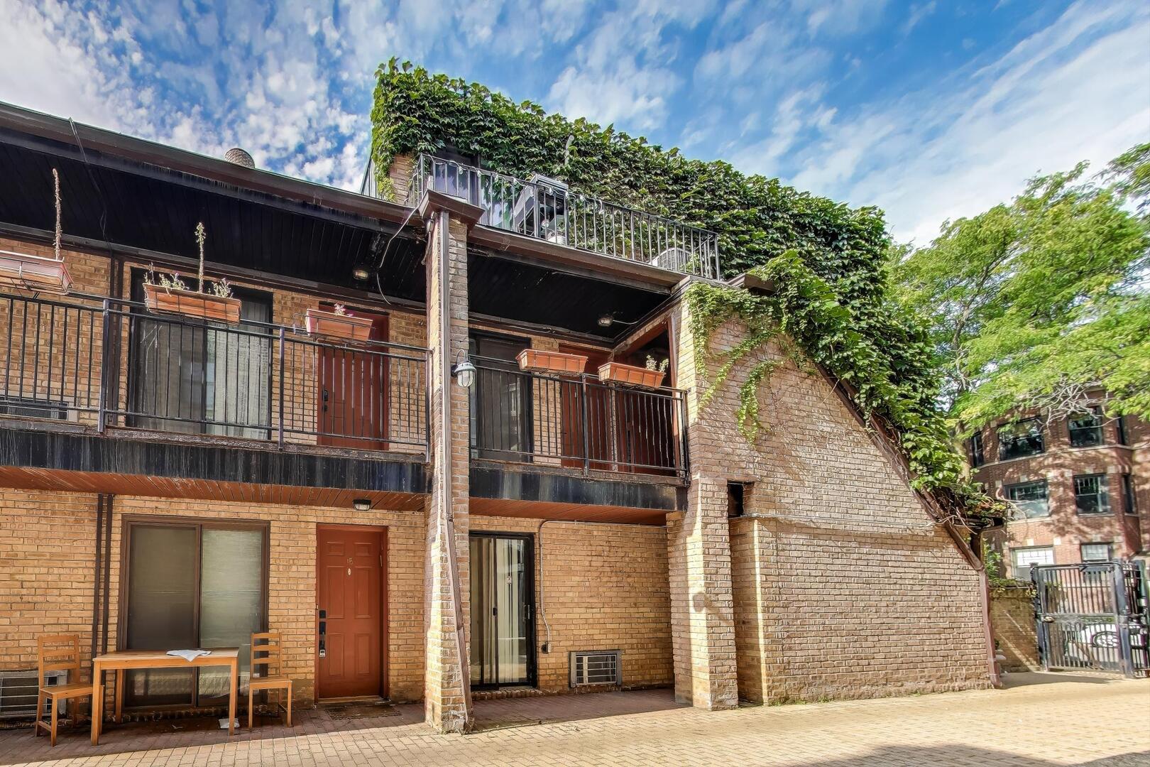 Rarely available East Lakeview 2 bed 1.5 bath duplex up with exterior gated parking included! Step into your updated eat in kitchen w/ refinished white cabinetry, stainless steel appliances including a new Samsung refrigerator, natural stone counter tops, & an abundance of storage. The open living area right off the kitchen showcases refinished hardwood floors, an electric fireplace with exposed brick, designer lighting, and a wall of sliding glass doors that fill the space with natural light. Perfectly situated powder room on the main level between the kitchen and living space. The 2nd level includes two bedrooms with hardwood flooring throughout, convenient side-by-side laundry, and a full bath. The primary suite is bright with oversized windows and abundant closet space, while the second bedroom includes a walk-in closet and private balcony. Well-managed building with low assessments and utilities. Steps from the lakefront path, gyms, shopping, dining, and public transportation.