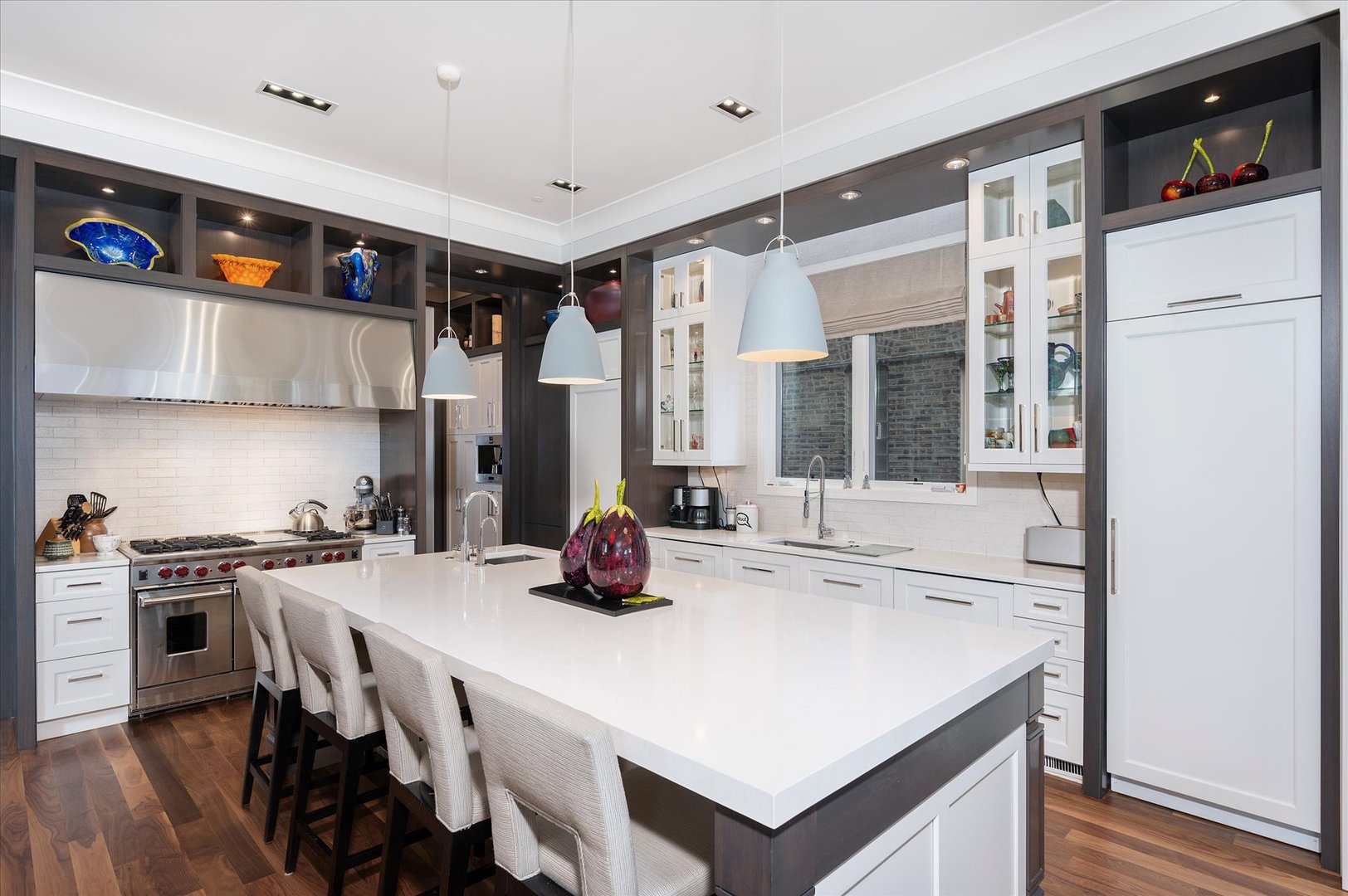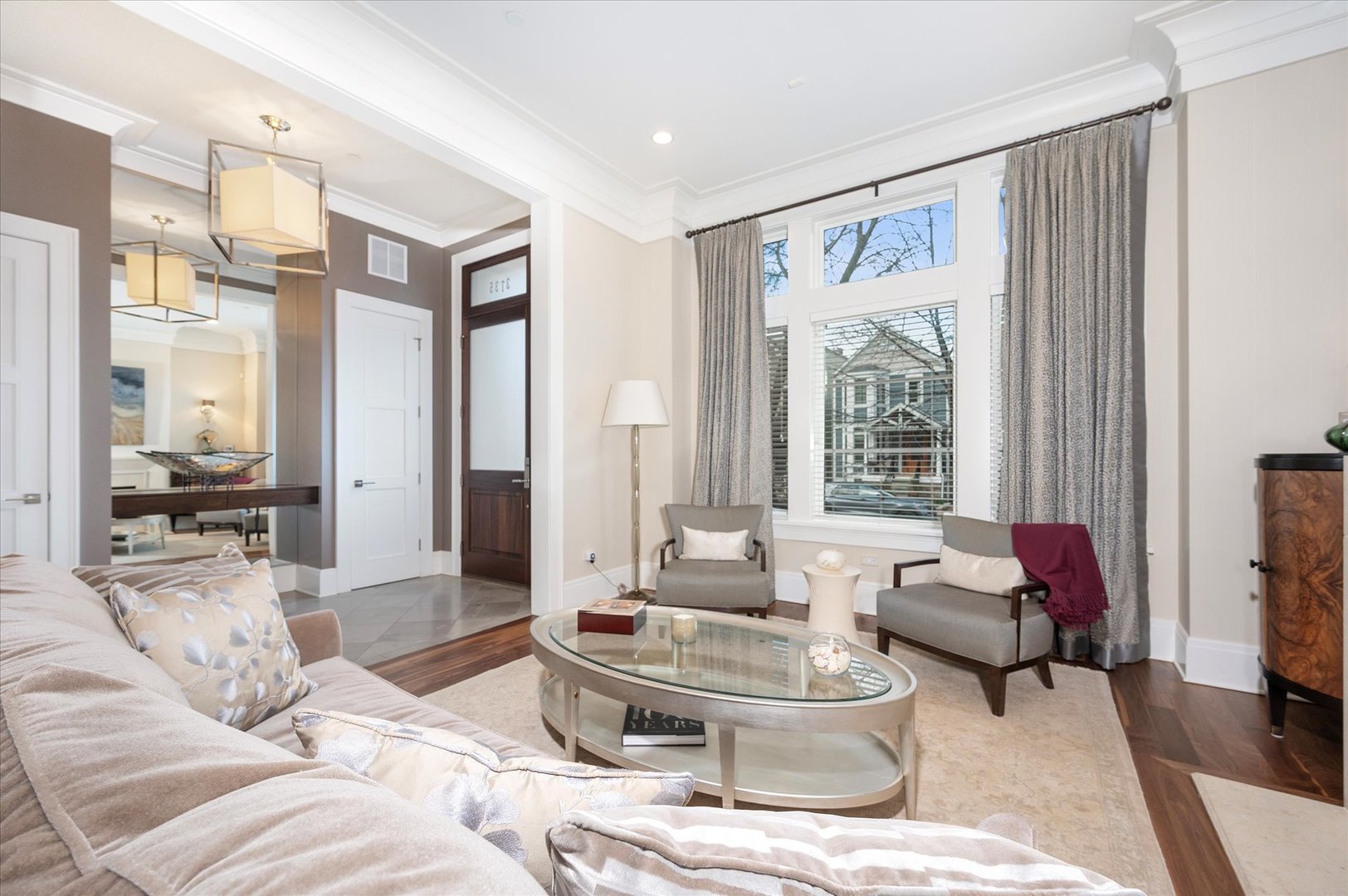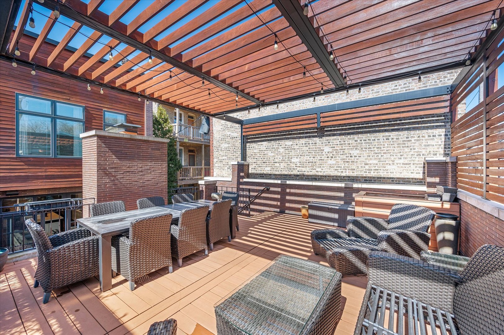An unbelievable and unmissable opportunity to purchase the 1st resale of this exquisite all brick single family home! Developed by the renowned and respected ‘ Savane Design & Build ‘ properties. Located in the sought-after Southport Corridor & Blaine School district on Greenview Ave. This stunning home, approx. 6000 sqft sits on an extra wide 30 x 125 ft lot. This gracious, beautiful and sophisticated 4 level home is sure to impress! Featuring 6 bedrooms, 4 full bathrooms & 3 half bathrooms + additional workout room / 7th bedroom. Oversized 3 car garage that is accessed from your attached & enclosed breezeway and mudroom. An entertainers dream with 3 outdoor spaces: A 18 x 15 raised private outdoor patio with fireplace just off the main family room, perfect for intimate family dinners. A 25 x 25 garage roof top deck, perfect for larger gatherings & parties with family and friends. A 37 x 23 roof top deck & terrace on the 3rd floor, enjoy long Spring & Summer nights with views of the city & neighborhood and the alluring sounds & cheers from our Cubbies at Wrigley Field. Upon entering, the formal living & dining rooms are grand and welcoming, with 11ft ceilings and tasteful decor, it already feels special. The kitchen is the heart of the home, and this one is a chef’s delight, with commercial grade appliances, Wolf, Sub-Zero & Bosch, the large island overlooks the tastefully built in breakfast banquette, the perfect spot to start your day. There is also a walk-in pantry, Butler’s pantry with wet bar & coffee station. The family room is huge and overs looks the raised patio, garage roof deck and leads to the breezeway and attached garage. The 2nd floor primary bedroom ensuite is a like a luxury retreat, with full steam oversized walk-in shower and a large soaking tub. The bedroom has ample space for the additional seating area, and two large walk-in closets. The 2nd bedroom is ensuite and perfect for guests. The 3rd & 4th bedrooms, a shared hallway bathroom and the laundry room are also on this level. The 3rd floor is currently a home office/den and could also be used as a media / entertaining space, there is a powder room and wet bar on this level, which lead us out to the magnificent roof top deck and terrace. In addition, we have a large 22 x 14 playroom/storage room. Retreat to the lower-level basement to find the 5th & 6th bedrooms with a shared hallway bathroom, the workout room which can also be an additional 7th bedroom / office, and additional storage rooms. To top it all off we have the custom-made wet bar and walk in wine cellar that overlook the recreation/movie/family room. There is radiant heat throughout the lower level for extra comfort. It is very clear that this 30 ft wide lot has been thoughtfully designed and built to maximize and utilize every inch of the home. This truly is an impeccably presented and immaculately maintained residence. Welcome home!