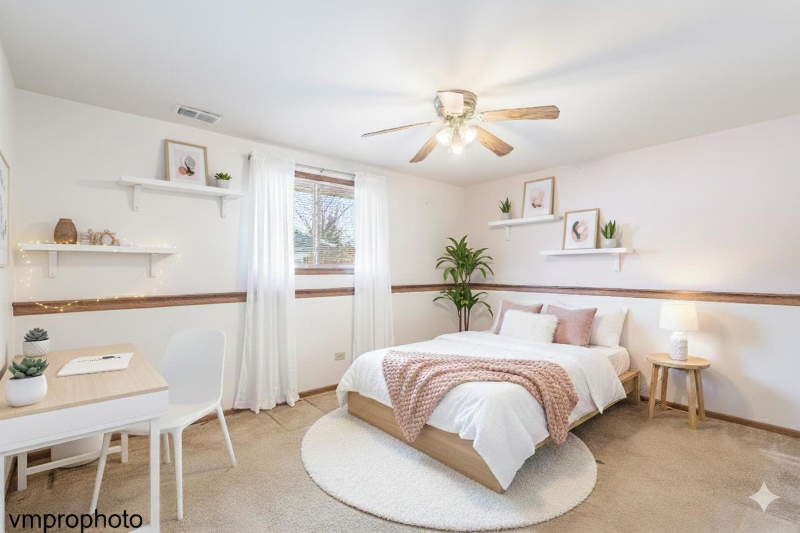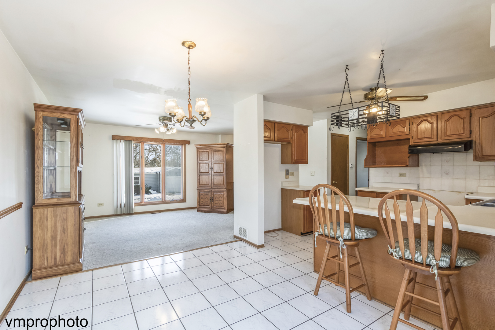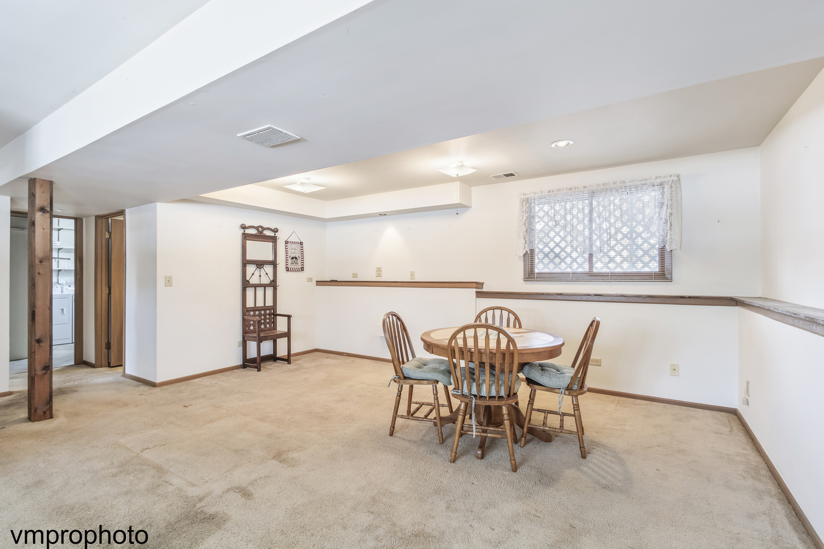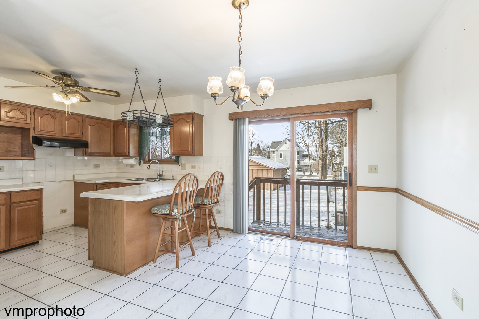 This is such a lovely and serene setting just steps away from access to Fox Lake. This spacious 3 bedroom raised ranch sits proudly on a corner lot with a great yard and raised garden beds with paver patio artfully placed between the gardens. ROOF – 3 YEARS OLD, HVAC – 3-4 YEARS OLD, DECK – 10 YEARS OLD, WELL PUMP – 10 YEARS OLD. Sun-drenched and roomy inside with a dining area with sliders to deck. Open Kitchen design with breakfast bar and spacious Living Room. The baths have newer counters and faucets and the Family Room offers fabulous space to spread out and plumbed for sink, Laundry Room has door to exterior access. The 2.5 car garage is heated and offers great space for the car buff or hobby person. This delightful neighborhood is sought after for the quiet ambience and park access to the lake. This home needs some TLC, but can be made a shiny penny!! Home being sold As-Is, hence the aggressive price. Rooms are virtually staged.