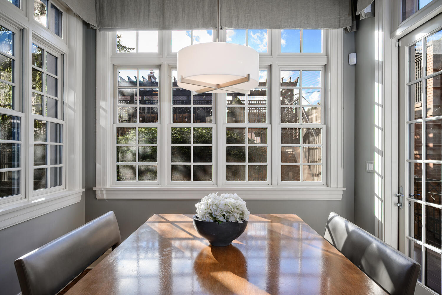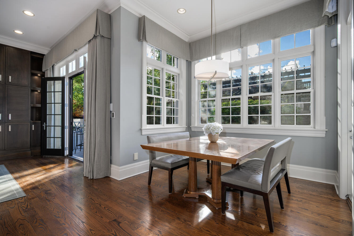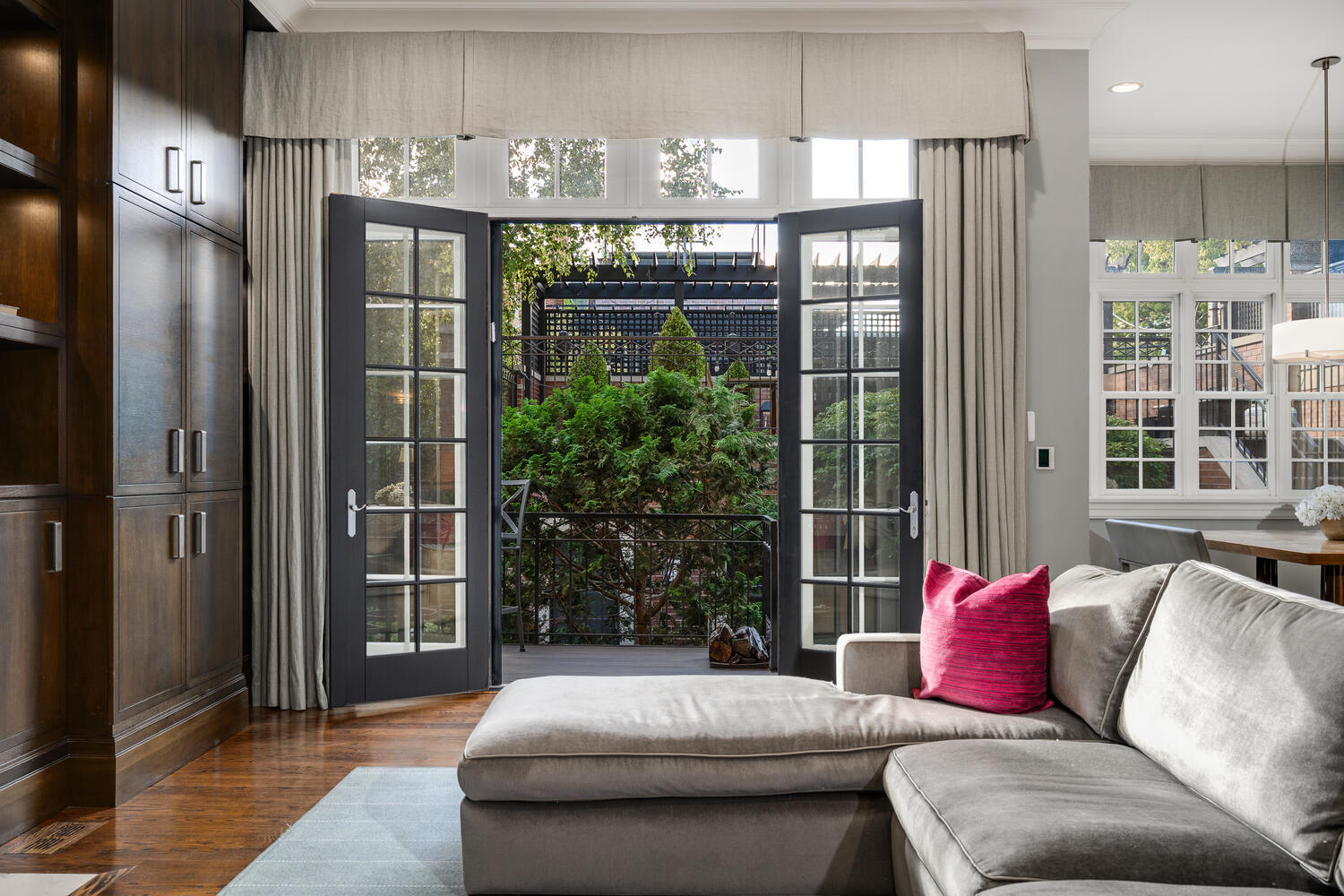Welcome to 3752 N. Janssen, an extraordinary residence set on a rare 62.5′ x 125′ lot in the heart of the Southport Corridor. The home itself sits on a 37.5′-wide lot, while the adjoining 25′ x 125′ landscaped side lot has been transformed into a private outdoor sanctuary. Hidden discreetly behind a privacy wall, this urban oasis features lush gardens, a tranquil water wall, a bluestone patio with built-in firepit, a sport court, and a garage roof deck-all enhanced with integrated surround sound for seamless indoor-outdoor living. A rare 3-car heated and attached garage offers effortless convenience and comfort, elevating everyday living in this remarkable city retreat. With 5 bedrooms, 4.3 baths, and 6200 SQFT of living space, this home is truly a forever home. A refined marble-floored entry opens into a dramatic two-story foyer with a curved staircase, custom millwork, coffered ceilings, and a Dennis & Leen light fixture instantly setting the tone for the elegance that defines this home. The living room exudes quiet sophistication with silk wall coverings, coffered ceilings, a gas fireplace with stone mantel, and a bay window overlooking tree-lined Janssen Street. The formal dining room, anchored by a striking David Iatesta chandelier, is enveloped in custom millwork and hand painted wallpaper with hand embroidered silk cherry blossoms, framed by antique mirrored shelving that elevates the ambiance for refined entertaining. A butler’s pantry connects the dining room to the kitchen, offering granite counters, a beverage cooler, ample storage, and a walk-in pantry. The width of this home is evident in the kitchen and family room and maintains the same elevated aesthetic. The kitchen showcases 2-inch granite counters, abundant 42″ cabinetry, professional-grade Wolf, Miele, and Sub-Zero appliances, dual sinks, and an oversized island with breakfast bar. A bright breakfast nook fills the space with natural light. The adjoining family room features custom built-ins, a limestone-surround fireplace and French doors opening to a charming terrace ideal for morning coffee or evening cocktails. Steps lead down to the landscaped backyard oasis and a roof deck above the three-car garage. A stylish powder room completes the main level. Ascending the curved staircase, four exceptional bedrooms await. The primary suite – an elegant retreat – offers vaulted ceilings, silk wall coverings, custom moldings, luxe silk draperies, hardwood floors and a custom walk-in closet with fine wood-built ins. The spa-caliber bath includes heated stone flooring, a double steam shower, jetted tub, Duravit double vanity, limestone counters, and a private commode. The second bedroom includes an ensuite bath, while the third and fourth share a Jack-and-Jill with walk-in closets. A laundry room with Whirlpool appliances, granite counters, and 42″ cabinetry completes this level. The third floor, currently configured as a spacious home office, features vaulted ceilings, skylights, hardwood floors, and a powder room. The fully finished lower level offers soaring ceilings and versatile living areas, including a recreation room large enough for gaming, media, and entertaining with a full wet bar, beverage center, ice maker and custom built-ins. A mirrored home gym with ballet bar, a guest suite with ensuite bath, a 250+ bottle temperature-controlled wine cellar, a craft room, powder room, mudroom, and abundant storage complete this level. For the car lovers, the attached 3-car garage offers room for your favorite cars or provides additional storage. Perfectly positioned in the Southport Corridor, this remarkable home is located within the highly regarded Blaine Elementary School district. Welcome home to 3752 N. Janssen, where elegance meets everyday comfort in one of Chicago’s most coveted neighborhoods.