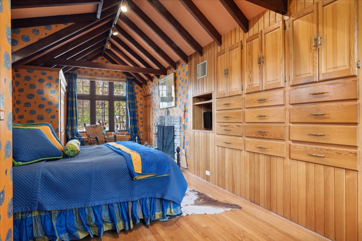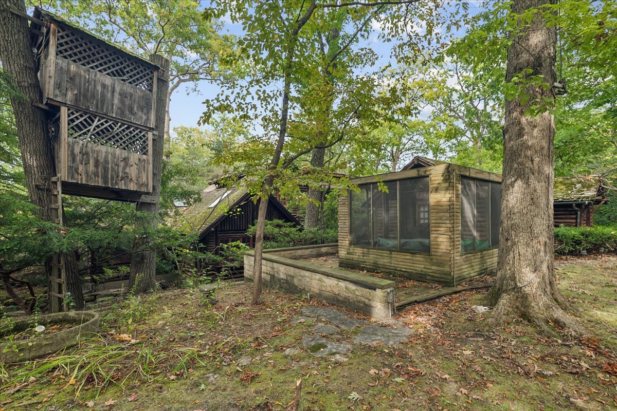 Unique one of a kind Log Cabin home on .63 of wooded acre with ravine. 5 bedrooms, 3 full baths, basement and 3 car heated garage. Beamed vaulted ceiling family room with fireplace, fireplace in primary suite as well. 2 bedrooms have separate wing with Jack and Jill bath. Property hosts potting shed, tree house, screened in music room to listen to Ravinia Festival and dog run. Located 1 Block from Ravinia Festival and North Shore Trail, located between Braeside and Ravinia Train stations, a couple blocks from Rosewood Beach and downtown Ravinia: PRIME LOCATION. So much potential to update this home and keep in original character or customize to your own desire. Currently working on topographical survey for potential expansion or starting from scratch.