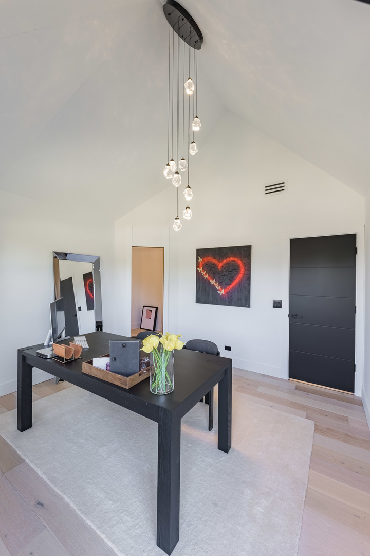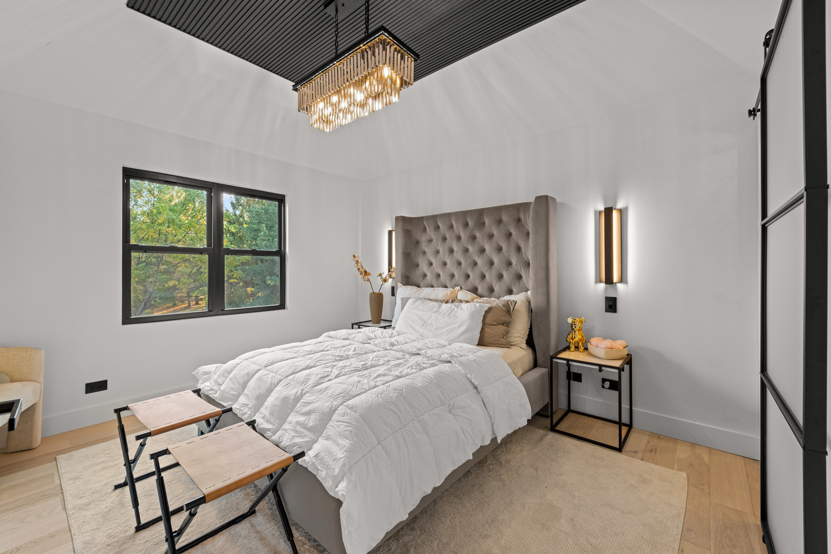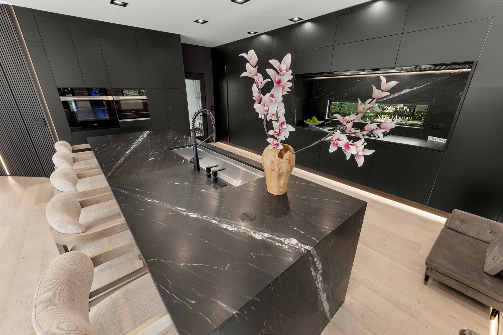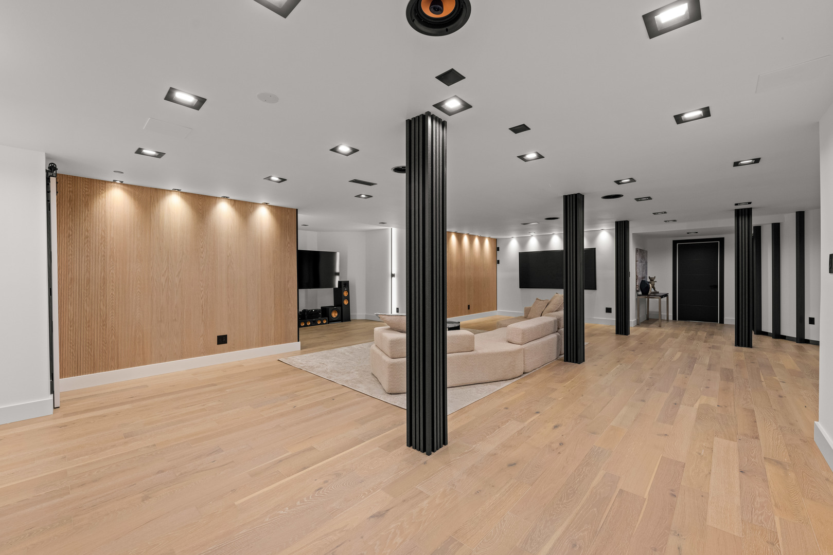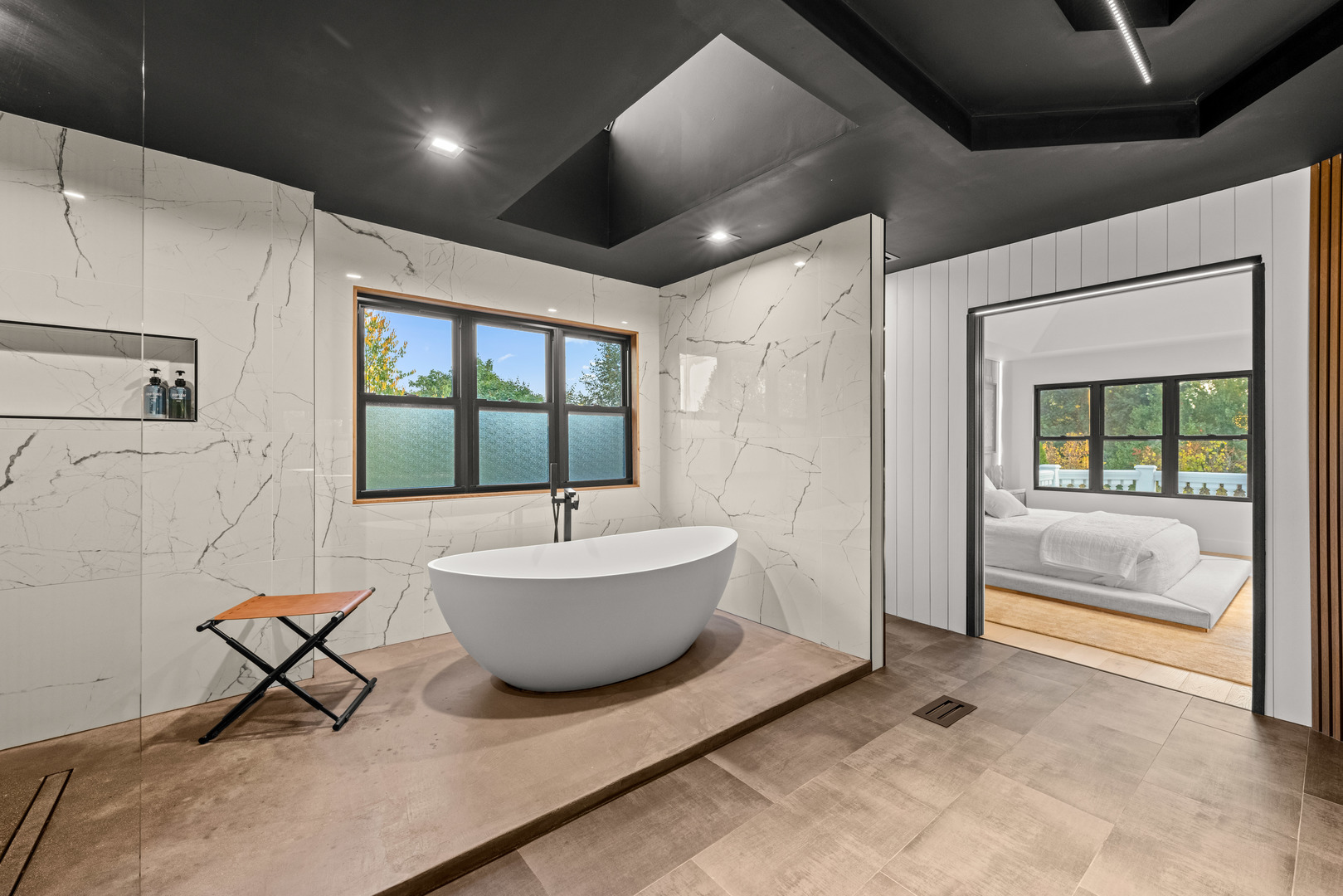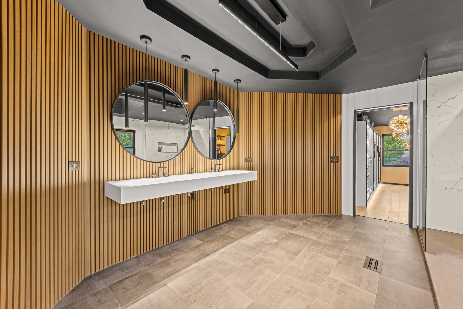 Experience the pinnacle of modern luxury living in this one of a kind custom built estate perfectly situated on a private 2.86-acre lot in the highly sought after Heritage Oaks. Every inch of this home has been thoughtfully designed with the perfect balance of sophistication, innovation, and function, offering an unmatched living experience for the most discerning buyer. As you enter through the grand custom iron and glass double doors by Pinky’s Iron Doors of California, favored by many celebrities, you are immediately greeted by a breathtaking 20 ft bamboo clad ceiling and a dramatic 40in chandelier that set the tone for what lies ahead. The open concept design flows seamlessly with white oak flooring throughout and all new black aluminum tinted windows with a wall of windows overlooking the private resort inspired backyard, filling the home with natural light and beauty. The main level showcases a striking 18 foot gas fireplace finished in custom black concrete, complemented by custom accent walls, modern LED lighting, and an integrated Klipsch in ceiling sound system. To the right of the foyer, a beautiful office or reading room features 9 foot ceilings, custom design elements, and serene views of the lush landscaping. To the left, an elegant formal dining room impresses with a smoked glass chandelier, built in cabinetry with soapstone countertops, and ample space for entertaining 12 to 14 guests.The chef’s kitchen is a true masterpiece, combining aesthetics and functionality at the highest level. The centerpiece 12 foot Brazilian matte soapstone book matched island with book matched waterfall sides and full height, matching soapstone backsplash surrounded by custom flush panel floor to ceiling cabinetry with LED lit interiors. Top of the line German appliances, a Liebherr Monolith refrigerator 2 Miele dishwashers with patented knock to open, Miele wall oven, Miele combo speed oven, Miele warming drawer, U-Line 2 drawer under counter refrigerator and a 59in commercial workstation sink make this a culinary dream. The appliances are custom paneled and integrated for a seamless modern look. The space also features a built in Samsung Frame TV and custom LED architectural lighting throughout, blending sophistication, and technology. The main level guest suite is both elegant and inviting, featuring a 92 inch all glass pivot door, 9 foot ceilings, a fireplace with black concrete surround, a custom wood accent wall with LED lighting, and expansive views of the backyard and pool. The adjoining full bath is designed with luxury materials, including a concrete shower base, in ceiling rain shower, solid stone vanity, European NewTechWood accent wall, and custom lighting. Upstairs, the primary suite is a private re treat designed for tranquility and indulgence. Vaulted ceilings, wood accent walls, and designer lighting create a serene atmosphere. The suite includes a spacious lounge area with a fireplace, a private balcony overlooking the pool and mature trees, and a spa inspired bathroom featuring a freestanding solid stone tub under a skylight, concrete shower base, floating 72 inch vanity, and NewTechWood cladding for a warm organic aesthetic. The expansive walk in closet includes custom built ins, LED lighting, and an in suite Samsung washer and dryer for added convenience. Three additional bedrooms, all with walk in closets and unique architectural details, provide ample space for family or guests. The fully finished lower level extends the luxury with bamboo flooring, custom cabinetry, LED lighting, a complete Klipsch home theater system, a dedicated gym room, and a beautifully designed bathroom with premium finishes. Step outside to your private resort. The outdoor space features a 38 foot heated lap pool with color-changing LED lighting, Trex gazebo with privacy wall, integrated lighting, and a 72 inch HEATSTRIP USA heater for year round enjoyment. Over 200 landscape lights illuminate the property’s 35 plus tons of hand