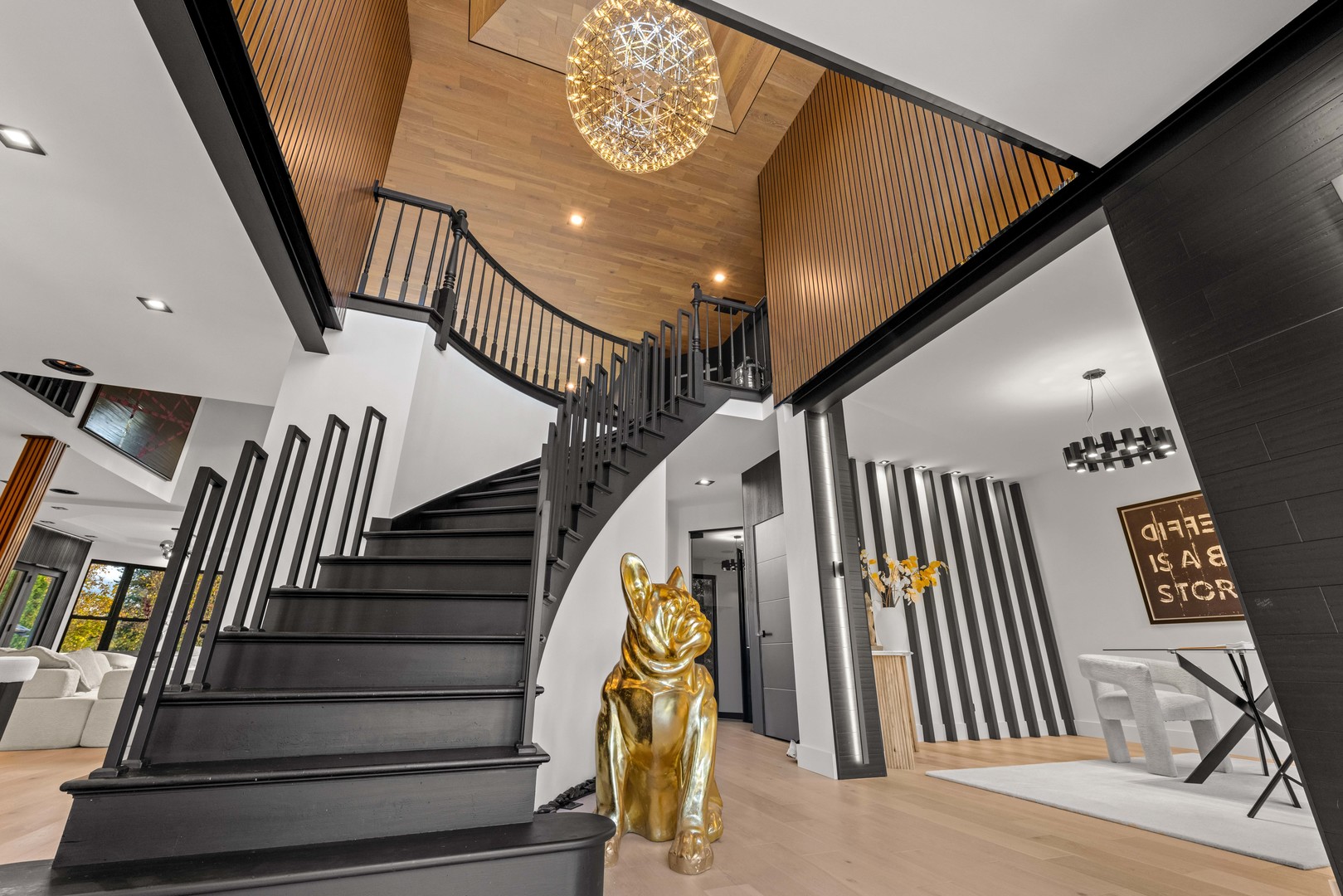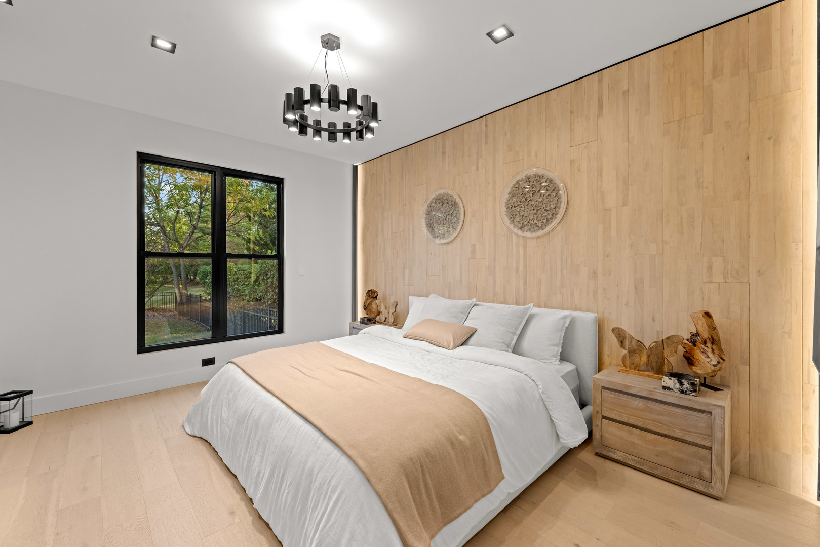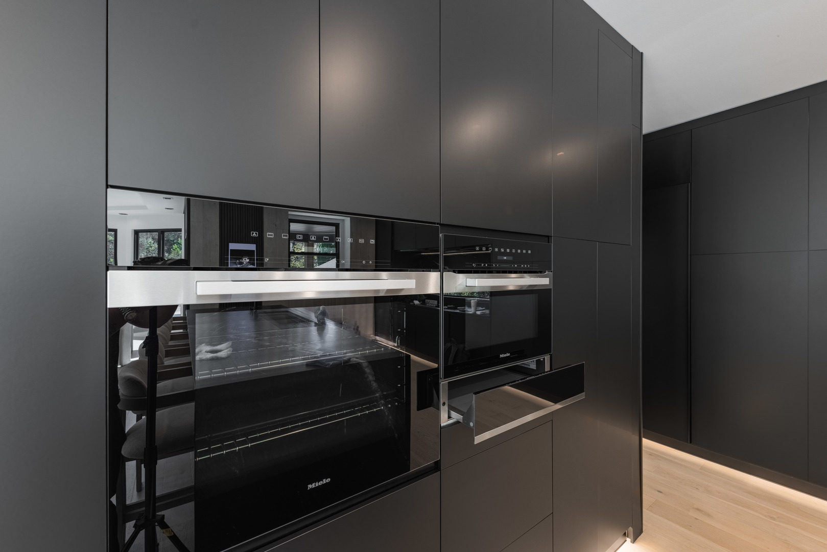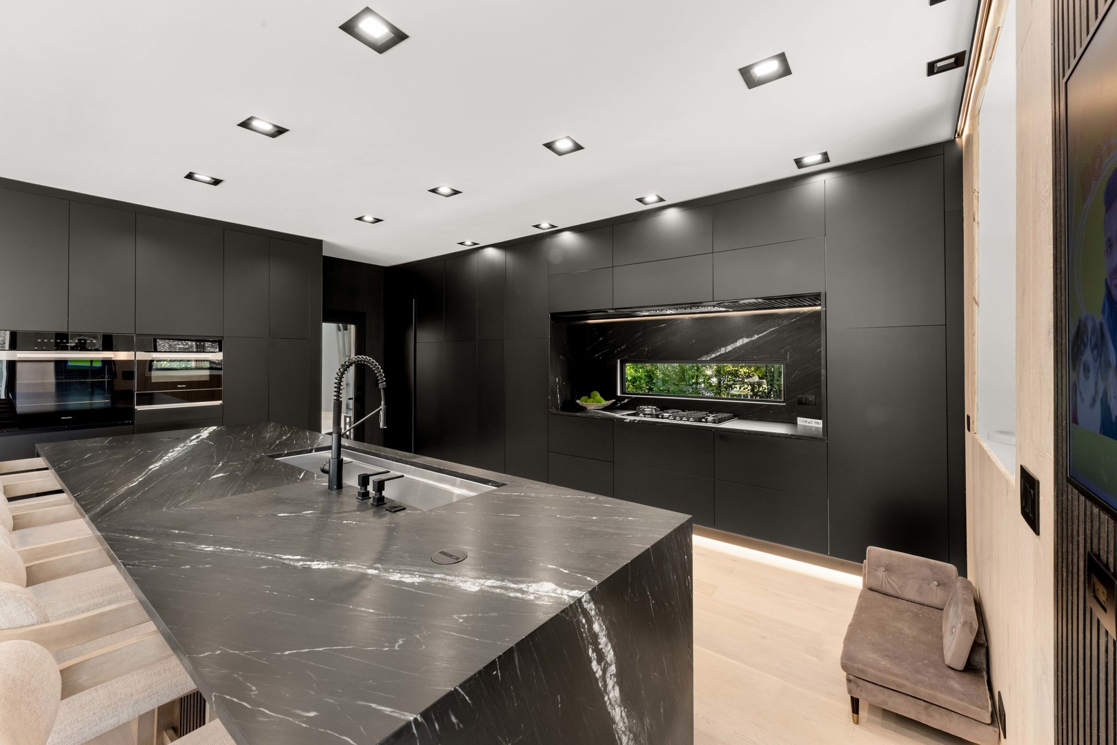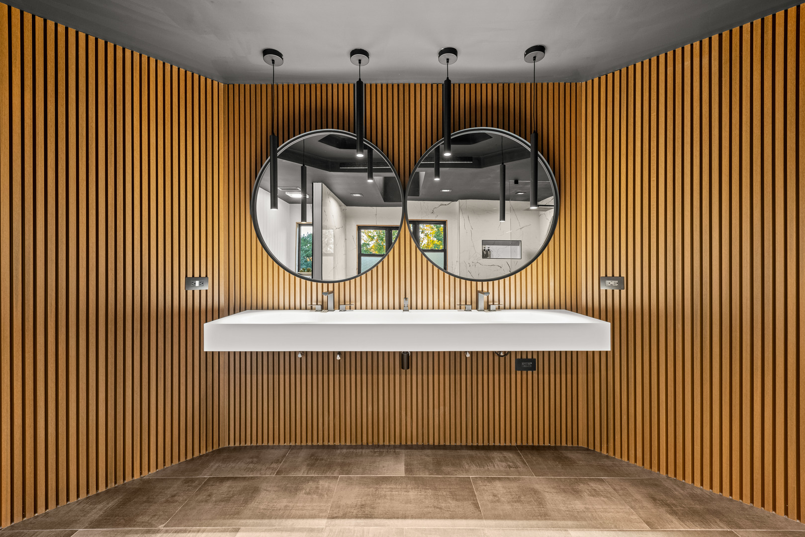 Experience the pinnacle of modern luxury living in this one of a kind custom built estate perfectly situated on a private 2.86-acre lot in the highly sought after Heritage Oaks. Every inch of this home has been thoughtfully designed with the perfect balance of sophistication, innovation, and function, offering an unmatched living experience for the most discerning buyer. As you enter through the grand custom iron and glass double doors by Pinky’s Iron Doors of California, favored by many celebrities, you are immediately greeted by a breathtaking 20 ft bamboo clad ceiling and a dramatic 40in chandelier that set the tone for what lies ahead. The open concept design flows seamlessly with white oak flooring throughout and all new black aluminum tinted windows with a wall of windows overlooking the private resort inspired backyard, filling the home with natural light and beauty. The main level showcases a striking 18 foot gas fireplace finished in custom black concrete, complemented by custom accent walls, modern LED lighting, and an integrated Klipsch in ceiling sound system. To the right of the foyer, a beautiful office or reading room features 9 foot ceilings, custom design elements, and serene views of the lush landscaping. To the left, an elegant formal dining room impresses with a smoked glass chandelier, built in cabinetry with soapstone countertops, and ample space for entertaining 12 to 14 guests.The chef’s kitchen is a true masterpiece, combining aesthetics and functionality at the highest level. The centerpiece 12 foot Brazilian matte soapstone book matched island with book matched waterfall sides and full height, matching soapstone backsplash surrounded by custom flush panel floor to ceiling cabinetry with LED lit interiors. Top of the line German appliances, a Liebherr Monolith refrigerator 2 Miele dishwashers with patented knock to open, Miele wall oven, Miele combo speed oven, Miele warming drawer, U-Line 2 drawer under counter refrigerator and a 59in commercial workstation sink make this a culinary dream. The appliances are custom paneled and integrated for a seamless modern look. The space also features a built in Samsung Frame TV and custom LED architectural lighting throughout, blending sophistication, and technology. The main level guest suite is both elegant and inviting, featuring a 92 inch all glass pivot door, 9 foot ceilings, a fireplace with black concrete surround, a custom wood accent wall with LED lighting, and expansive views of the backyard and pool. The adjoining full bath is designed with luxury materials, including a concrete shower base, in ceiling rain shower, solid stone vanity, European NewTechWood accent wall, and custom lighting. Upstairs, the primary suite is a private re treat designed for tranquility and indulgence. Vaulted ceilings, wood accent walls, and designer lighting create a serene atmosphere. The suite includes a spacious lounge area with a fireplace, a private balcony overlooking the pool and mature trees, and a spa inspired bathroom featuring a freestanding solid stone tub under a skylight, concrete shower base, floating 72 inch vanity, and NewTechWood cladding for a warm organic aesthetic. The expansive walk in closet includes custom built ins, LED lighting, and an in suite Samsung washer and dryer for added convenience. Three additional bedrooms, all with walk in closets and unique architectural details, provide ample space for family or guests. The fully finished lower level extends the luxury with bamboo flooring, custom cabinetry, LED lighting, a complete Klipsch home theater system, a dedicated gym room, and a beautifully designed bathroom with premium finishes. Step outside to your private resort. The outdoor space features a 38 foot heated lap pool with color-changing LED lighting, Trex gazebo with privacy wall, integrated lighting, and a 72 inch HEATSTRIP USA heater for year round enjoyment. Over 200 landscape lights illuminate the property’s 35 plus tons of hand