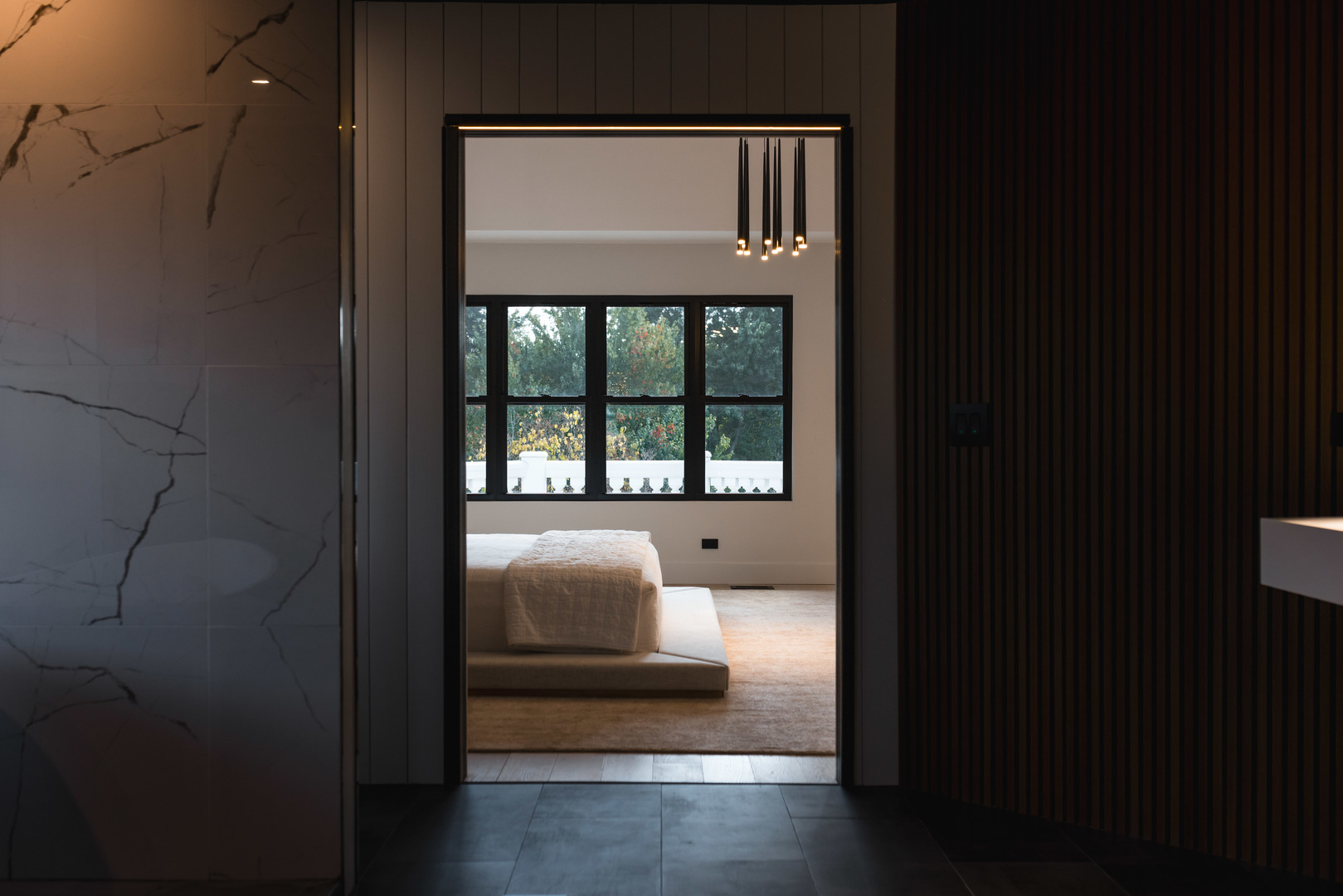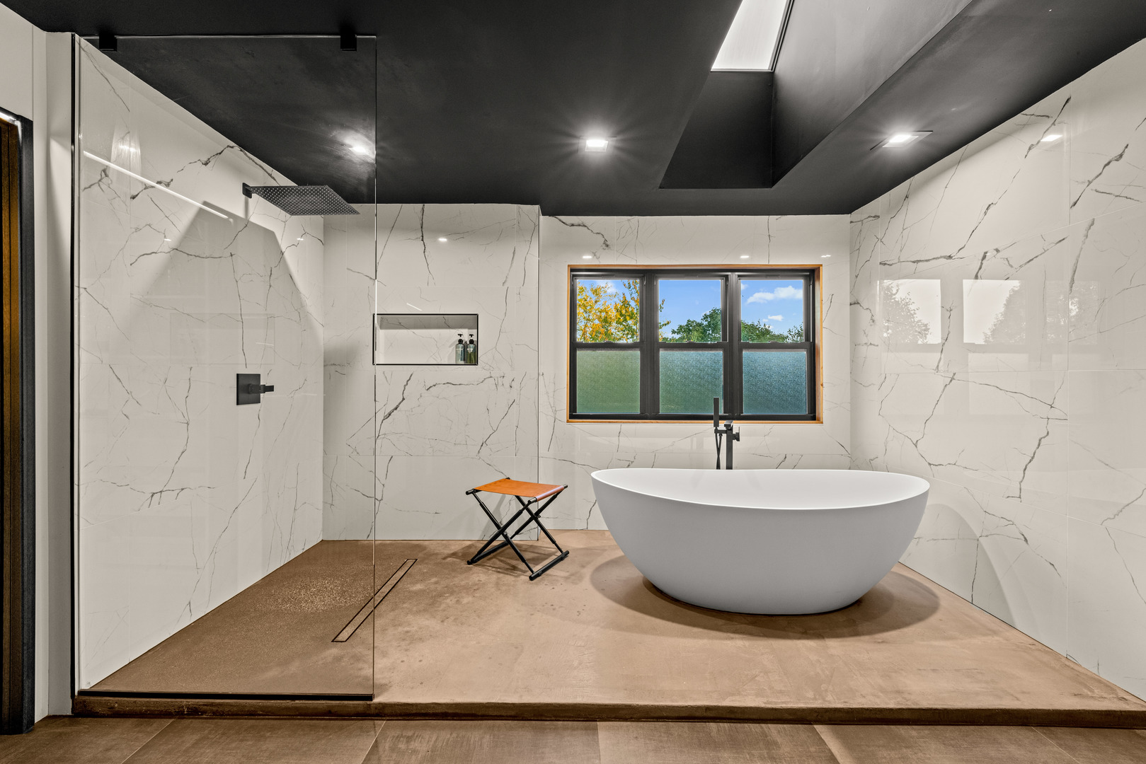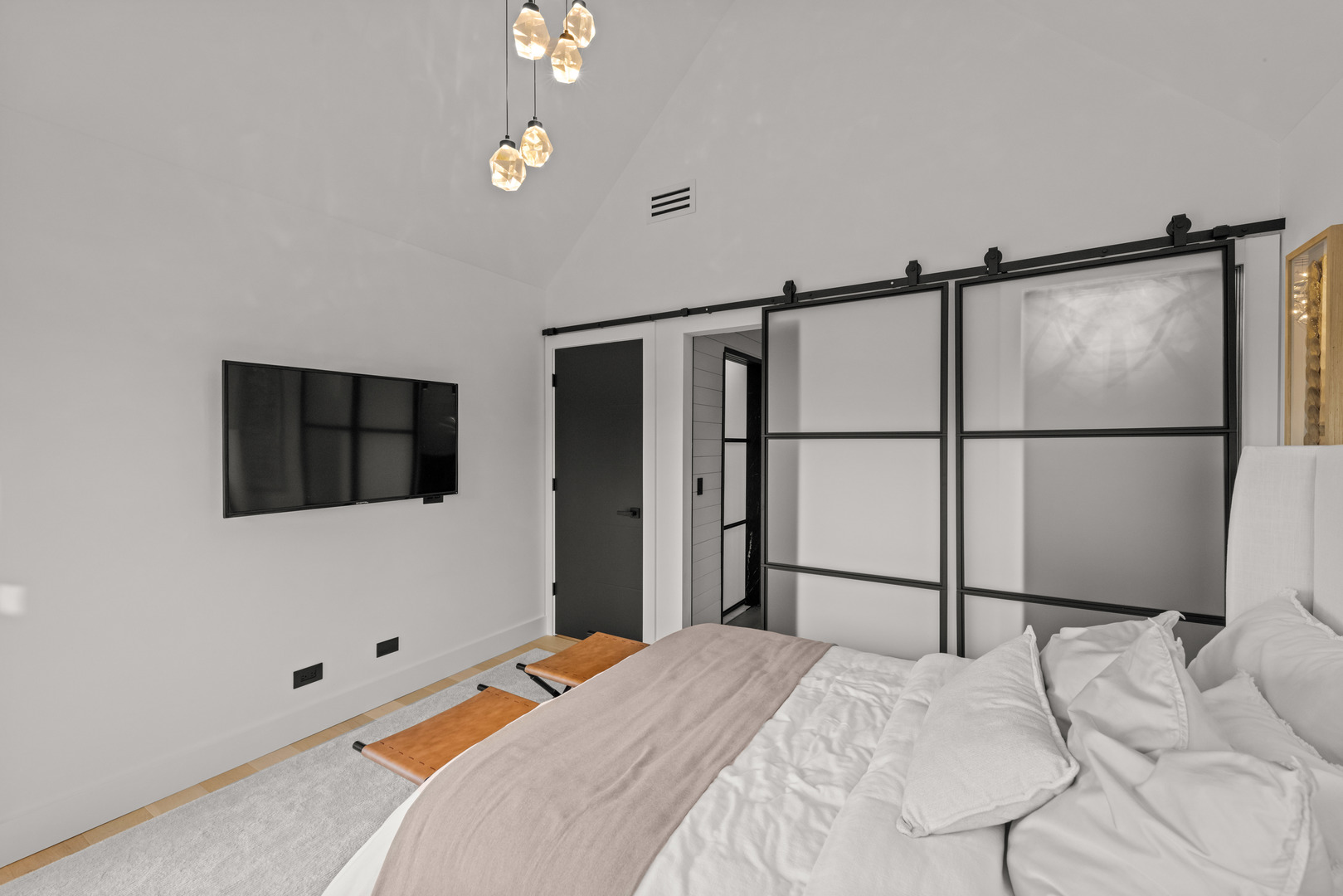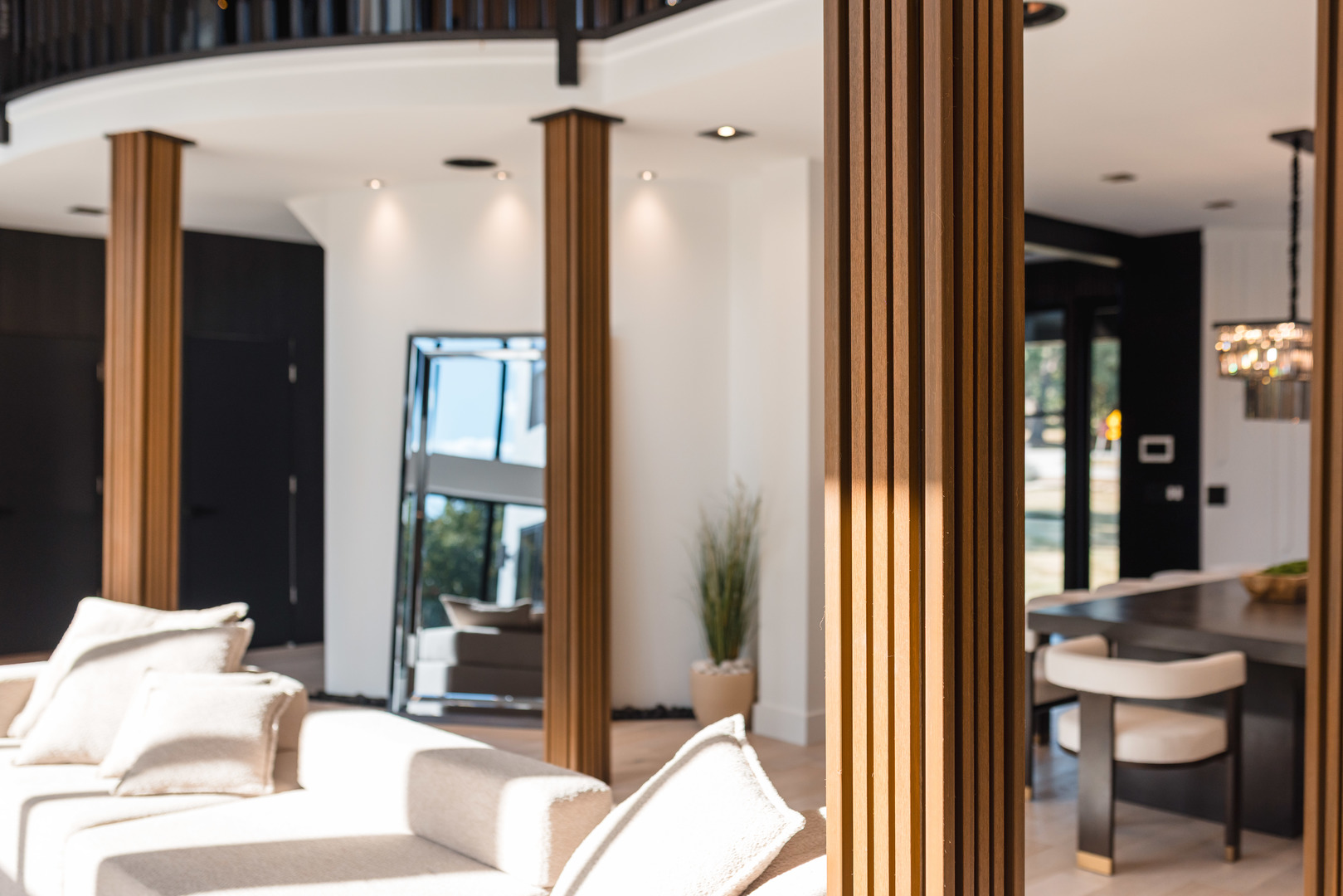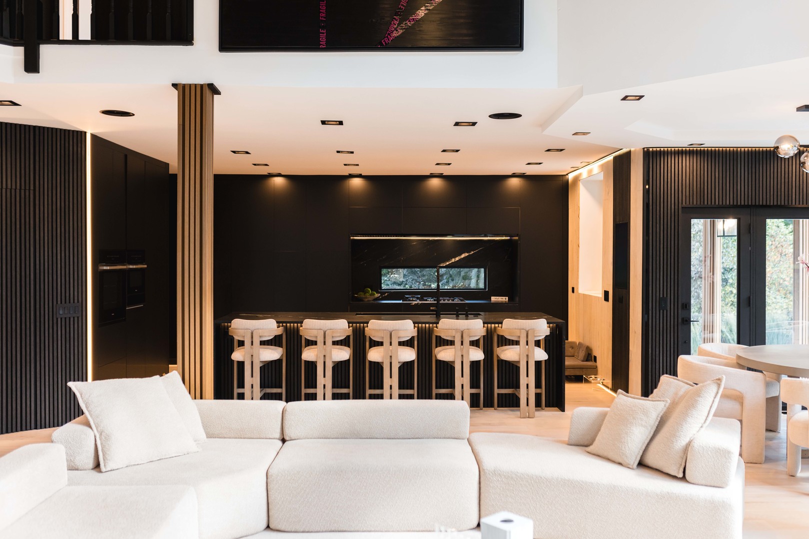 Experience the pinnacle of modern luxury living in this one of a kind custom built estate perfectly situated on a private 2.86-acre lot in the highly sought after Heritage Oaks. Every inch of this home has been thoughtfully designed with the perfect balance of sophistication, innovation, and function, offering an unmatched living experience for the most discerning buyer. As you enter through the grand custom iron and glass double doors by Pinky’s Iron Doors of California, favored by many celebrities, you are immediately greeted by a breathtaking 20 ft bamboo clad ceiling and a dramatic 40in chandelier that set the tone for what lies ahead. The open concept design flows seamlessly with white oak flooring throughout and all new black aluminum tinted windows with a wall of windows overlooking the private resort inspired backyard, filling the home with natural light and beauty. The main level showcases a striking 18 foot gas fireplace finished in custom black concrete, complemented by custom accent walls, modern LED lighting, and an integrated Klipsch in ceiling sound system. To the right of the foyer, a beautiful office or reading room features 9 foot ceilings, custom design elements, and serene views of the lush landscaping. To the left, an elegant formal dining room impresses with a smoked glass chandelier, built in cabinetry with soapstone countertops, and ample space for entertaining 12 to 14 guests.The chef’s kitchen is a true masterpiece, combining aesthetics and functionality at the highest level. The centerpiece 12 foot Brazilian matte soapstone book matched island with book matched waterfall sides and full height, matching soapstone backsplash surrounded by custom flush panel floor to ceiling cabinetry with LED lit interiors. Top of the line German appliances, a Liebherr Monolith refrigerator 2 Miele dishwashers with patented knock to open, Miele wall oven, Miele combo speed oven, Miele warming drawer, U-Line 2 drawer under counter refrigerator and a 59in commercial workstation sink make this a culinary dream. The appliances are custom paneled and integrated for a seamless modern look. The space also features a built in Samsung Frame TV and custom LED architectural lighting throughout, blending sophistication, and technology. The main level guest suite is both elegant and inviting, featuring a 92 inch all glass pivot door, 9 foot ceilings, a fireplace with black concrete surround, a custom wood accent wall with LED lighting, and expansive views of the backyard and pool. The adjoining full bath is designed with luxury materials, including a concrete shower base, in ceiling rain shower, solid stone vanity, European NewTechWood accent wall, and custom lighting. Upstairs, the primary suite is a private re treat designed for tranquility and indulgence. Vaulted ceilings, wood accent walls, and designer lighting create a serene atmosphere. The suite includes a spacious lounge area with a fireplace, a private balcony overlooking the pool and mature trees, and a spa inspired bathroom featuring a freestanding solid stone tub under a skylight, concrete shower base, floating 72 inch vanity, and NewTechWood cladding for a warm organic aesthetic. The expansive walk in closet includes custom built ins, LED lighting, and an in suite Samsung washer and dryer for added convenience. Three additional bedrooms, all with walk in closets and unique architectural details, provide ample space for family or guests. The fully finished lower level extends the luxury with bamboo flooring, custom cabinetry, LED lighting, a complete Klipsch home theater system, a dedicated gym room, and a beautifully designed bathroom with premium finishes. Step outside to your private resort. The outdoor space features a 38 foot heated lap pool with color-changing LED lighting, Trex gazebo with privacy wall, integrated lighting, and a 72 inch HEATSTRIP USA heater for year round enjoyment. Over 200 landscape lights illuminate the property’s 35 plus tons of hand
