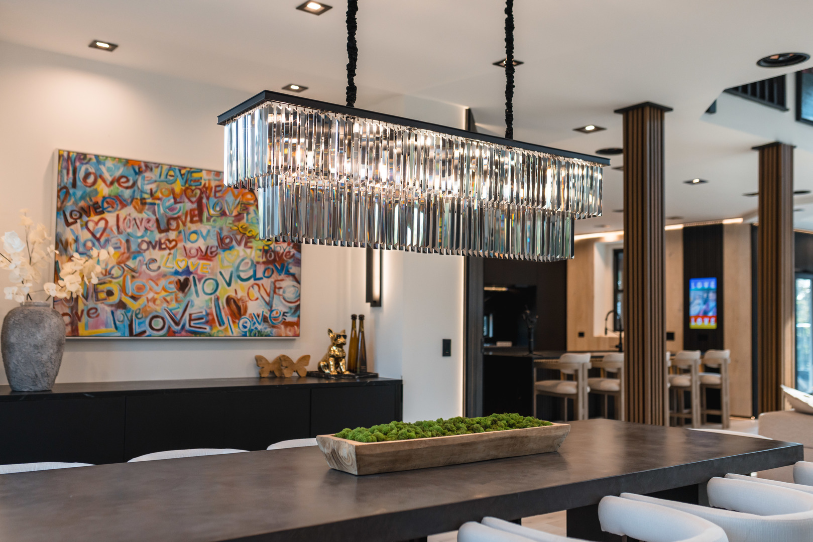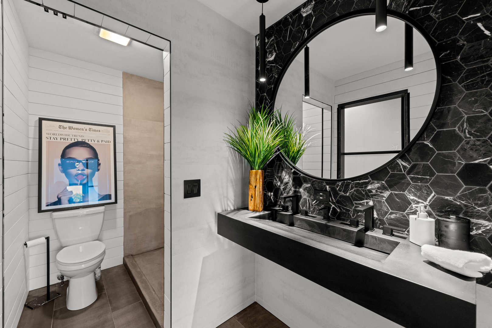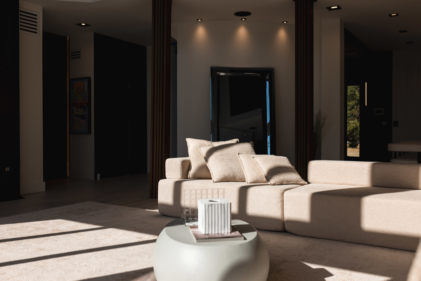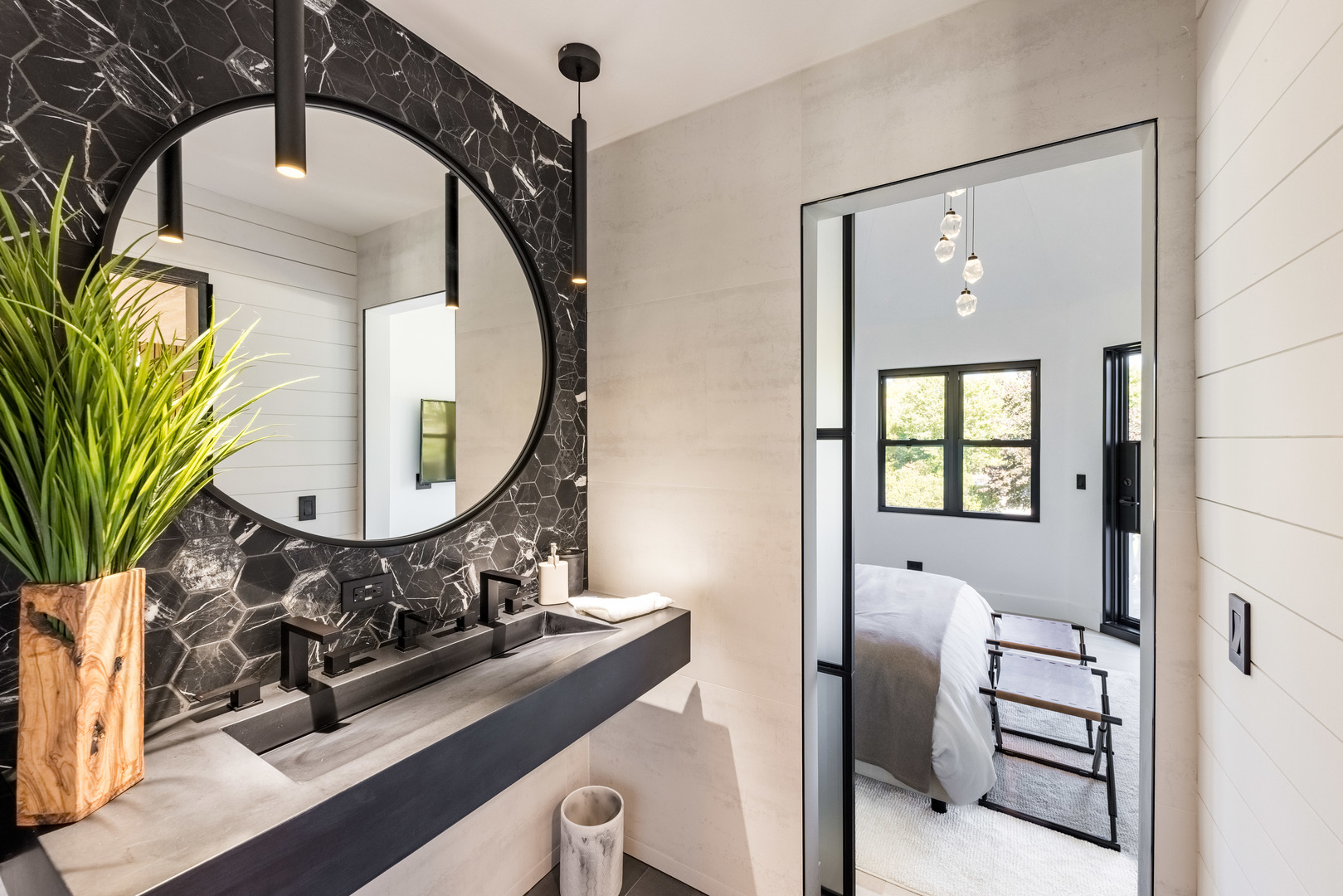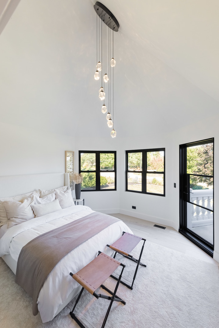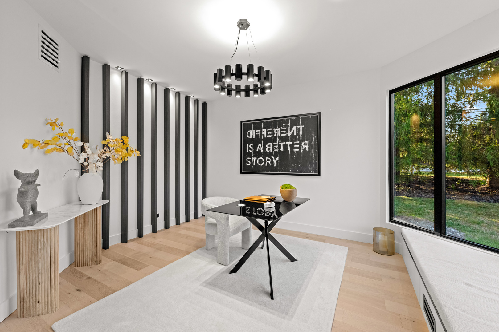 Experience the pinnacle of modern luxury living in this one of a kind custom built estate perfectly situated on a private 2.86-acre lot in the highly sought after Heritage Oaks. Every inch of this home has been thoughtfully designed with the perfect balance of sophistication, innovation, and function, offering an unmatched living experience for the most discerning buyer. As you enter through the grand custom iron and glass double doors by Pinky’s Iron Doors of California, favored by many celebrities, you are immediately greeted by a breathtaking 20 ft bamboo clad ceiling and a dramatic 40in chandelier that set the tone for what lies ahead. The open concept design flows seamlessly with white oak flooring throughout and all new black aluminum tinted windows with a wall of windows overlooking the private resort inspired backyard, filling the home with natural light and beauty. The main level showcases a striking 18 foot gas fireplace finished in custom black concrete, complemented by custom accent walls, modern LED lighting, and an integrated Klipsch in ceiling sound system. To the right of the foyer, a beautiful office or reading room features 9 foot ceilings, custom design elements, and serene views of the lush landscaping. To the left, an elegant formal dining room impresses with a smoked glass chandelier, built in cabinetry with soapstone countertops, and ample space for entertaining 12 to 14 guests.The chef’s kitchen is a true masterpiece, combining aesthetics and functionality at the highest level. The centerpiece 12 foot Brazilian matte soapstone book matched island with book matched waterfall sides and full height, matching soapstone backsplash surrounded by custom flush panel floor to ceiling cabinetry with LED lit interiors. Top of the line German appliances, a Liebherr Monolith refrigerator 2 Miele dishwashers with patented knock to open, Miele wall oven, Miele combo speed oven, Miele warming drawer, U-Line 2 drawer under counter refrigerator and a 59in commercial workstation sink make this a culinary dream. The appliances are custom paneled and integrated for a seamless modern look. The space also features a built in Samsung Frame TV and custom LED architectural lighting throughout, blending sophistication, and technology. The main level guest suite is both elegant and inviting, featuring a 92 inch all glass pivot door, 9 foot ceilings, a fireplace with black concrete surround, a custom wood accent wall with LED lighting, and expansive views of the backyard and pool. The adjoining full bath is designed with luxury materials, including a concrete shower base, in ceiling rain shower, solid stone vanity, European NewTechWood accent wall, and custom lighting. Upstairs, the primary suite is a private re treat designed for tranquility and indulgence. Vaulted ceilings, wood accent walls, and designer lighting create a serene atmosphere. The suite includes a spacious lounge area with a fireplace, a private balcony overlooking the pool and mature trees, and a spa inspired bathroom featuring a freestanding solid stone tub under a skylight, concrete shower base, floating 72 inch vanity, and NewTechWood cladding for a warm organic aesthetic. The expansive walk in closet includes custom built ins, LED lighting, and an in suite Samsung washer and dryer for added convenience. Three additional bedrooms, all with walk in closets and unique architectural details, provide ample space for family or guests. The fully finished lower level extends the luxury with bamboo flooring, custom cabinetry, LED lighting, a complete Klipsch home theater system, a dedicated gym room, and a beautifully designed bathroom with premium finishes. Step outside to your private resort. The outdoor space features a 38 foot heated lap pool with color-changing LED lighting, Trex gazebo with privacy wall, integrated lighting, and a 72 inch HEATSTRIP USA heater for year round enjoyment. Over 200 landscape lights illuminate the property’s 35 plus tons of hand