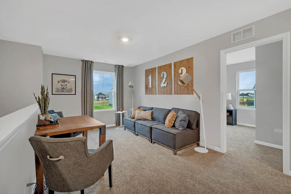 Find yourself at 3803 Monte Carlo Way in Joliet, Illinois a beautiful new home in our Cedar Creek Community. This home will be ready for a Winter delivery! Homesites include a fully sodded yard. The Sydney plan offers more than 1600 square feet of living space with 3 bedrooms, 2.5 bathrooms, a loft, and a full basement! Coming through your front door, you walk into the open concept great room and kitchen area, making it the perfect entertainment space. Your kitchen features designer cabinetry with quartz countertops and a large island and barstool overhang, & a pantry. Walking upstairs you will find a large primary bedroom with a deluxe bathroom complete with a dual quartz raised vanity and a walk-in closet. Enjoy the convenience of a large second floor walk in laundry room, additional secondary bedrooms, a full second bath, a loft, and a linen closet. All Chicago homes include our Americas Smart home technology featuring a smart video doorbell, smart Honeywell thermostat, Smart Door lock, Deako Smart Light switches, and more. Photos are of similar home and model home actual home built may vary.
