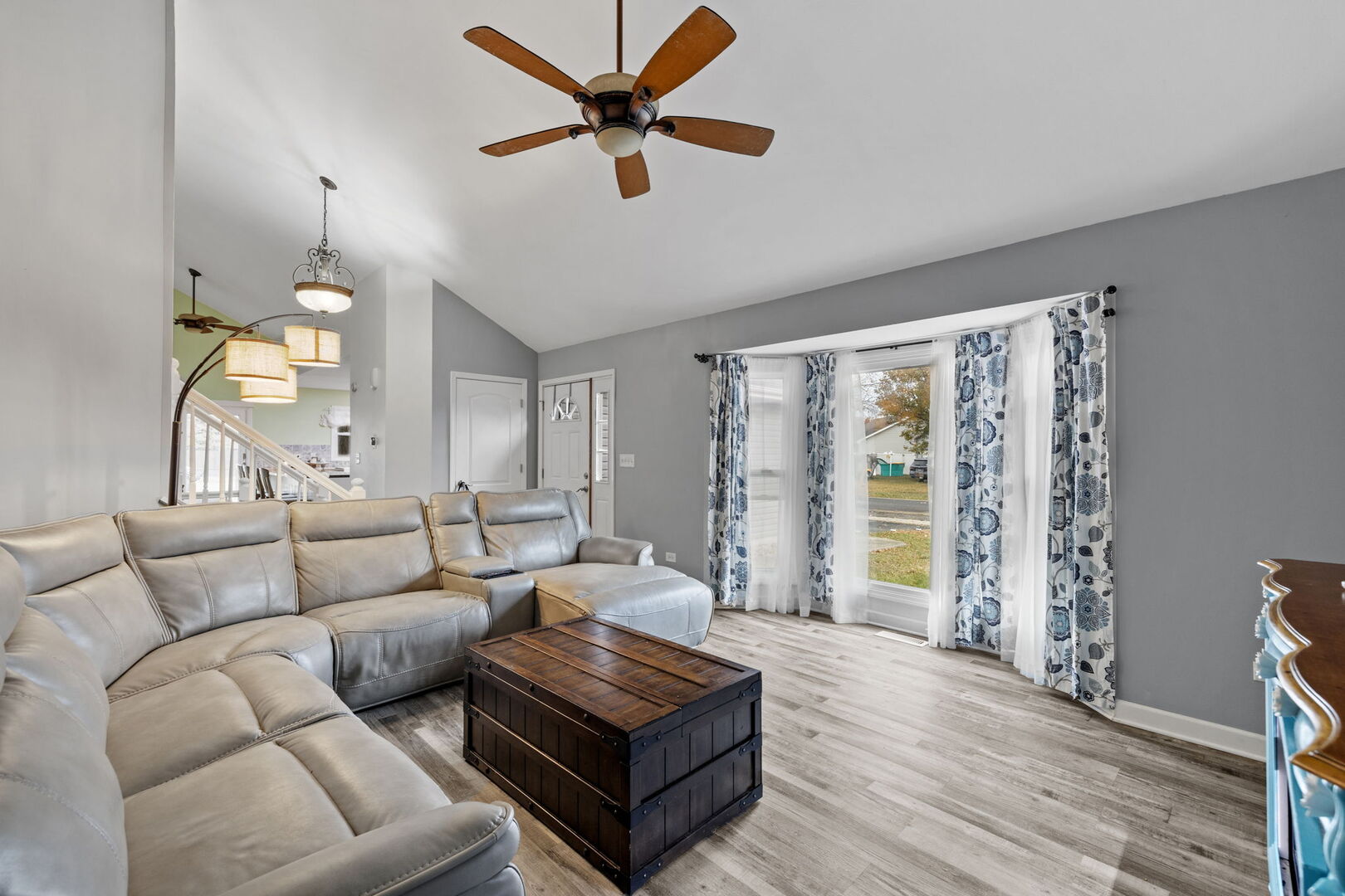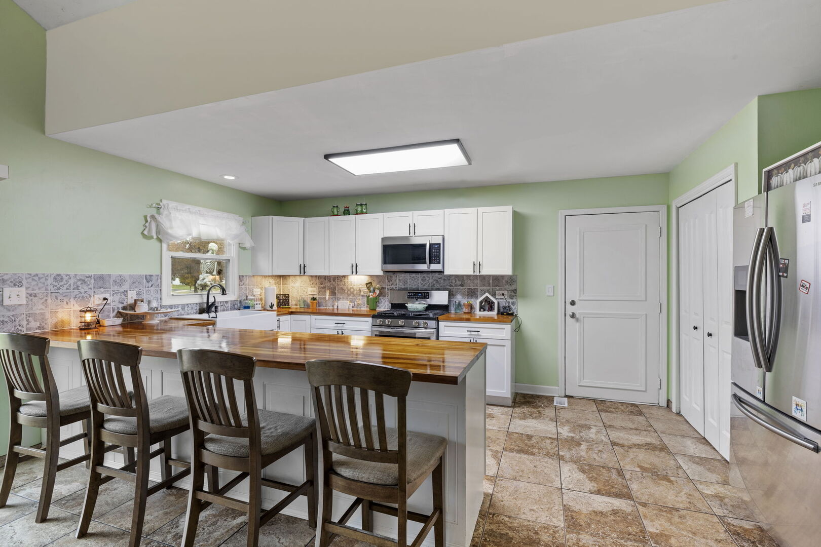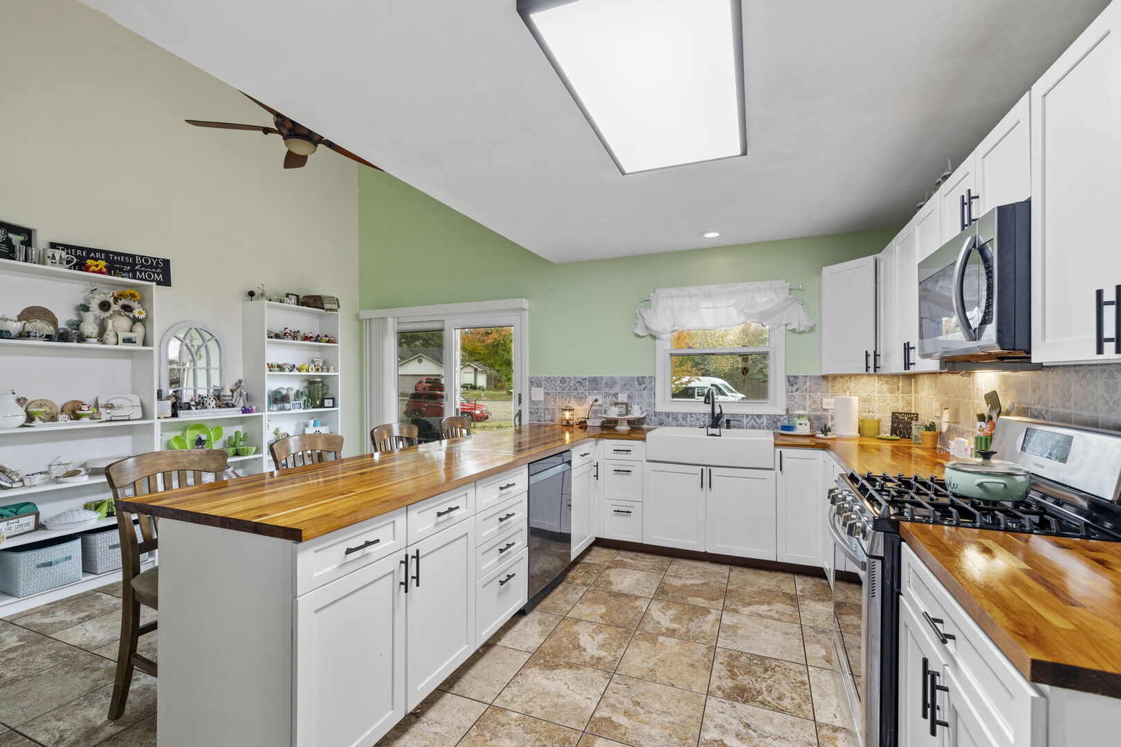 Step into this updated tri-level home located in Plainfield School District 202, feeding into Plainfield Central High School. This true 4-bedroom, 2-bath layout offers roughly 1,948 sq ft of finished living space. No HOA fees, no extra restrictions-just a solid home on a nice 0.24-acre lot in a quiet, established neighborhood. The main level delivers a bright, vaulted living room with a bay window that pulls in natural light. The remodeled kitchen stands out with butcher-block counters, white cabinetry, stainless steel appliances, a farmhouse sink, island seating, pantry space, and an extended prep area. A connected dining space with sliding doors leads straight to the backyard. Upstairs, you’ll find three well-sized bedrooms and a full bath with a double-sink vanity. The lower level adds flexibility with a fourth bedroom, a spacious family room, a second full bath, and a dedicated laundry room-ideal for guests, work-from-home, or extra living space. Key updates include a 2020 roof, new garage door and furnace in 2025, garage door opener in 2024, washer/dryer in 2024, and kitchen appliances and kitchen window in 2023. The butcher-block counters were refinished this year. An attached 2.5-car garage rounds out the package. Outside, the fenced yard offers room to spread out-space for pets, play, gardening, or future projects. Mature trees add shade and privacy, and the patio is easily accessible from the dining room. You’re close to parks, shopping, restaurants, the mall, and major routes, including I-55. A move-in-ready home with space, updates, a strong school district, no HOA, and a great lot-hard to beat.