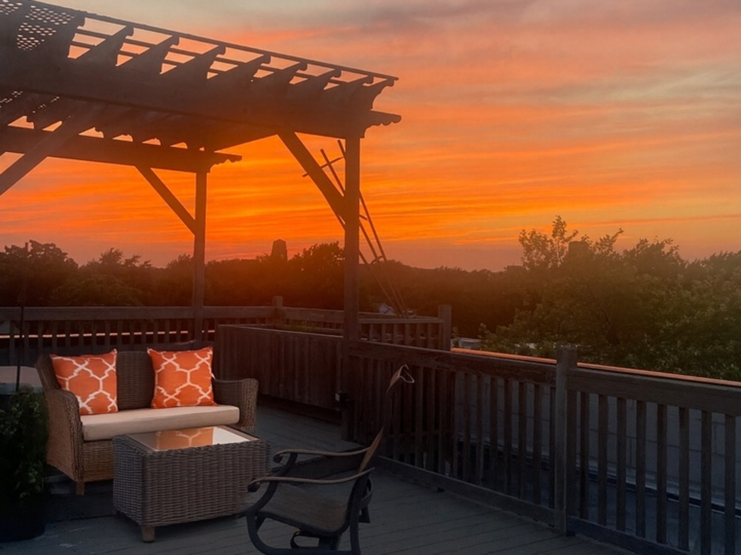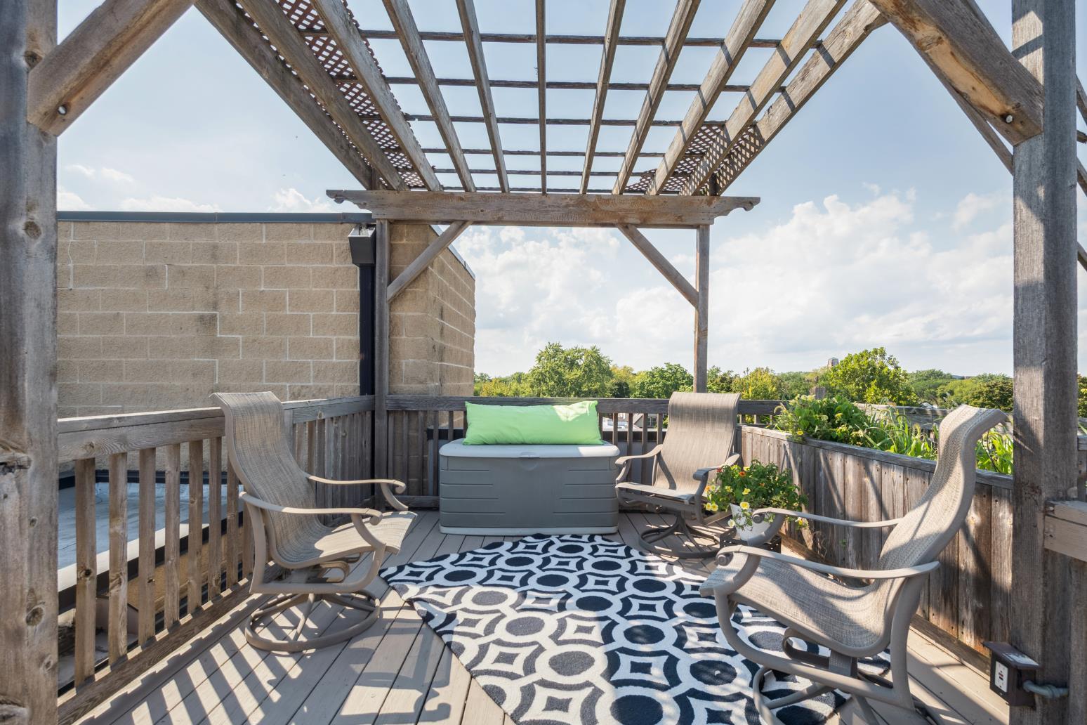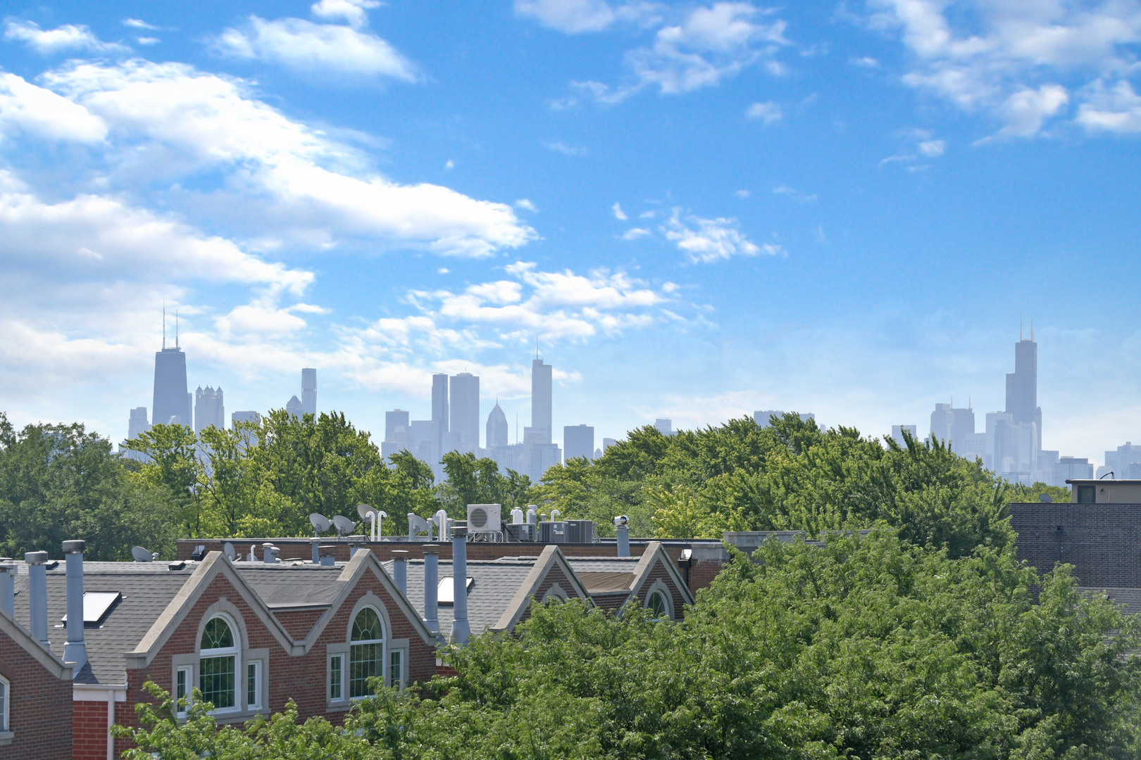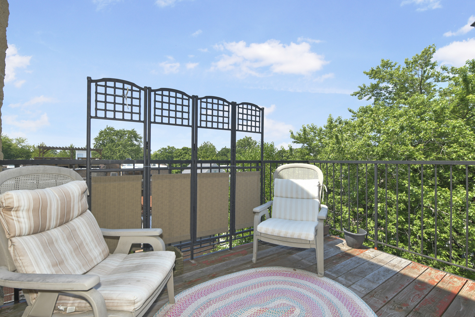 Gorgeous sunny penthouse in an elevator building in the Southport Corridor/Lakeview area. This home features over 1,000 sq. ft. of private rooftop space with wraparound skyline views. Floor plan includes 2 bedrooms + a large den and 2 marble bathrooms, including a steam shower and soaking tub. Direct elevator access from the attached private garage leads straight into the unit. The garage also offers floor-to-ceiling secured storage. Interior highlights include 11-ft ceilings, detailed millwork, hardwood floors, fireplace, and surround sound throughout. The chef’s kitchen offers high-end appliances and a walk-in pantry. Oversized windows bring in abundant natural light and capture skyline views. Outdoor spaces include a front balcony and a rear deck off the primary suite, plus the expansive private rooftop deck. Located two blocks from the Southport Corridor, close to restaurants, shopping, nightlife, the Brown Line, and Wrigley Field. In Blaine School boundaries and near Sacred Heart and British International School bus stops. Rare penthouse with exceptional outdoor space and direct-access garage-must see.
