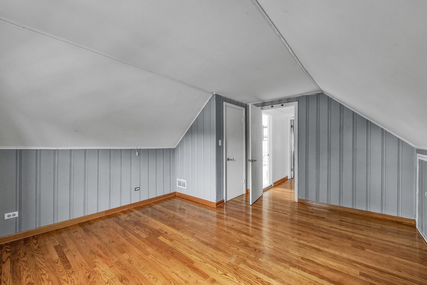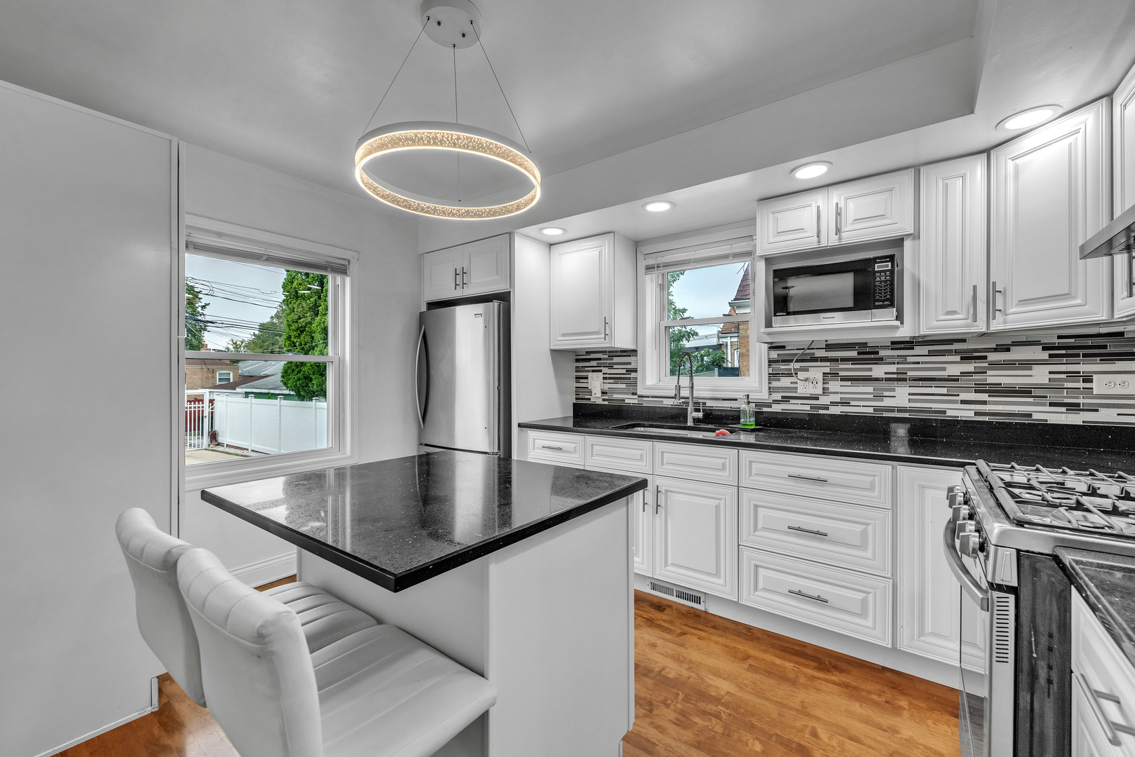 Welcome home to this charming, well-maintained brick Cape Cod that blends classic character with thoughtful updates! Step inside to find hardwood floors and abundance of natural light pouring through the bay window in the spacious living room. The remodeled kitchen features sleek white cabinetry, quartz countertops, modern backsplash, stainless steel appliances, and a stylish center island with seating. Upstairs, you’ll find 2 bedrooms with hardwood floors. The finished basement expands your living space with related living potential, offering a family room, additional bedroom, a third full bath, and a large storage room. Enjoy summer evenings in the covered patio overlooking the oversized fenced lot complete with a shed and additional parking next to the garage, making it perfect for gatherings, gardening, or extra vehicle storage. Prime location across the street from Hurley elementary school, parks, shopping & dinning. This move-in ready home is a perfect combination of comfort, space, and convenience.